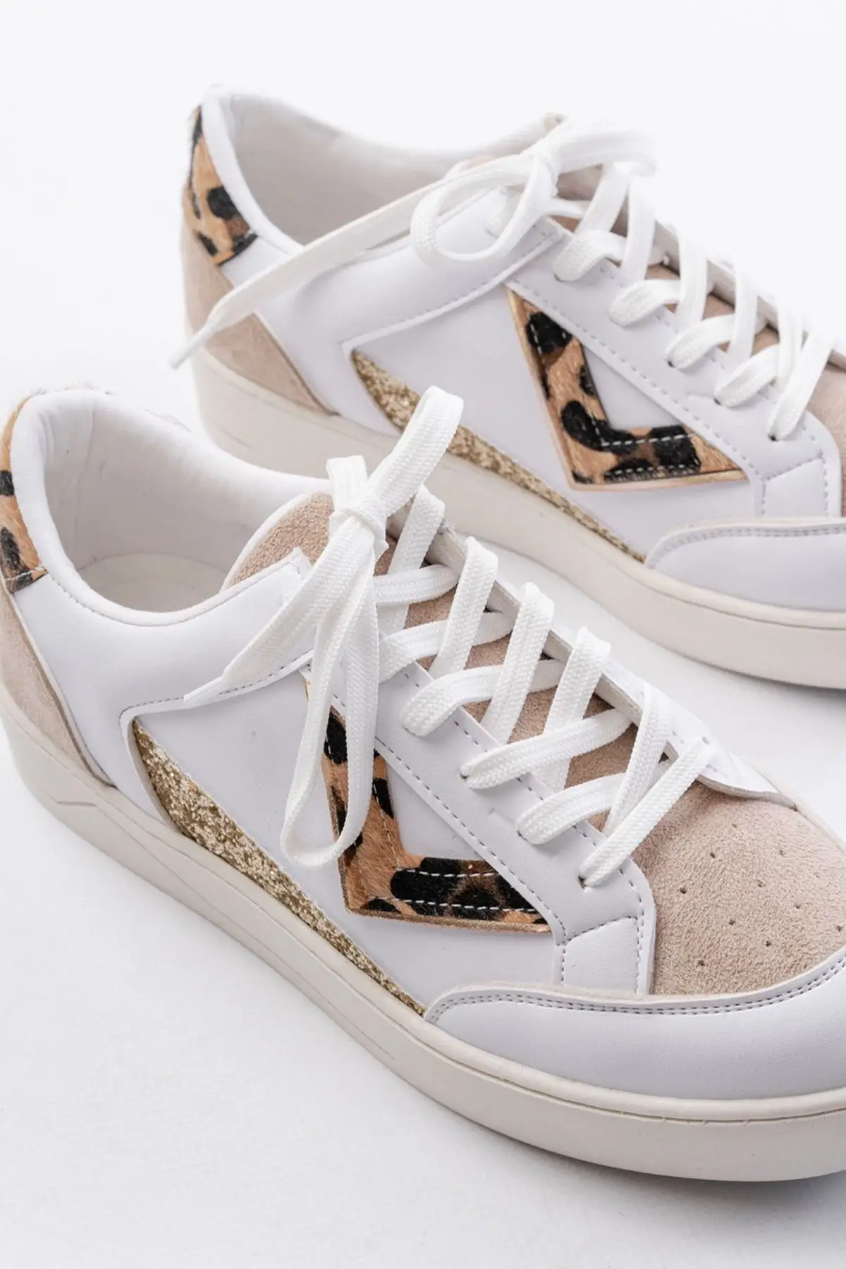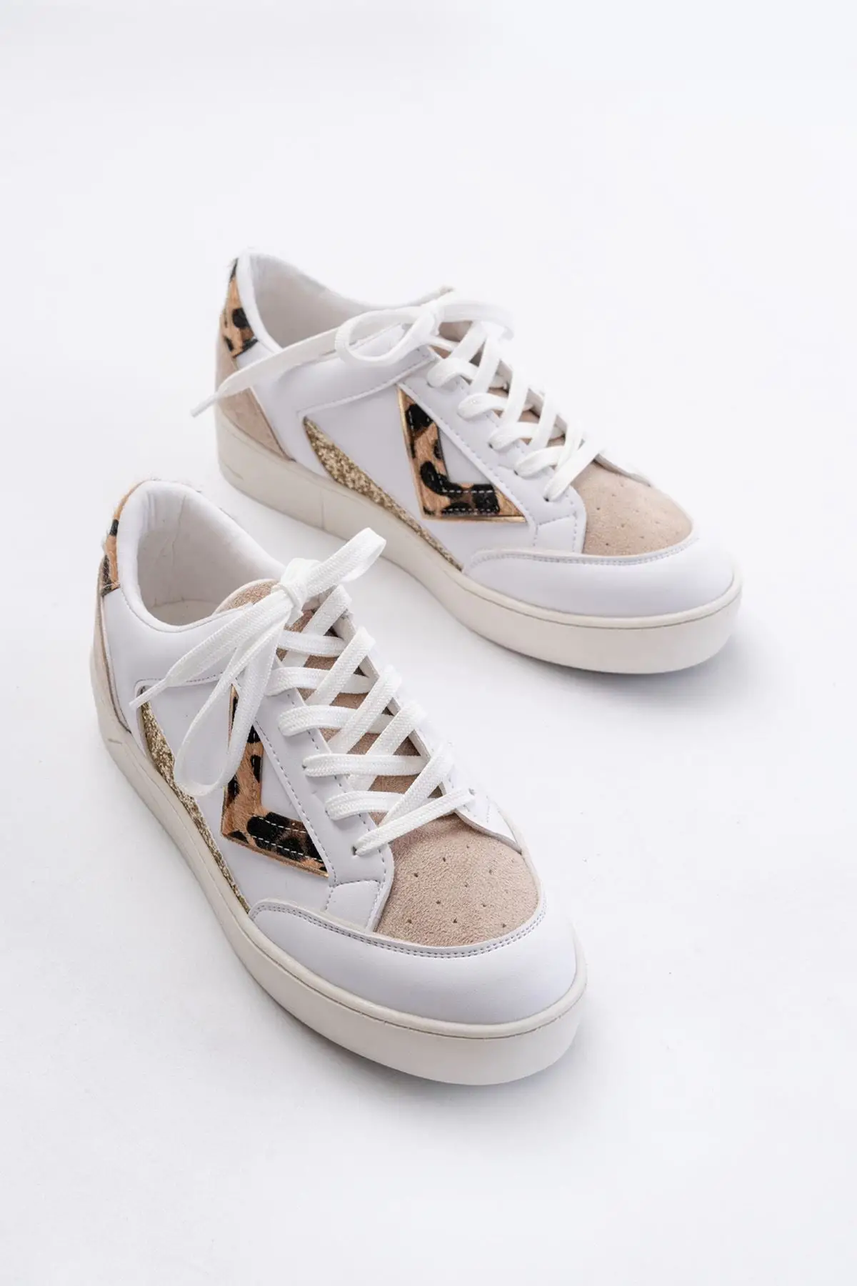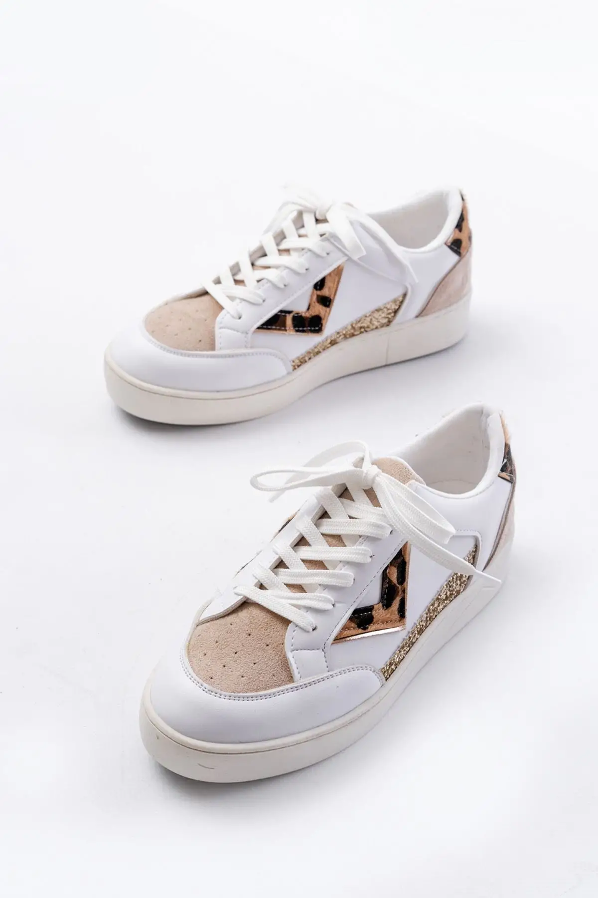 Sv-01 Beyaz Leopar Desenli Bağcıklı Kadın Spor Ayakkabı
