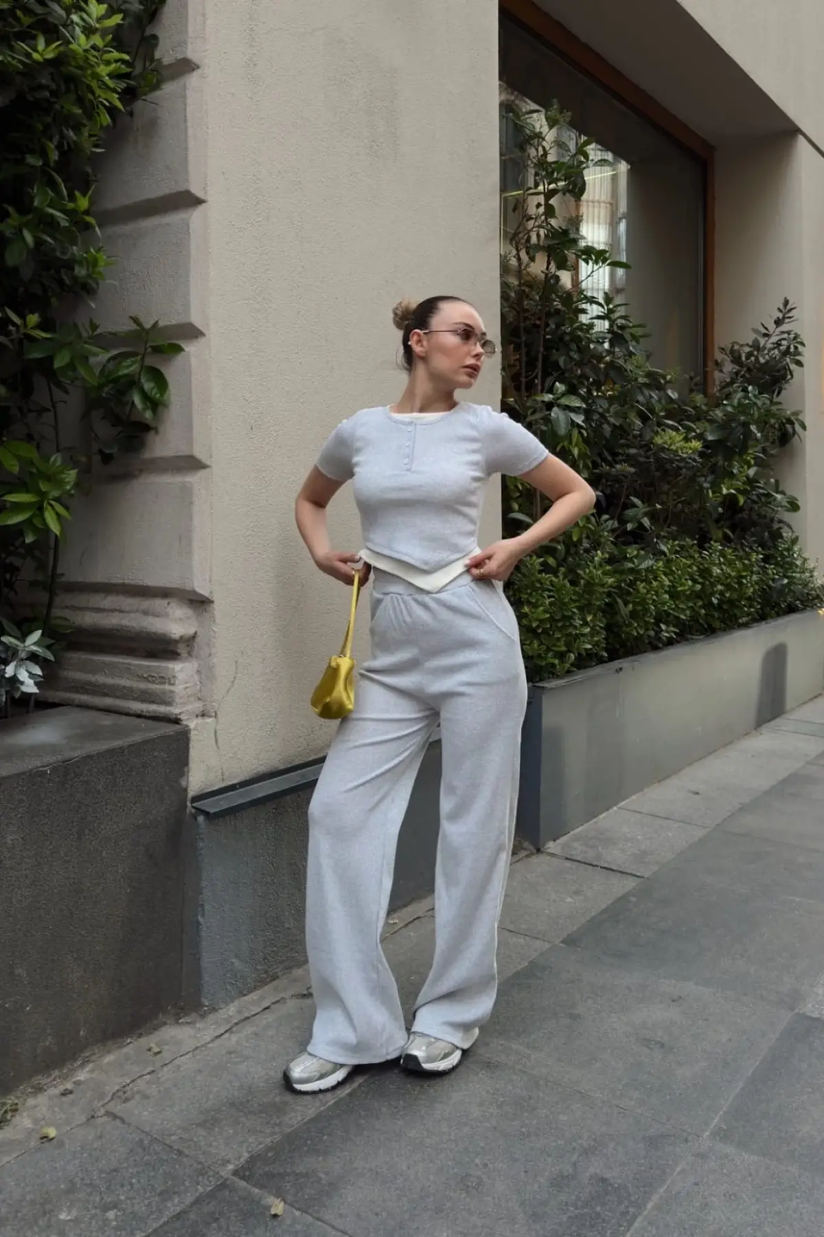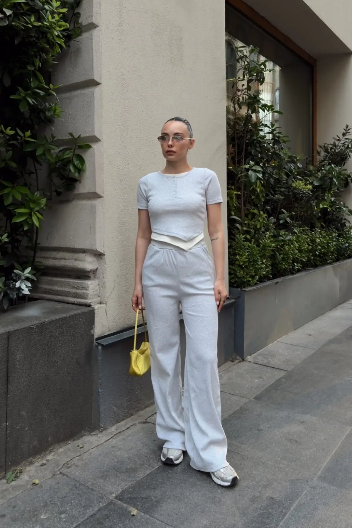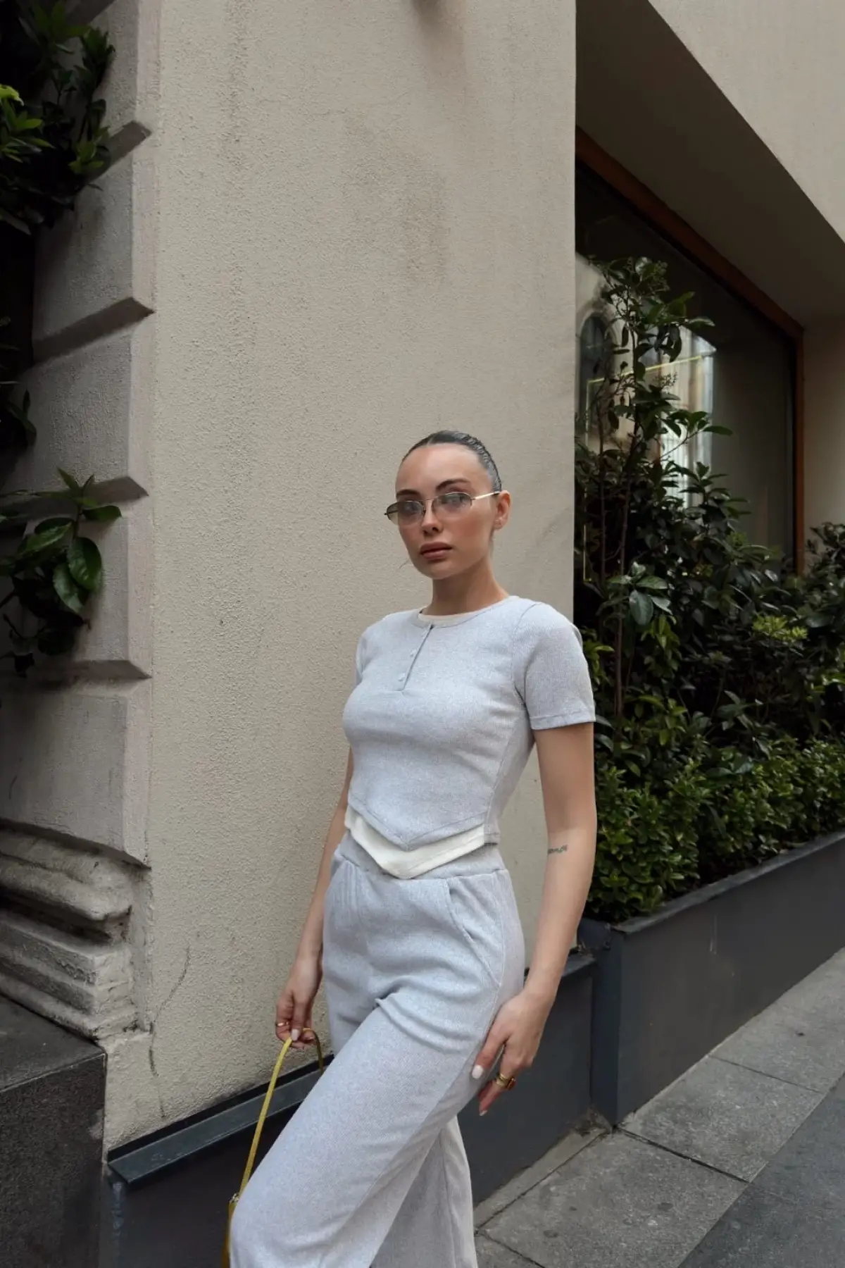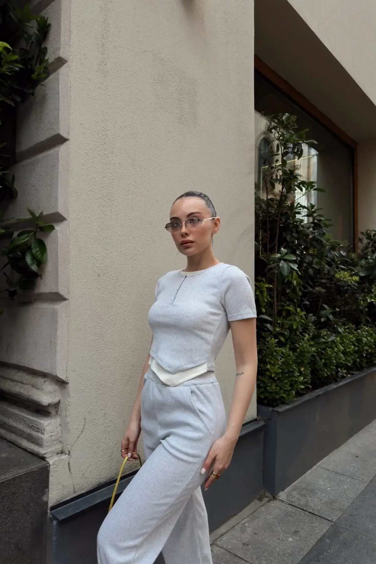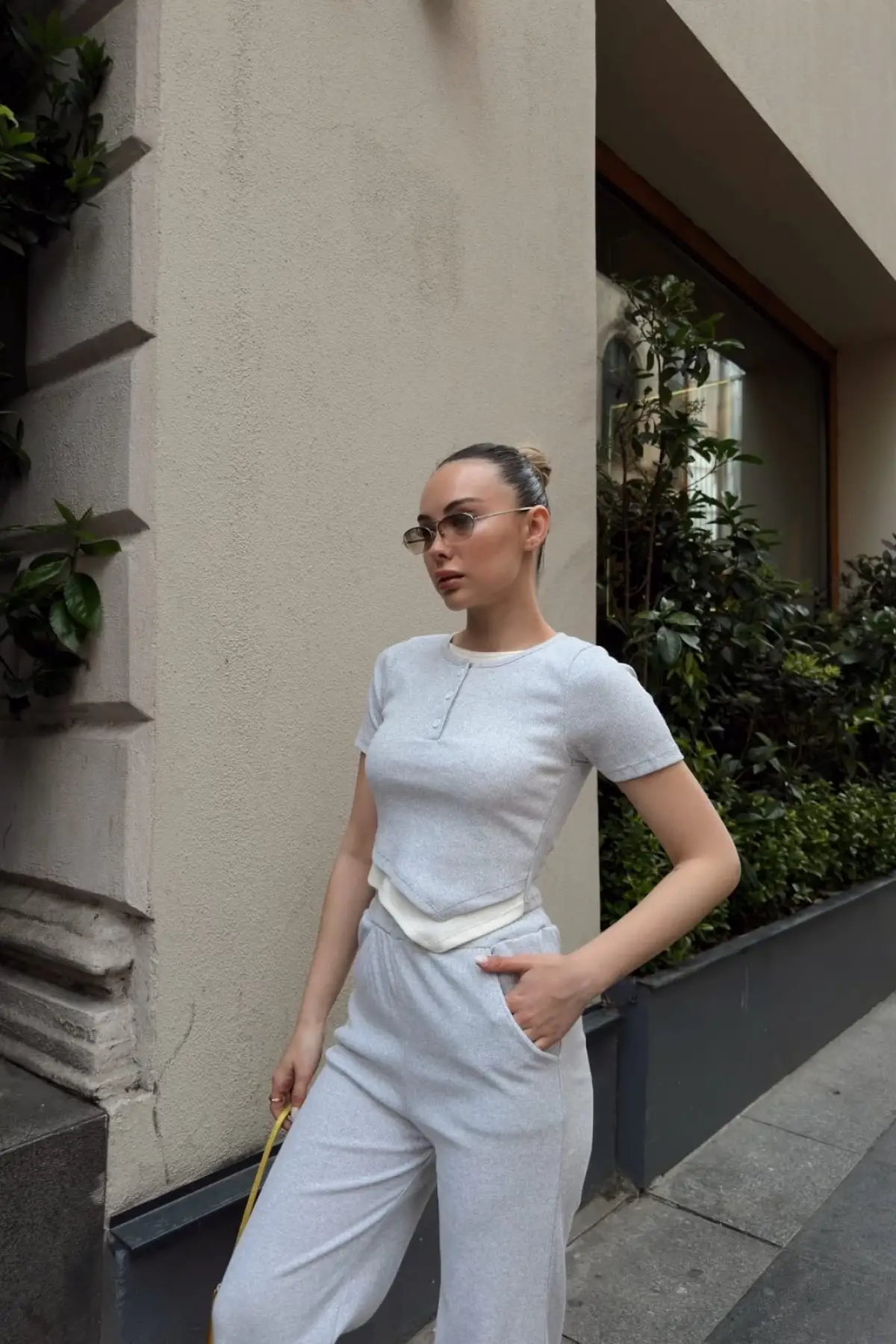 Düğme Yakalı Gri Alt Üst Takım S3943