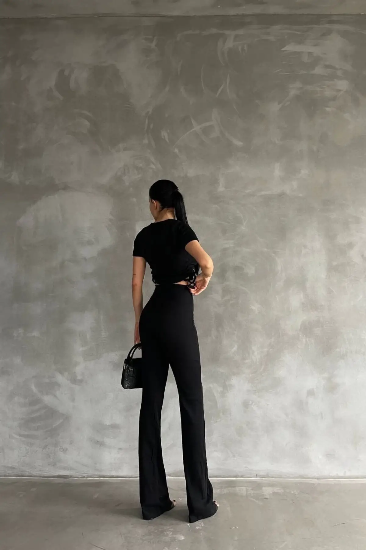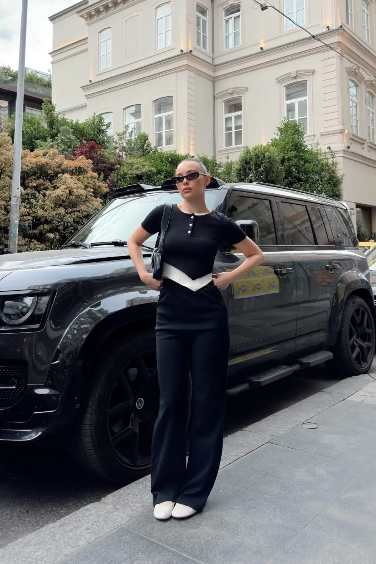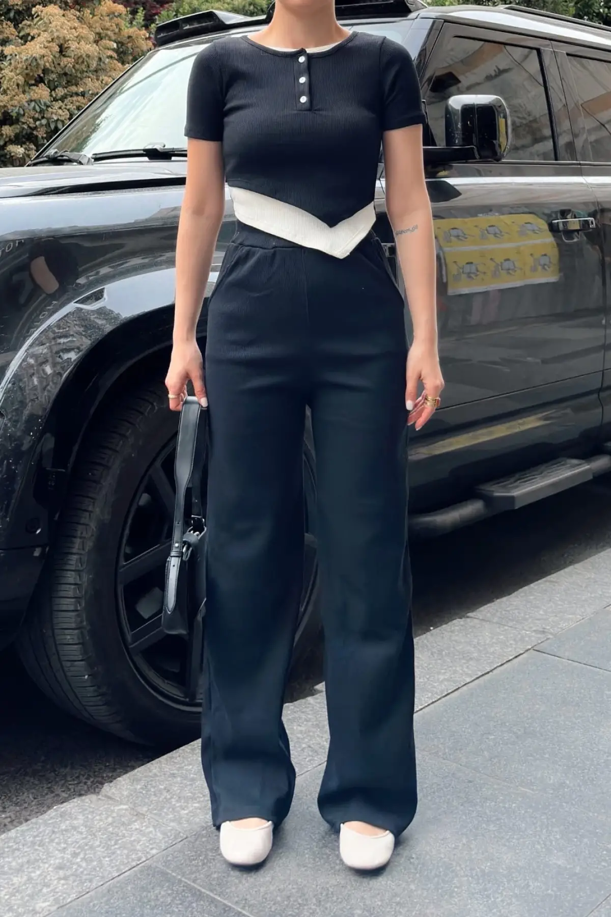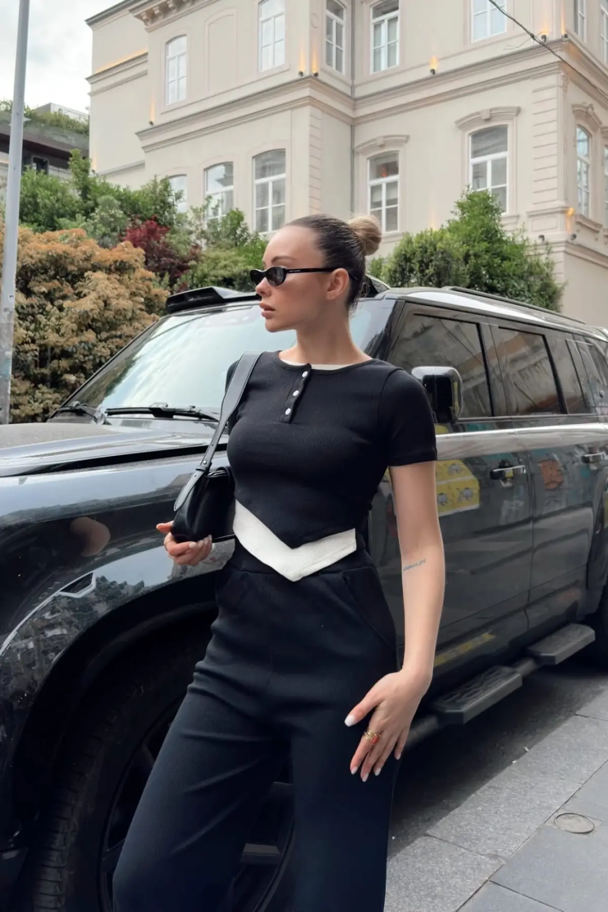 Düğme Yakalı Siyah Alt Üst Takım S3943