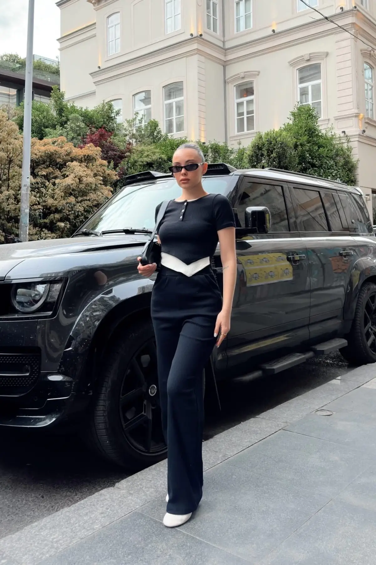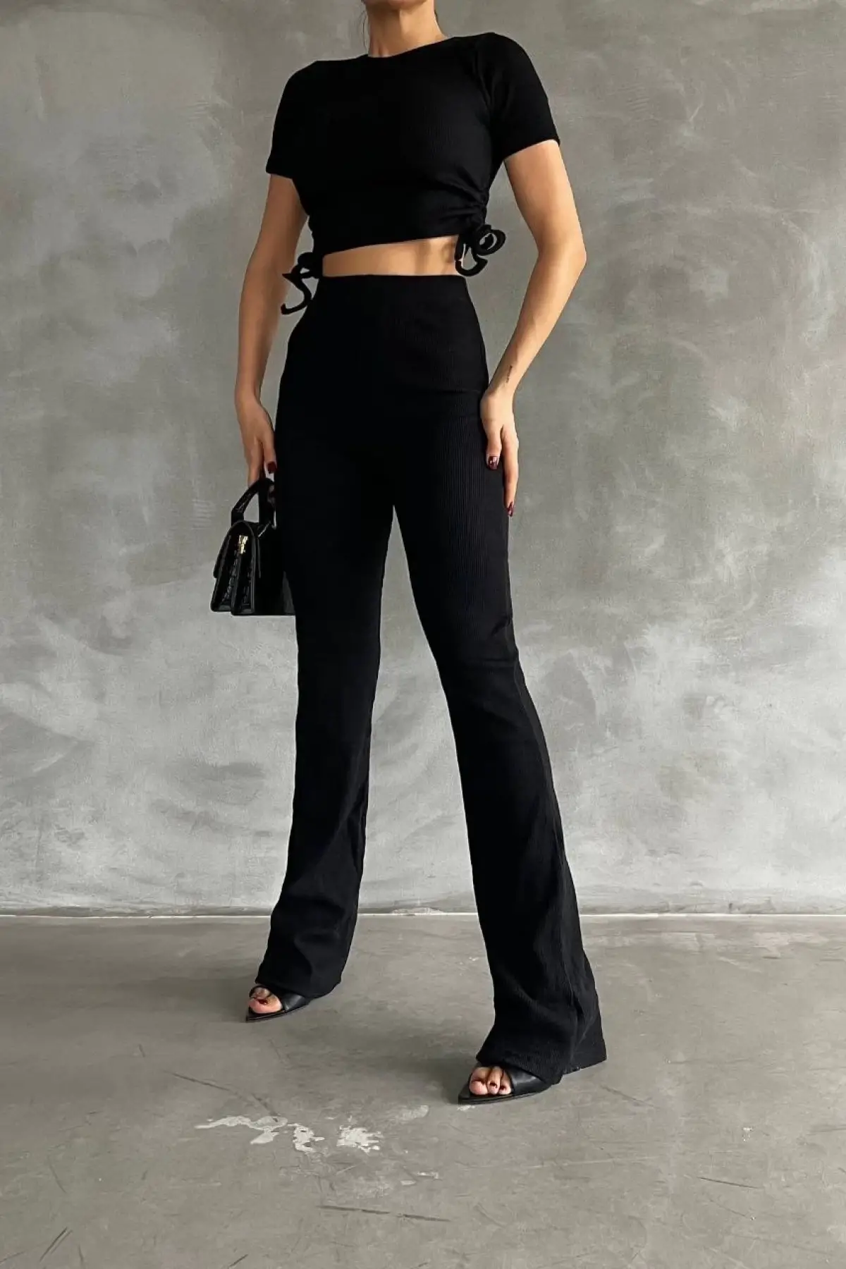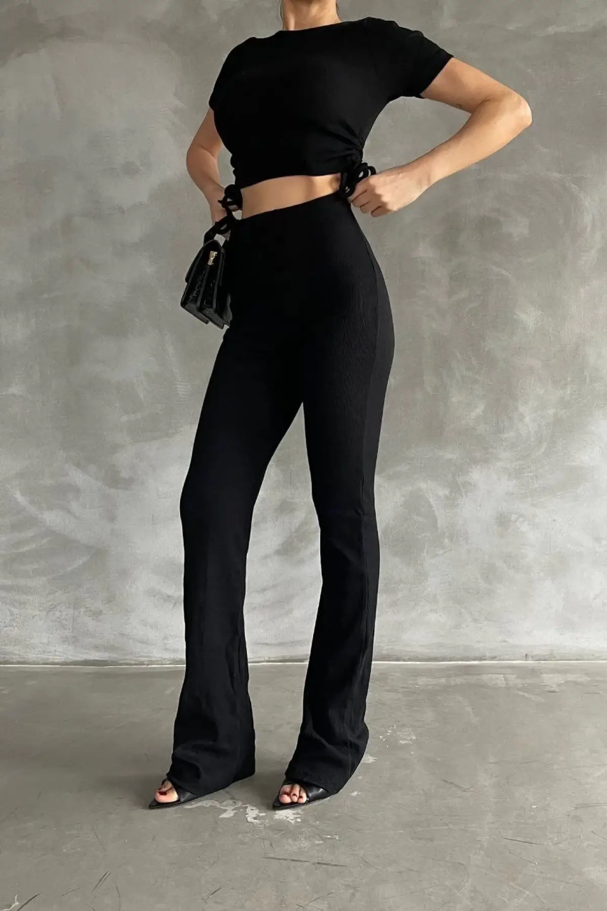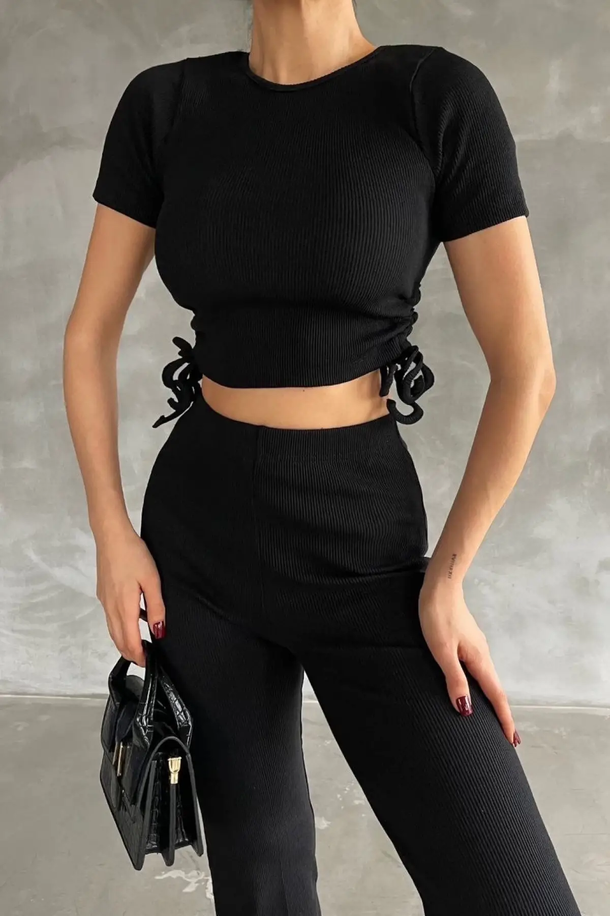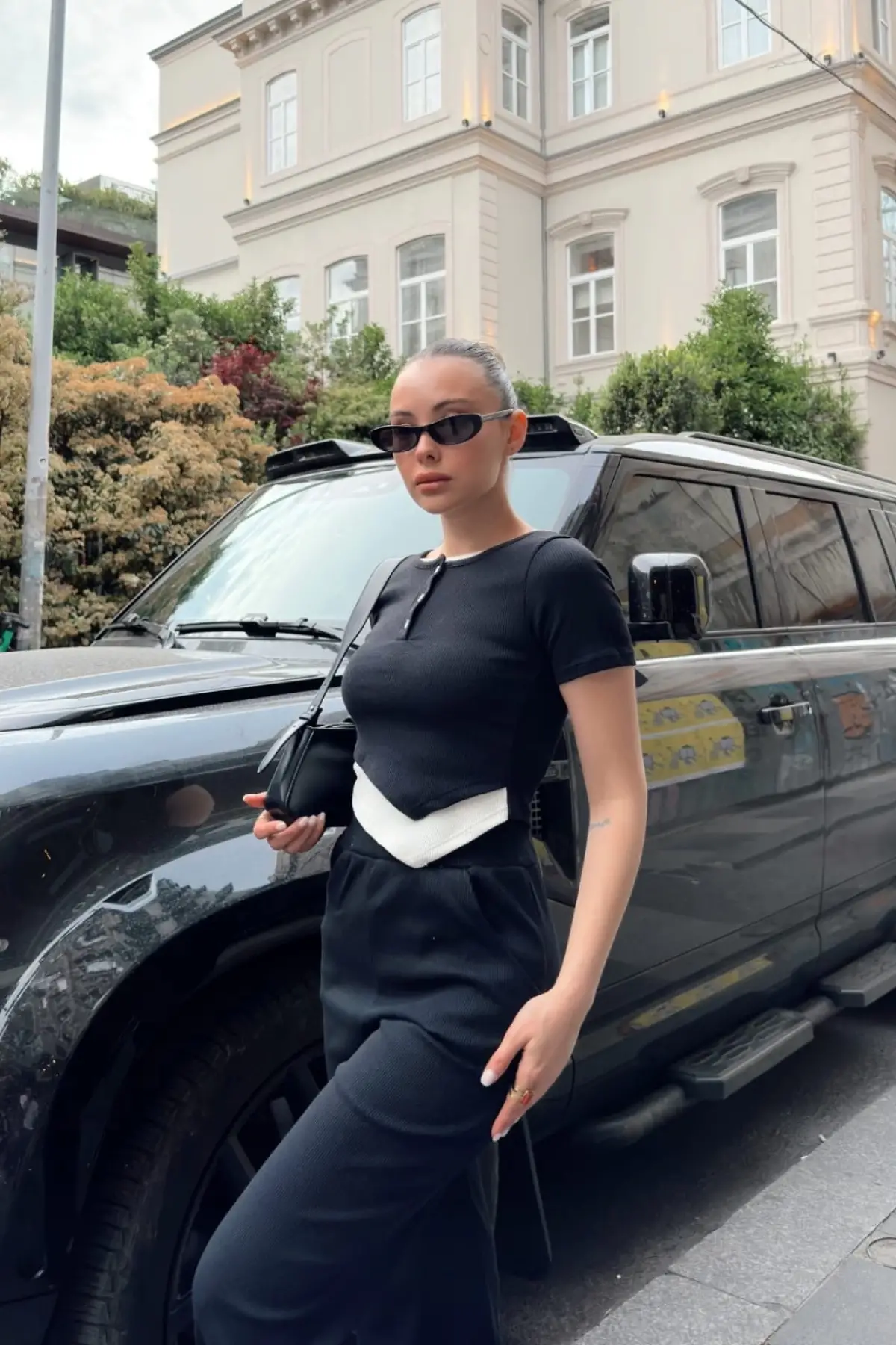 Düğme Yakalı Siyah Alt Üst Takım S3943