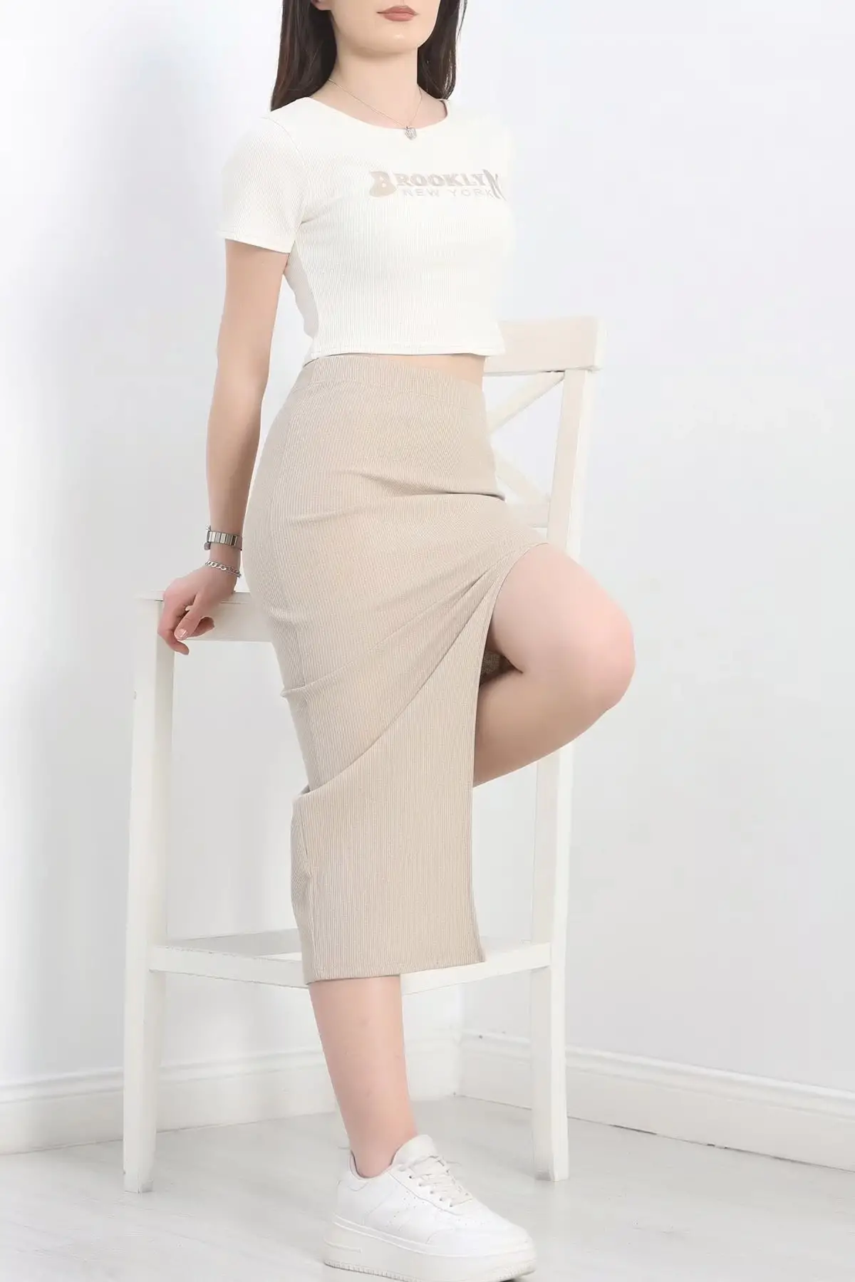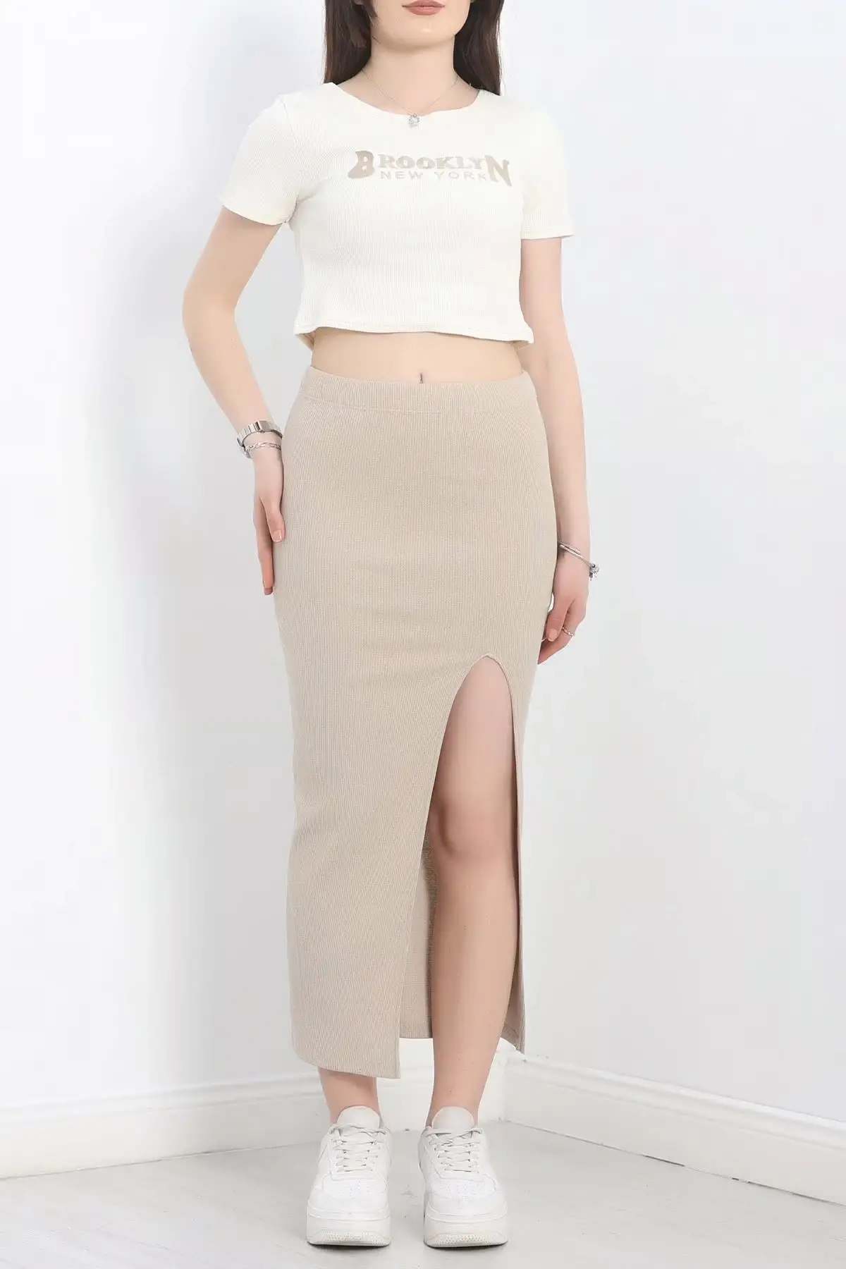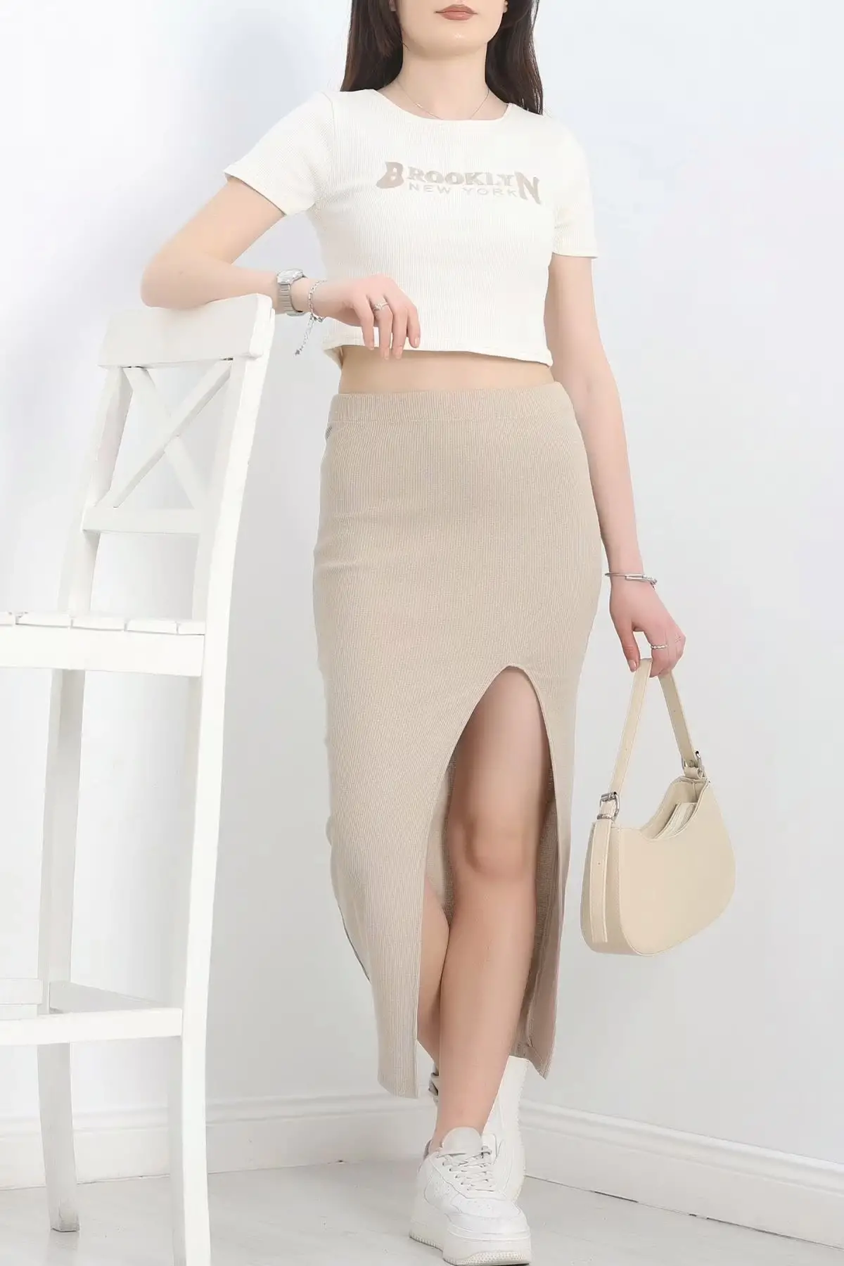 Nakışlı Etekli Takım Bej Beyaz S3899