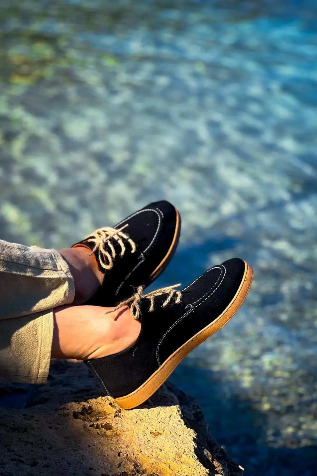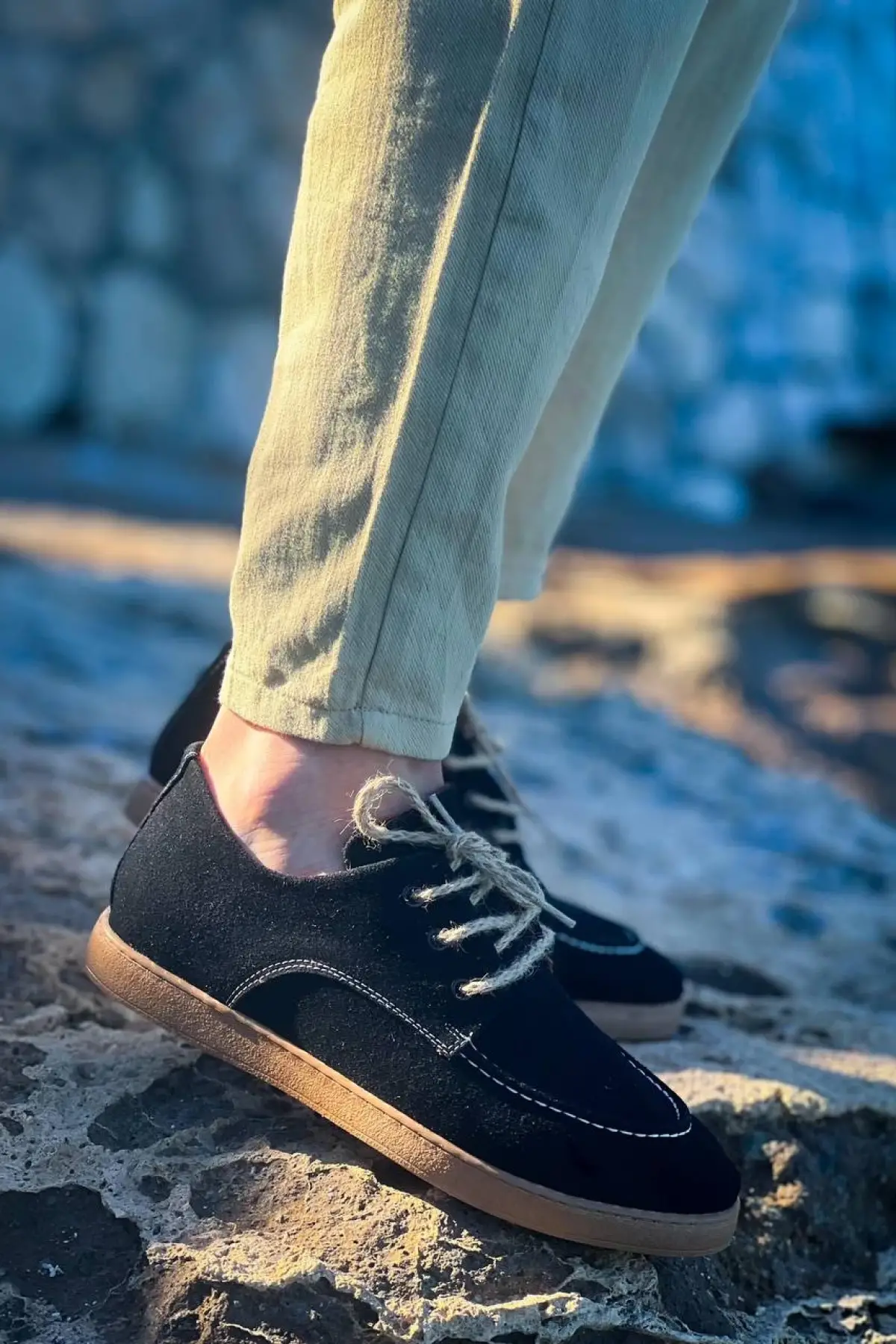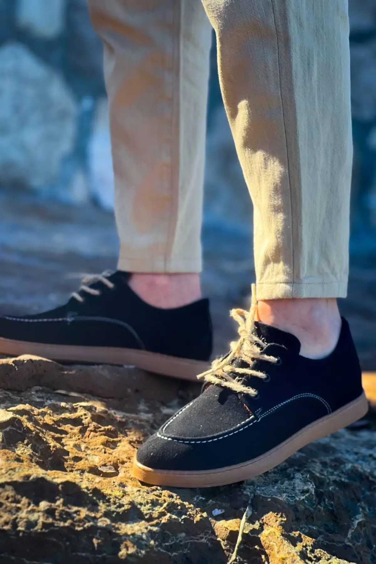 Tb-x5 Terzi Bey Siyah Süet Bağcıklı Günlük Erkek Ayakkabı