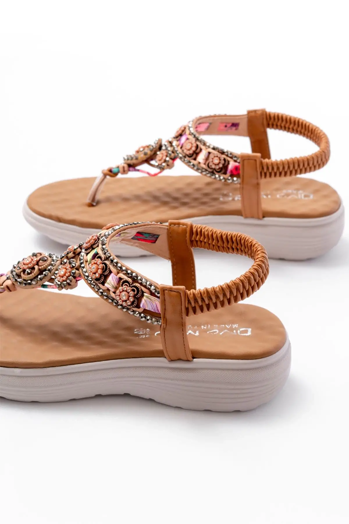 Dm-609 Taba Taşlı Arka Lastikli Parmak Arası Kadın Sandalet