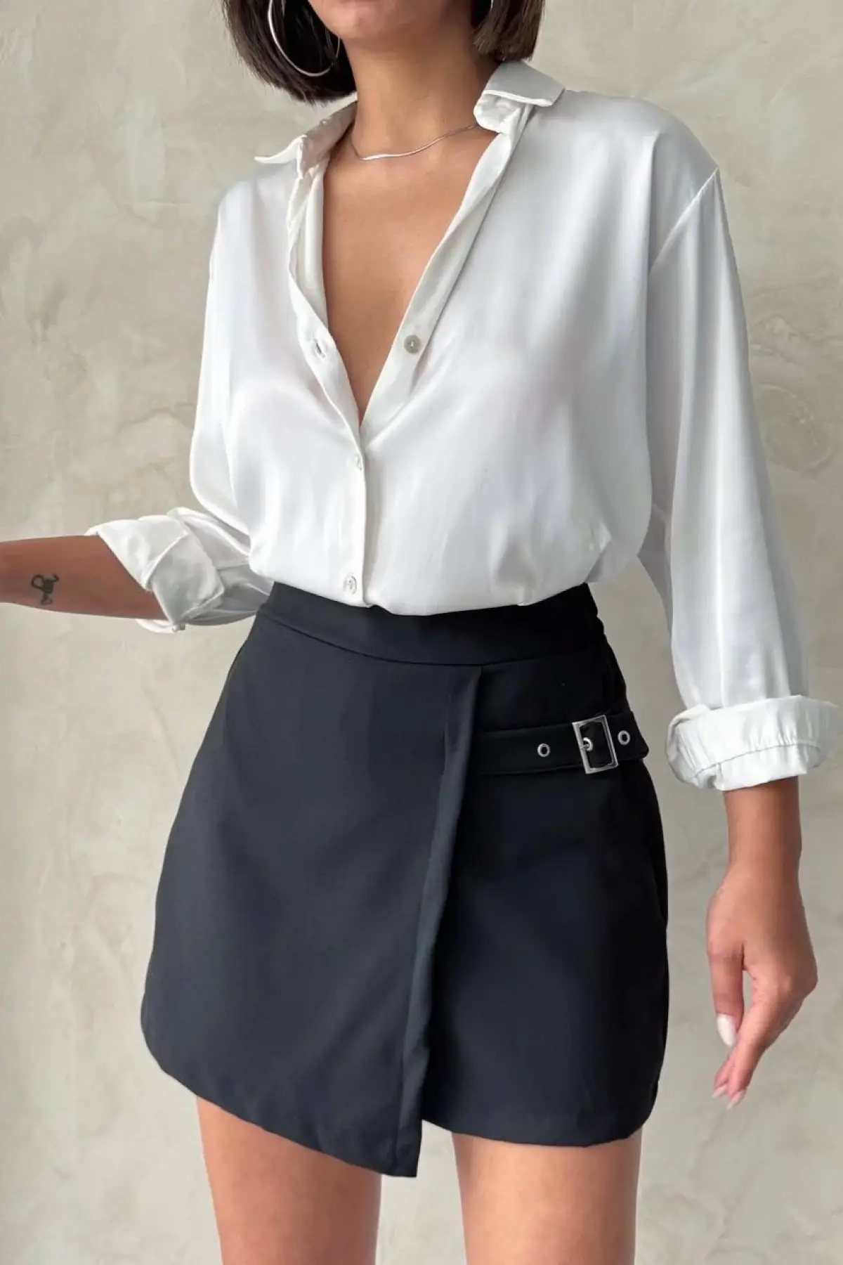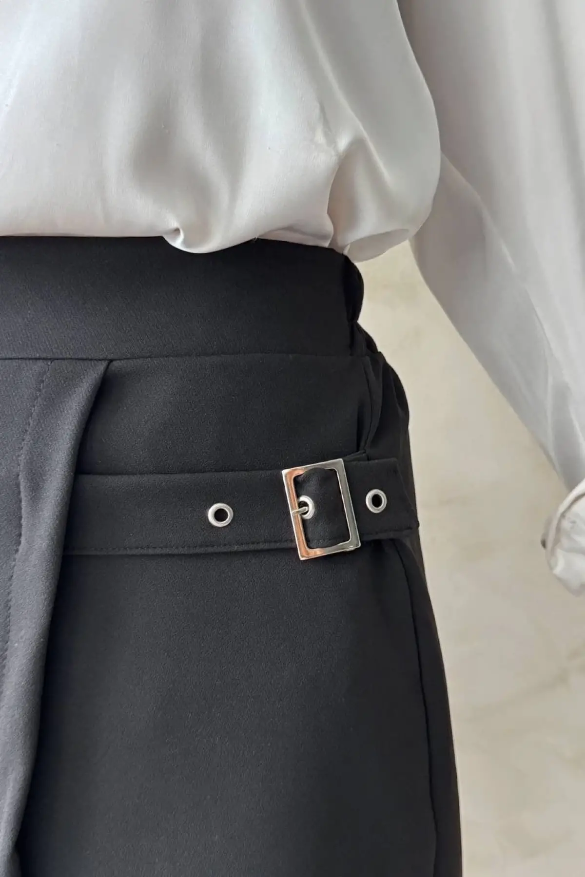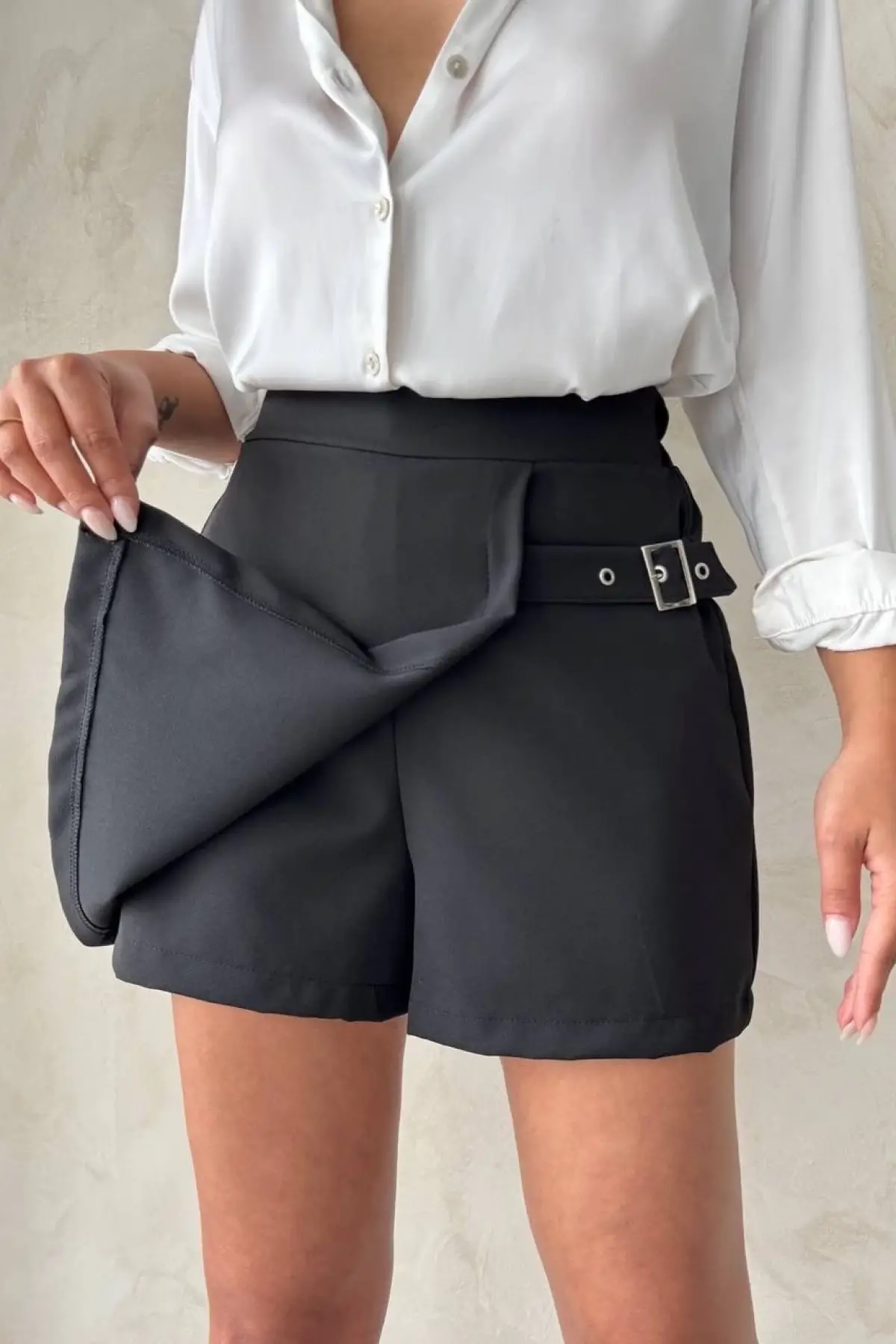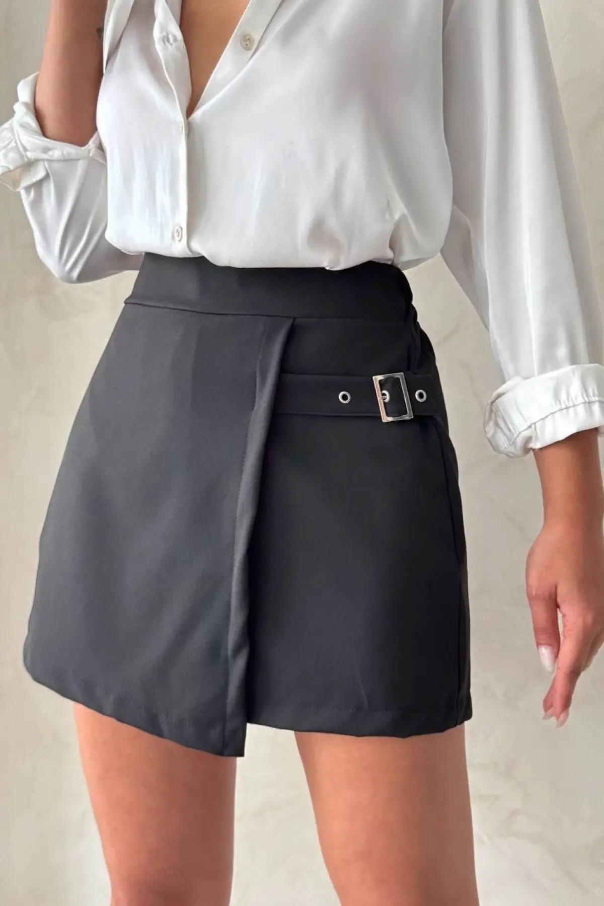 Kadın Tokalı Şort Etek Siyah S25449