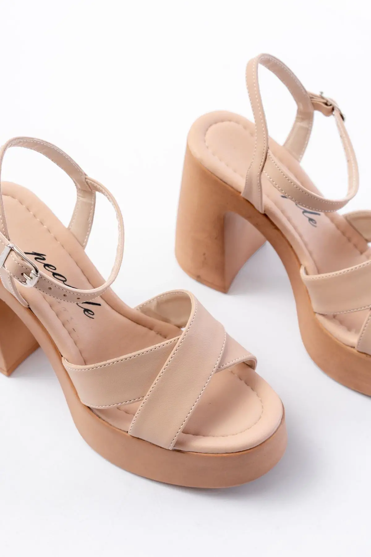 P-105 Nut Çapraz Kalın Topuklu Kadın Sandalet