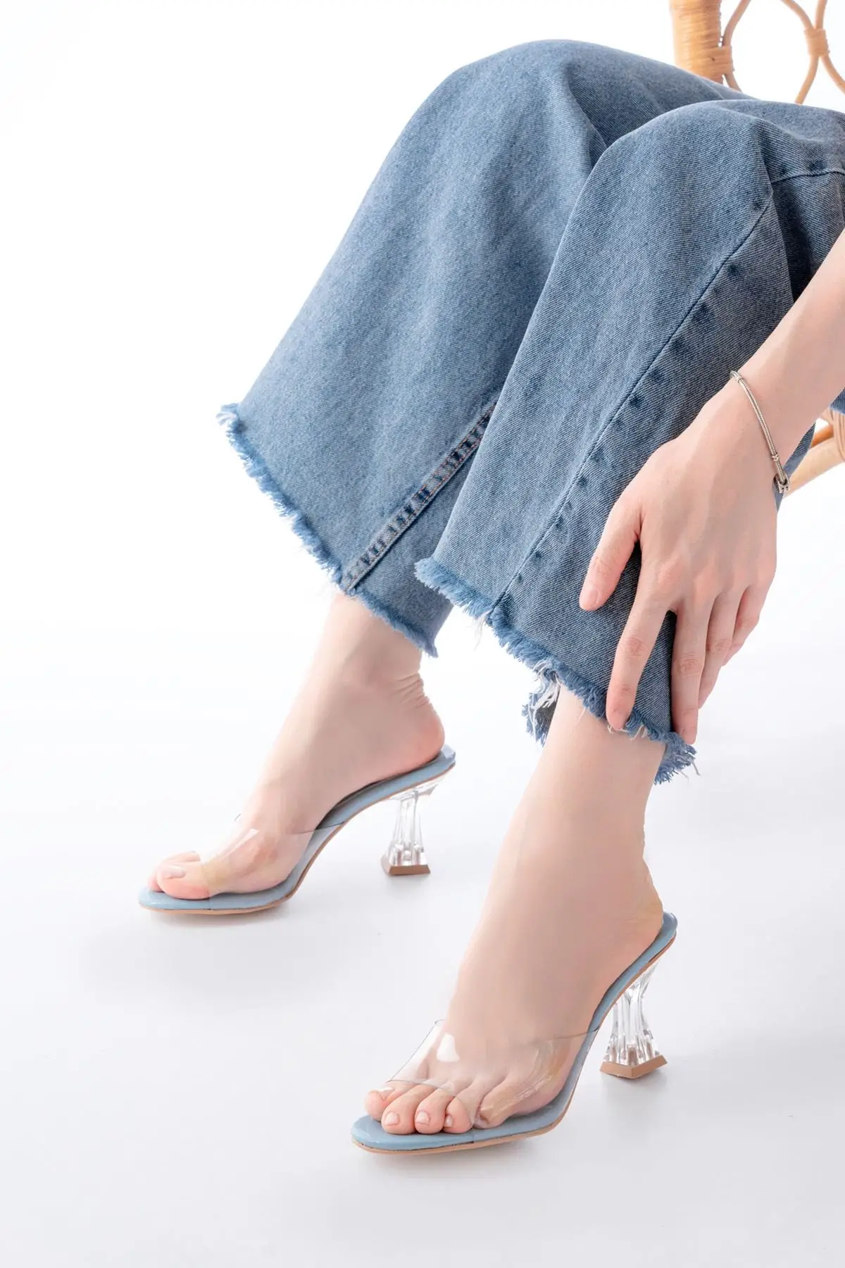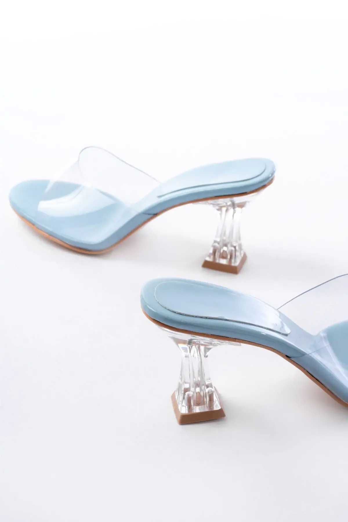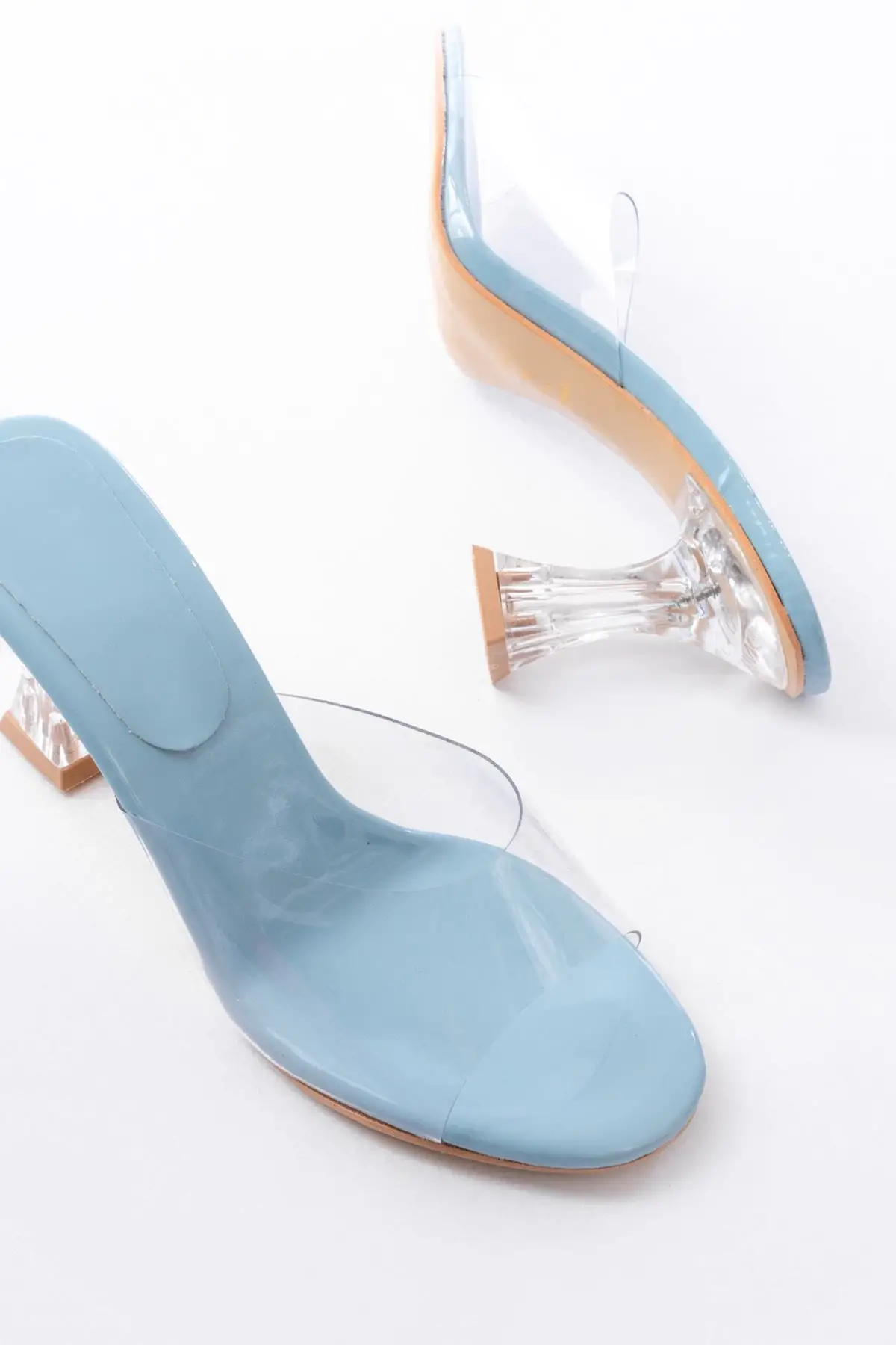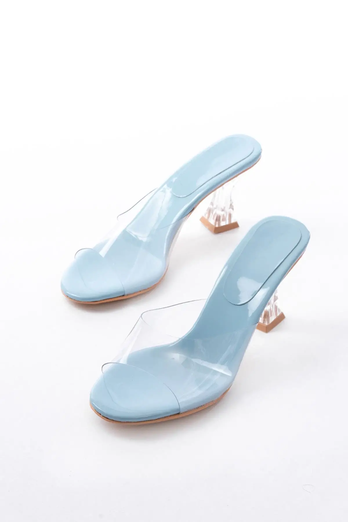 S-619 Bebe Mavi Rugan Şeffaf Bantlı Şeffaf Topuklu Yuvarlak Burunlu Kadın Terlik