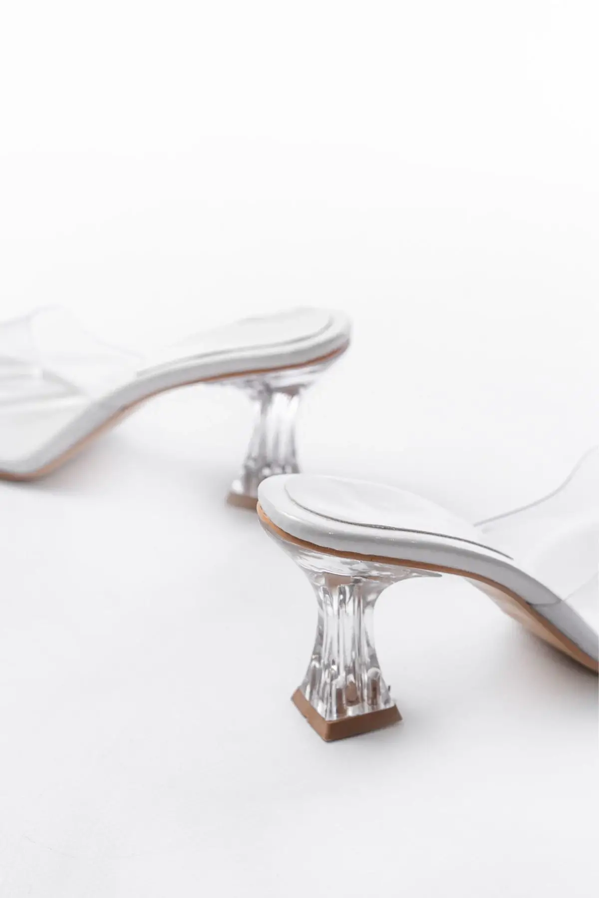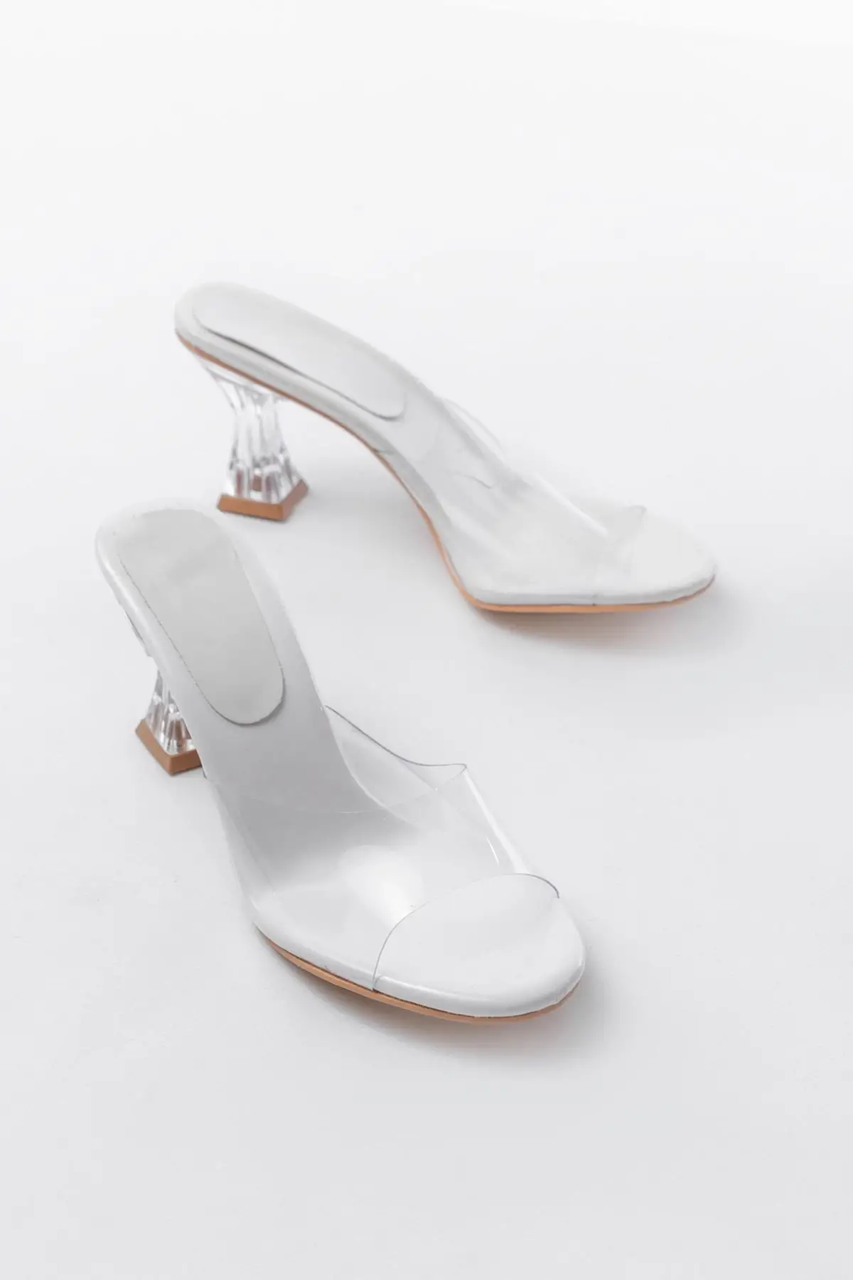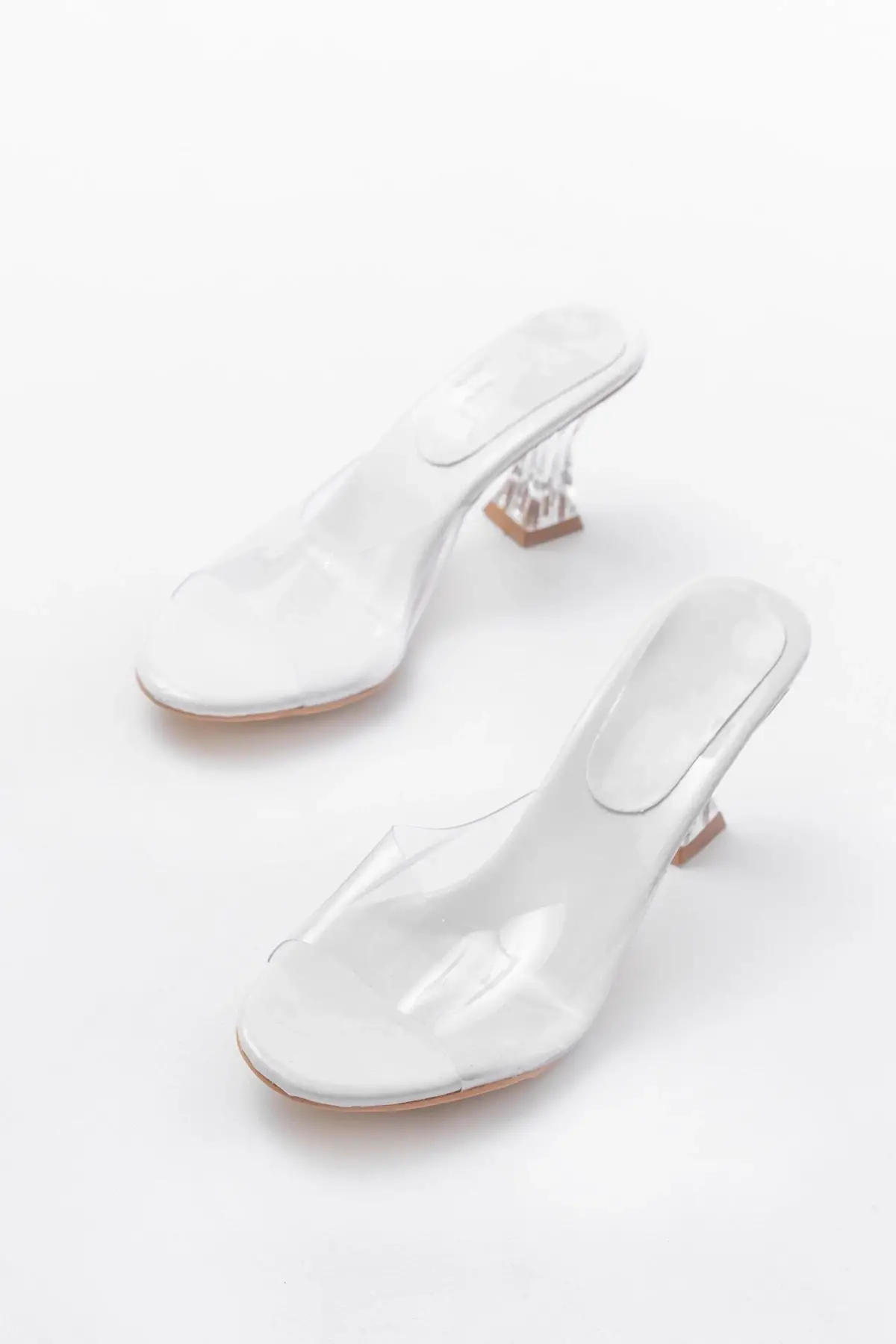 S-619 Beyaz Rugan Şeffaf Bantlı Şeffaf Topuklu Yuvarlak Burunlu Kadın Terlik