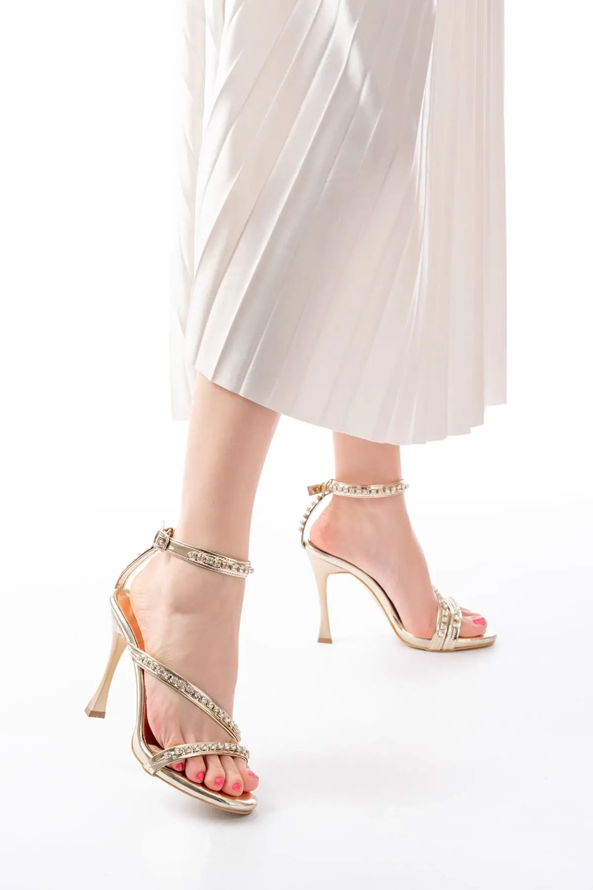 Platin Taşlı Platformlu Topuklu Kadın Ayakkabı