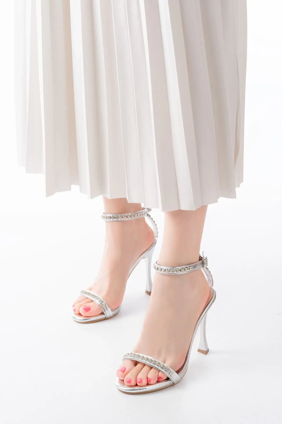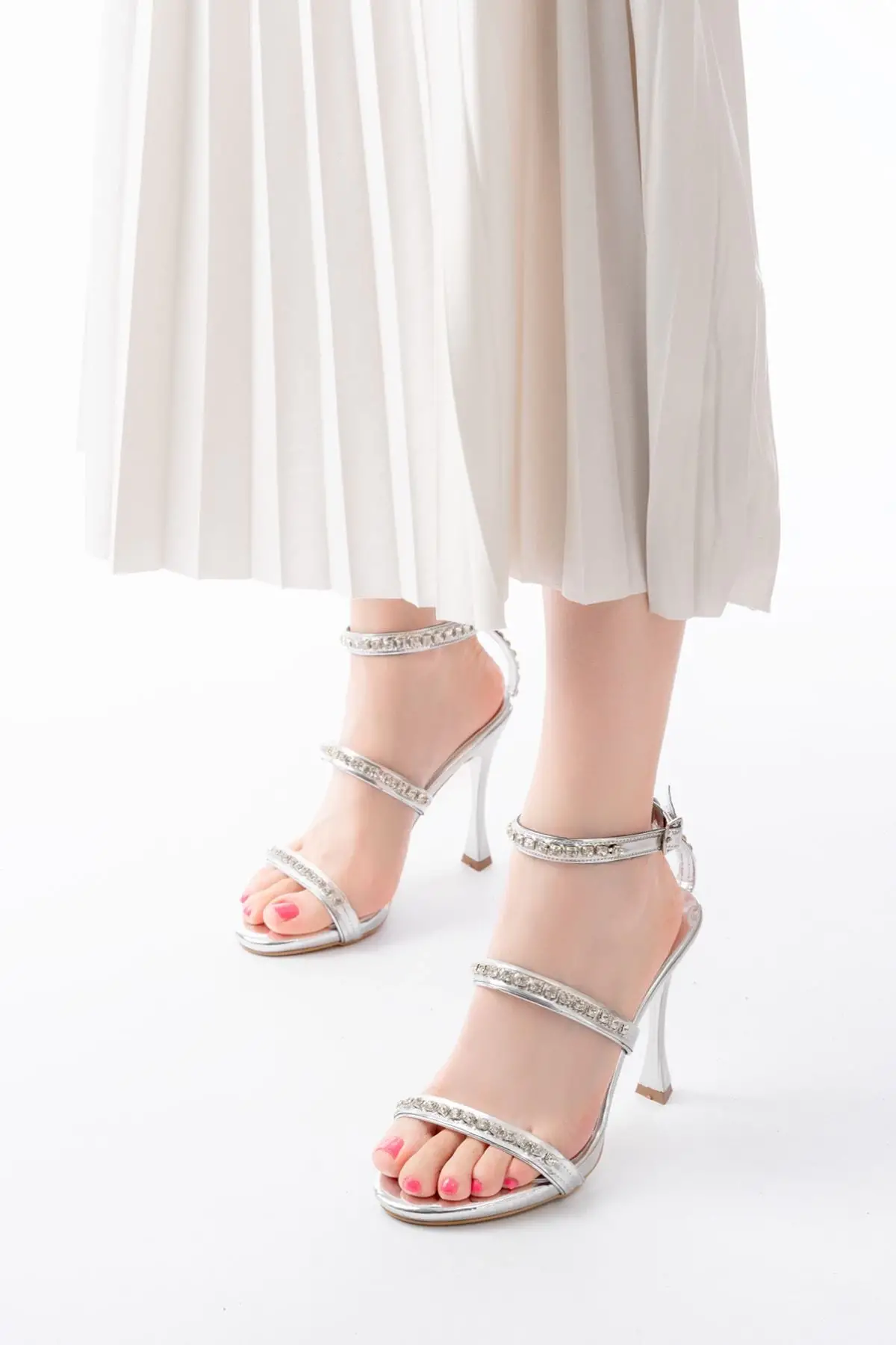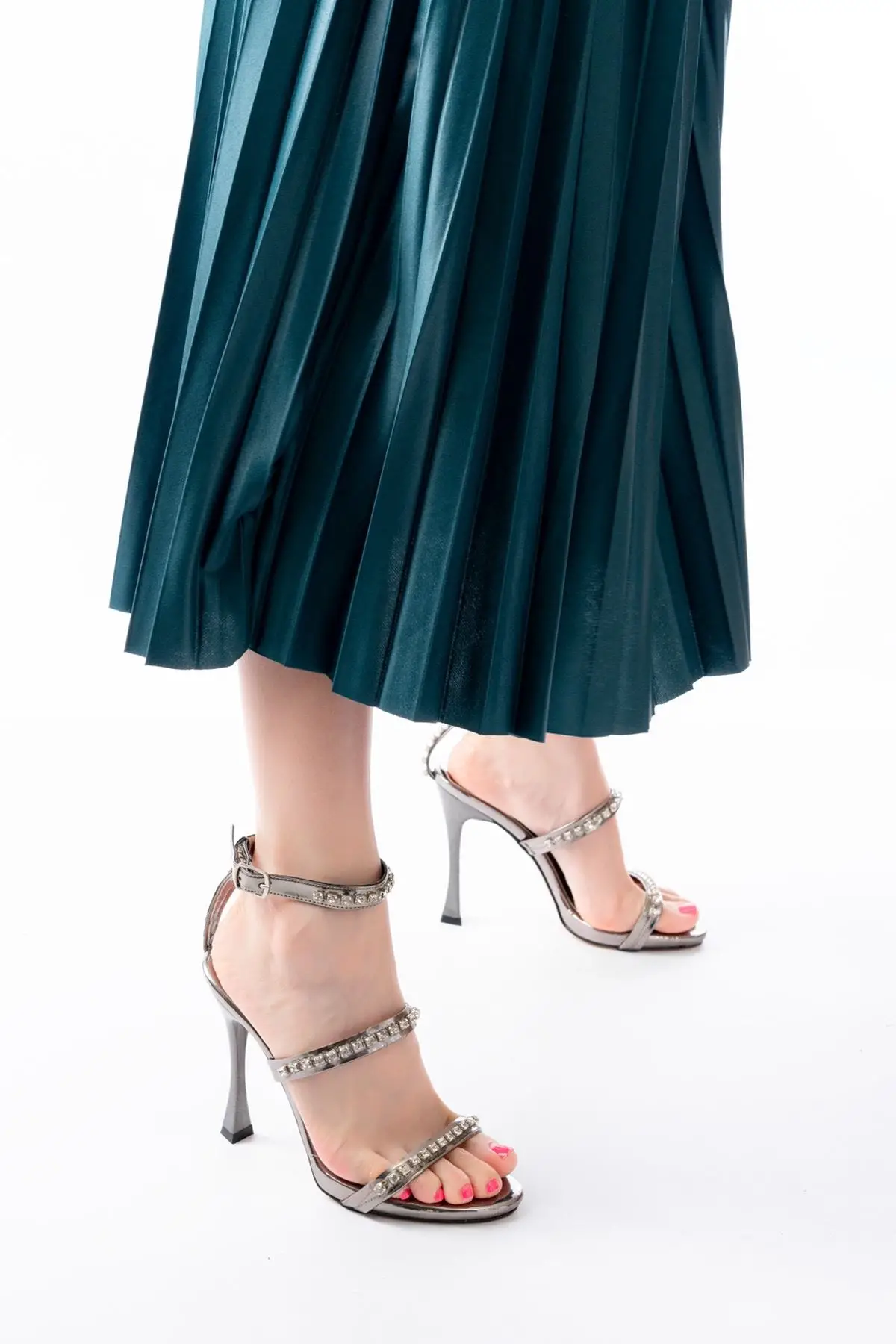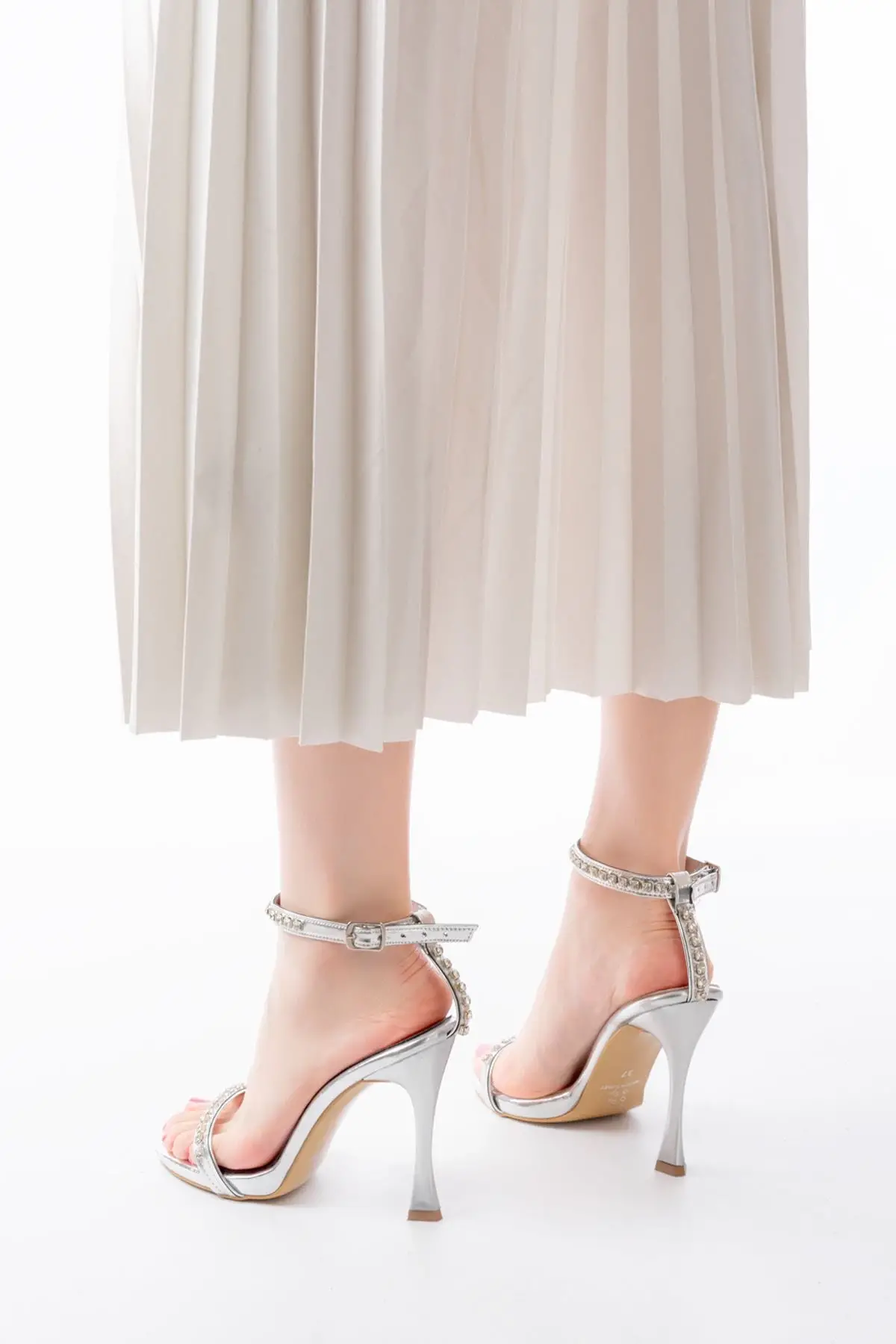 Gümüş Taşlı Platformlu Topuklu Kadın Ayakkabı