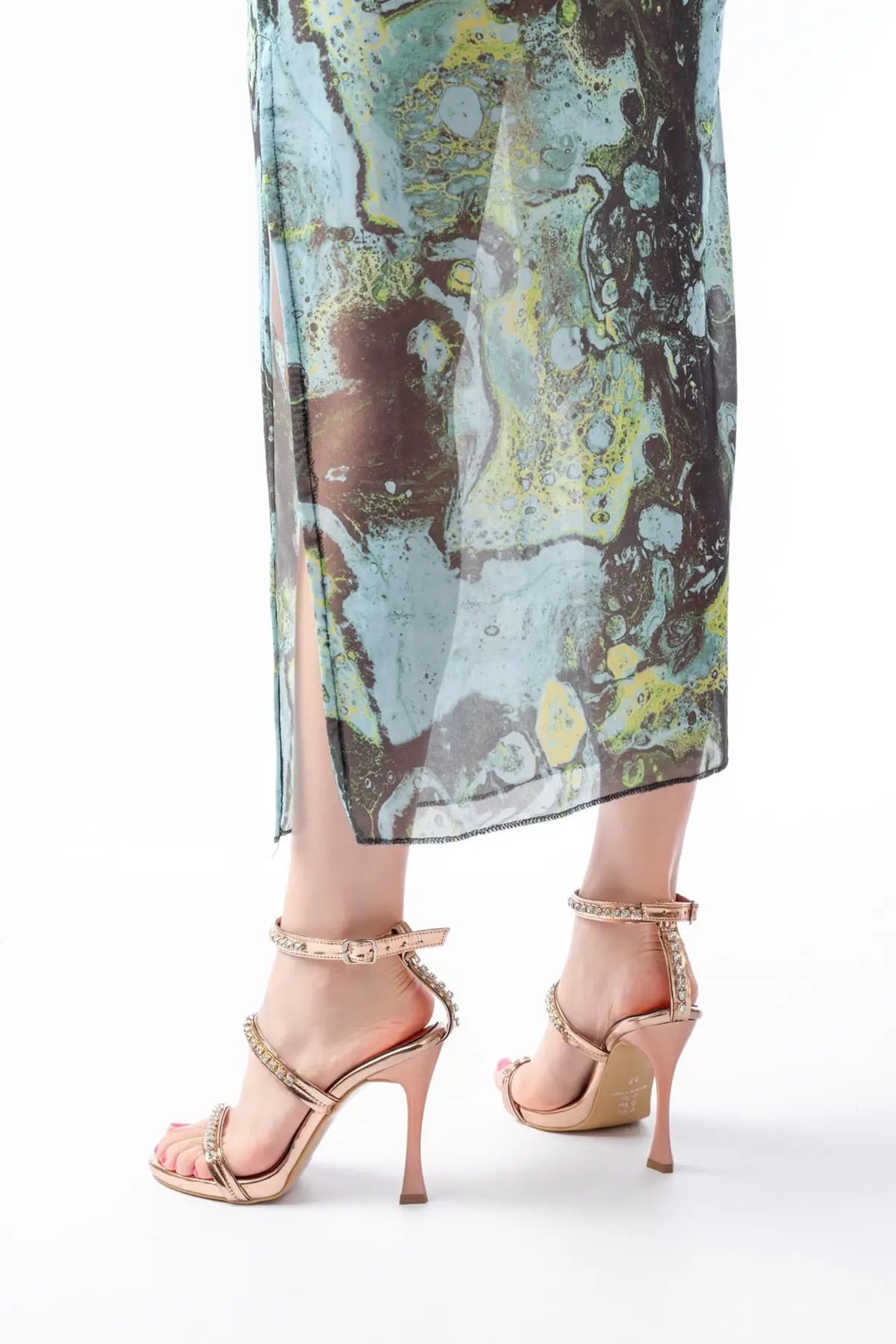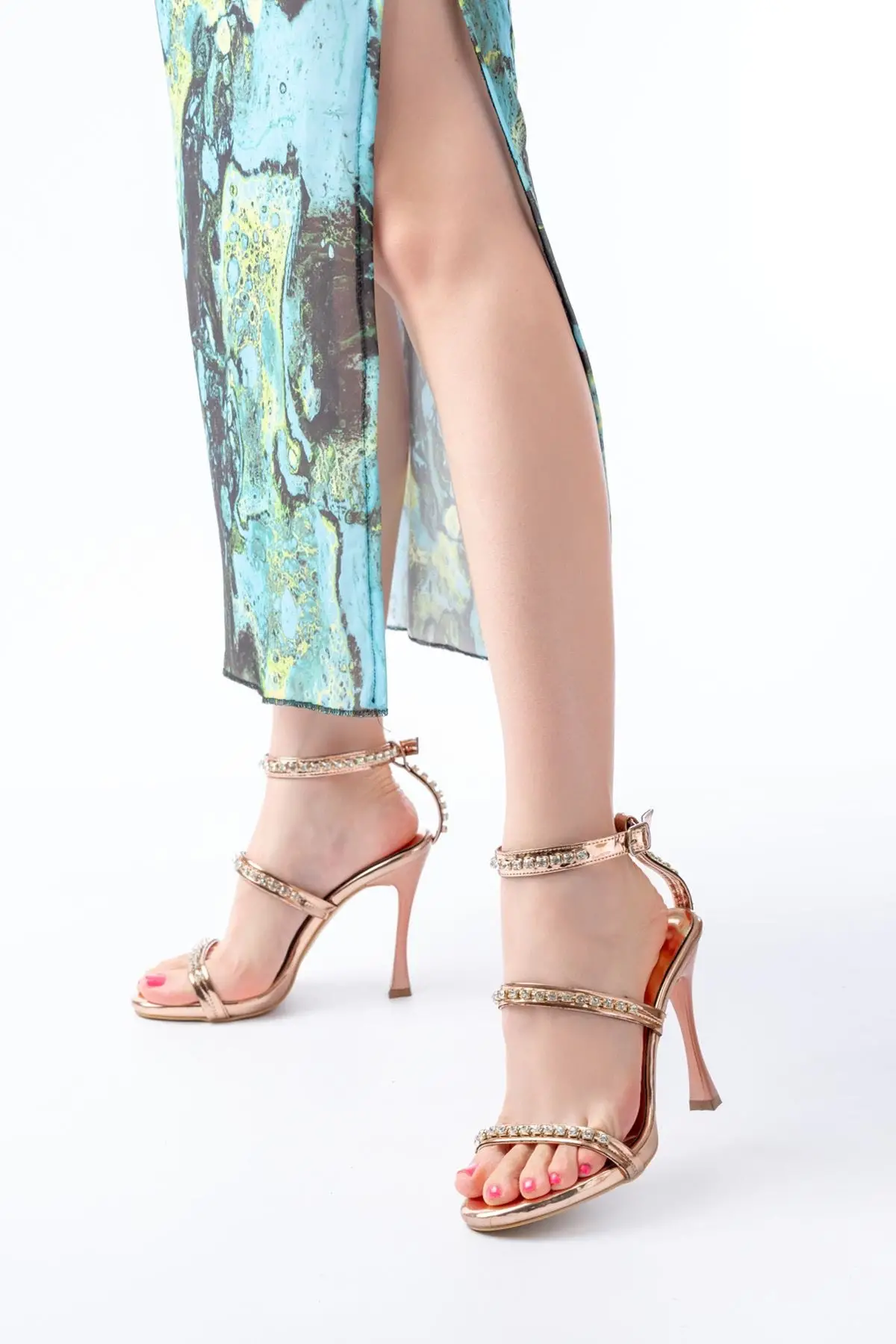 Rose Taşlı Platformlu Topuklu Kadın Ayakkabı