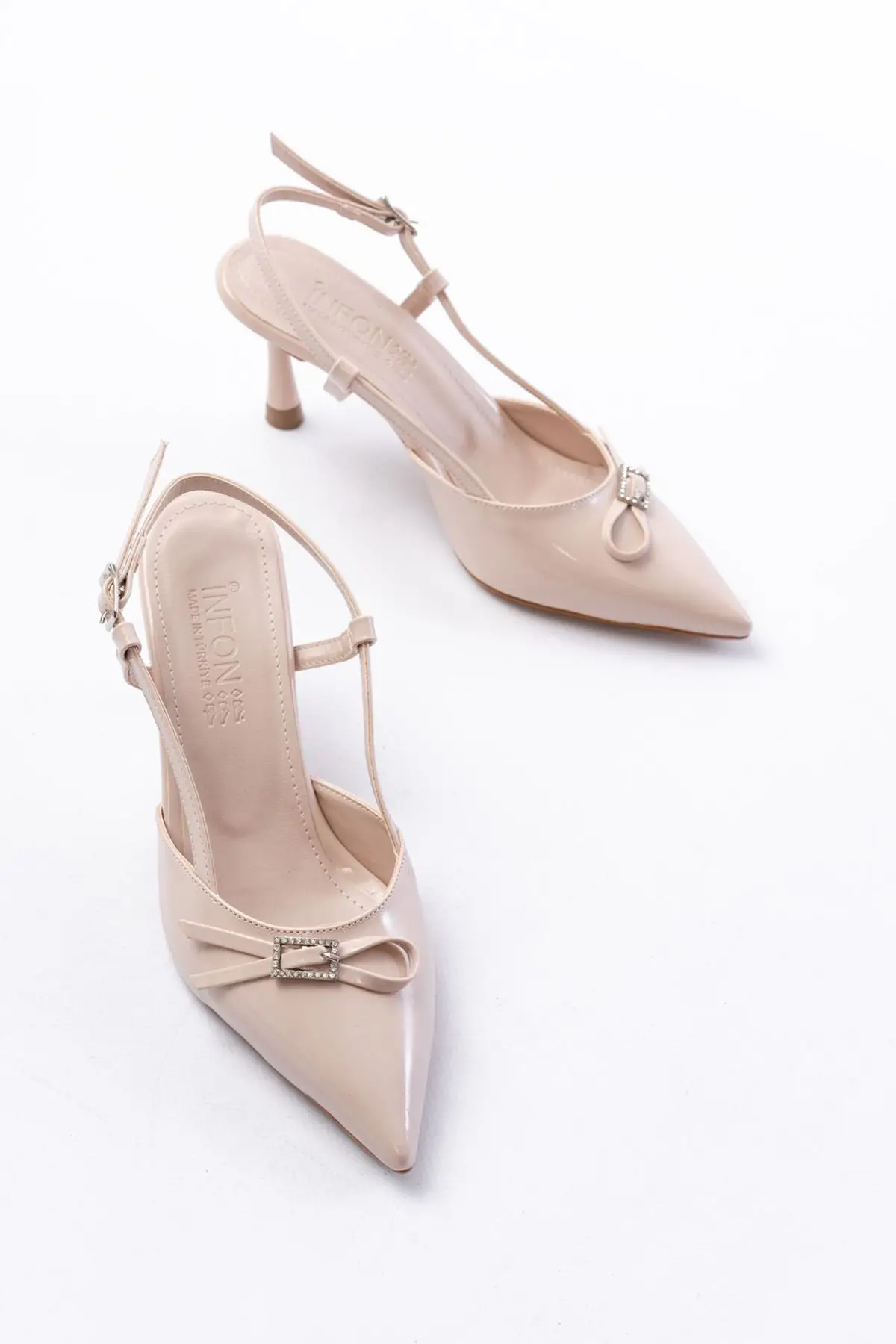 Bej Rugan Günlük Arkası Açık Fiyonklu Topuklu Bayan Ayakkabı