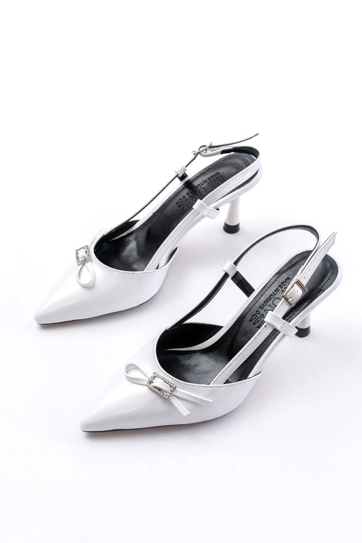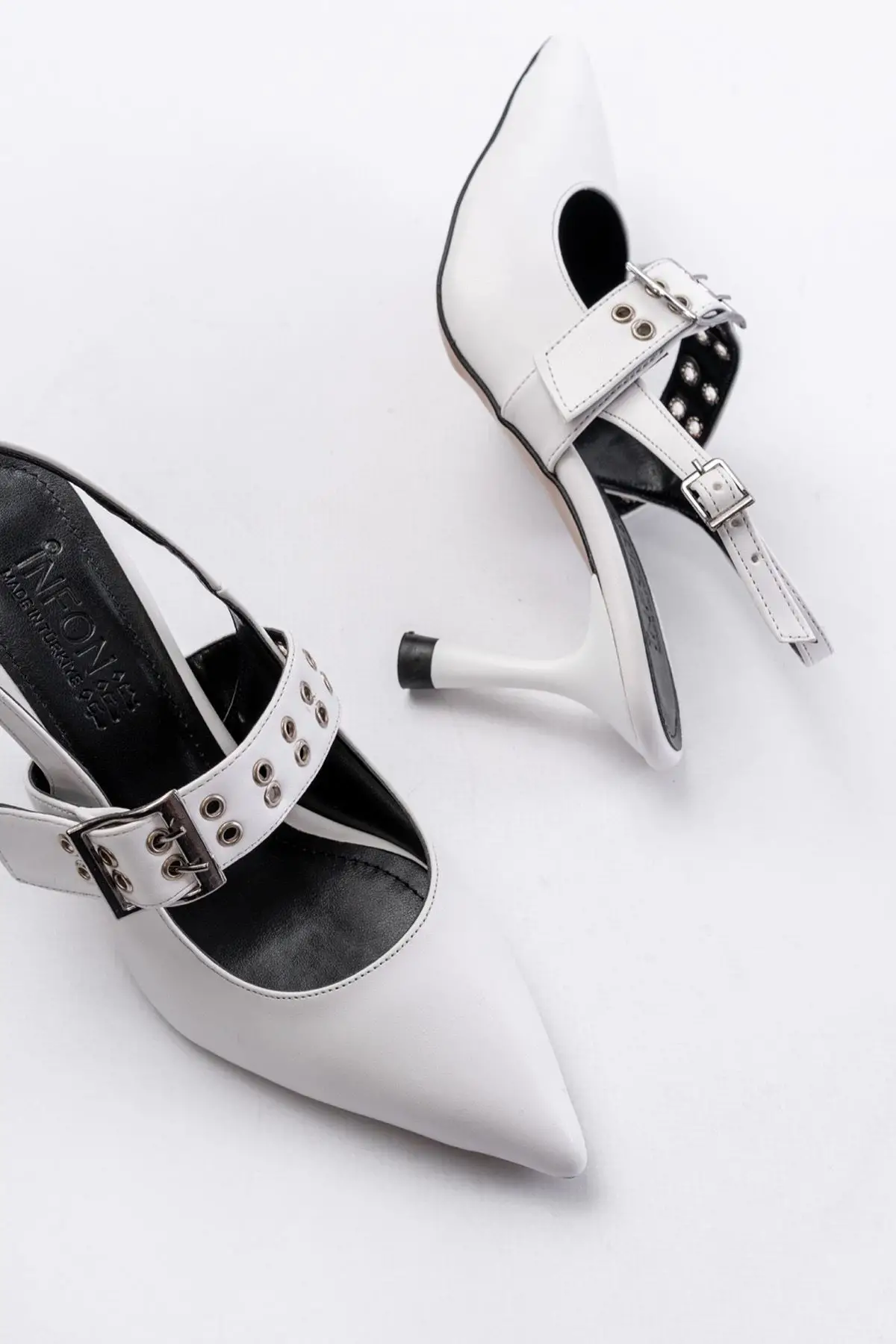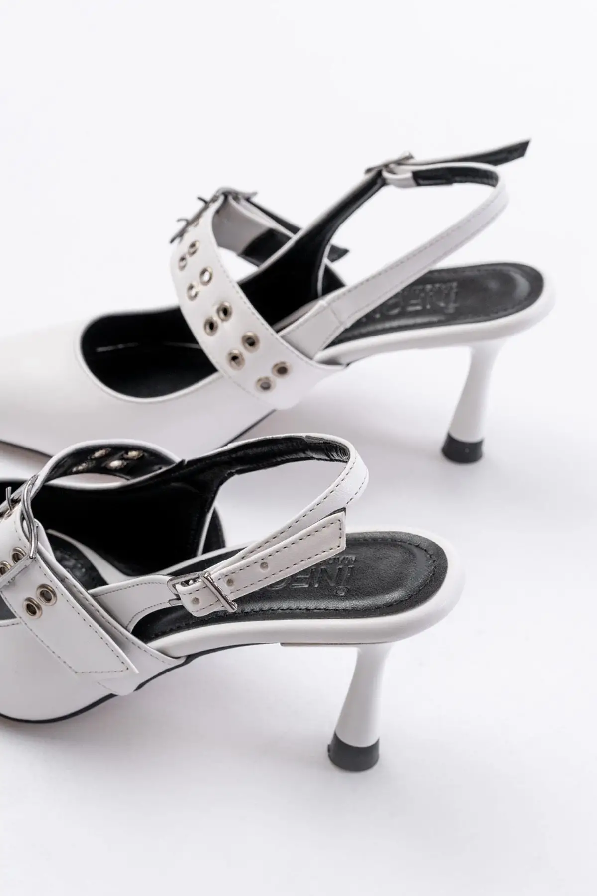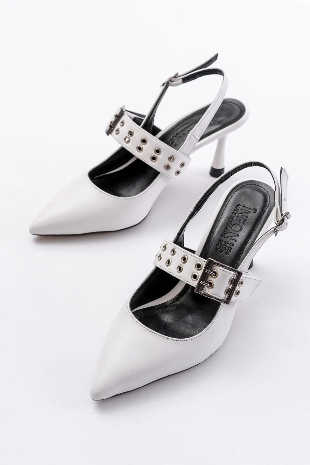 Beyaz Günlük Arkası Açık Baret Tokalı Topuklu Bayan Ayakkabı