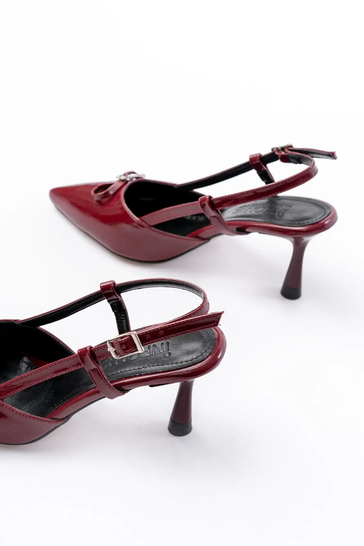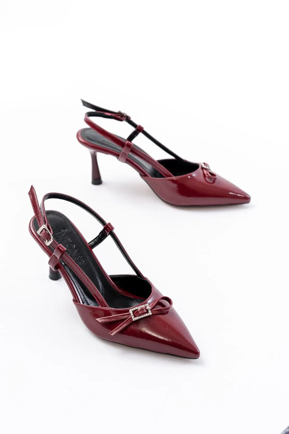 Bordo Rugan Günlük Arkası Açık Fiyonklu Topuklu Bayan Ayakkabı