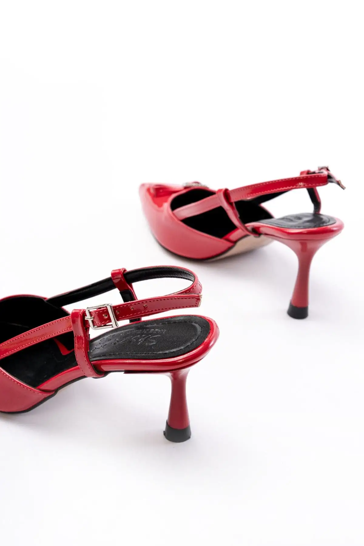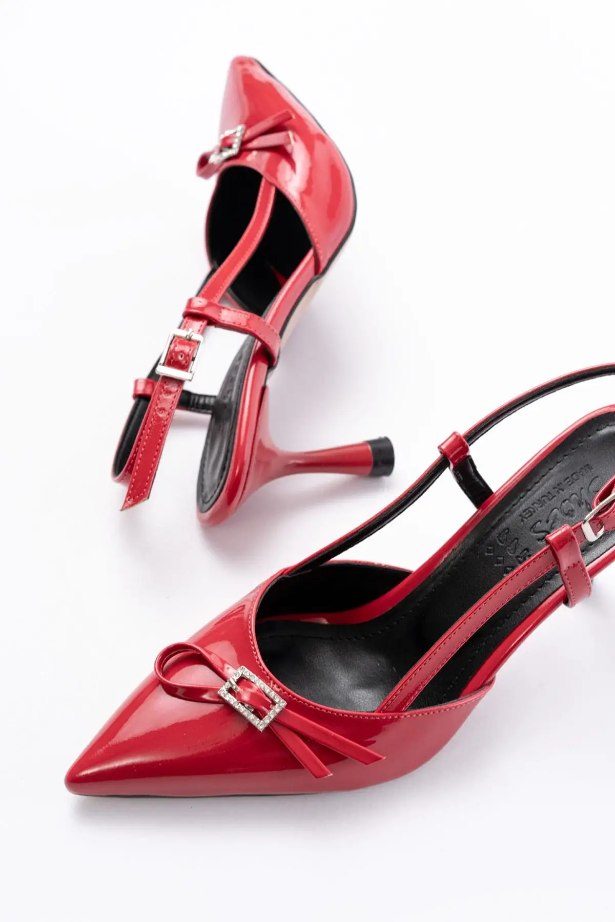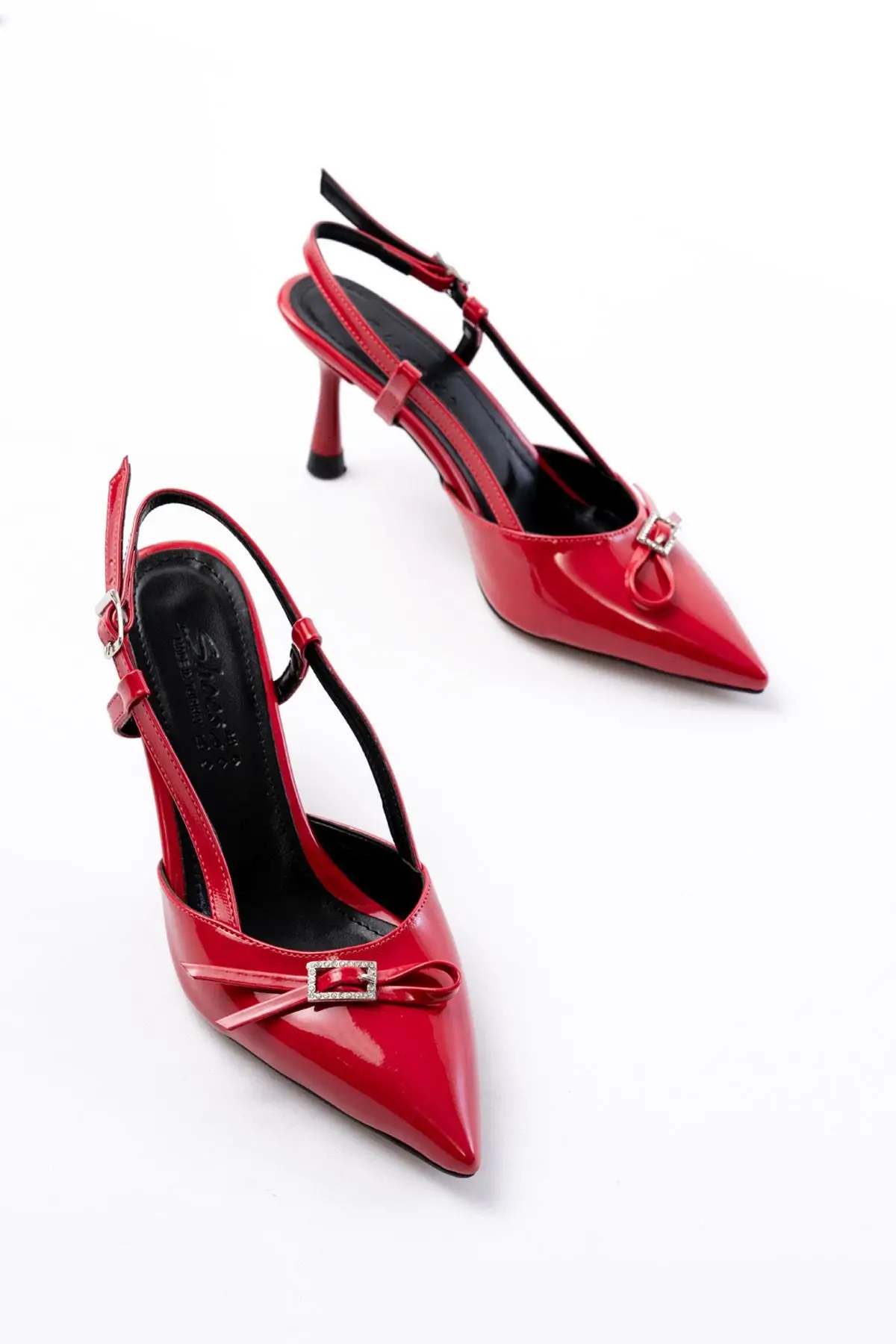 Kırmızı Rugan Günlük Arkası Açık Fiyonklu Topuklu Bayan Ayakkabı