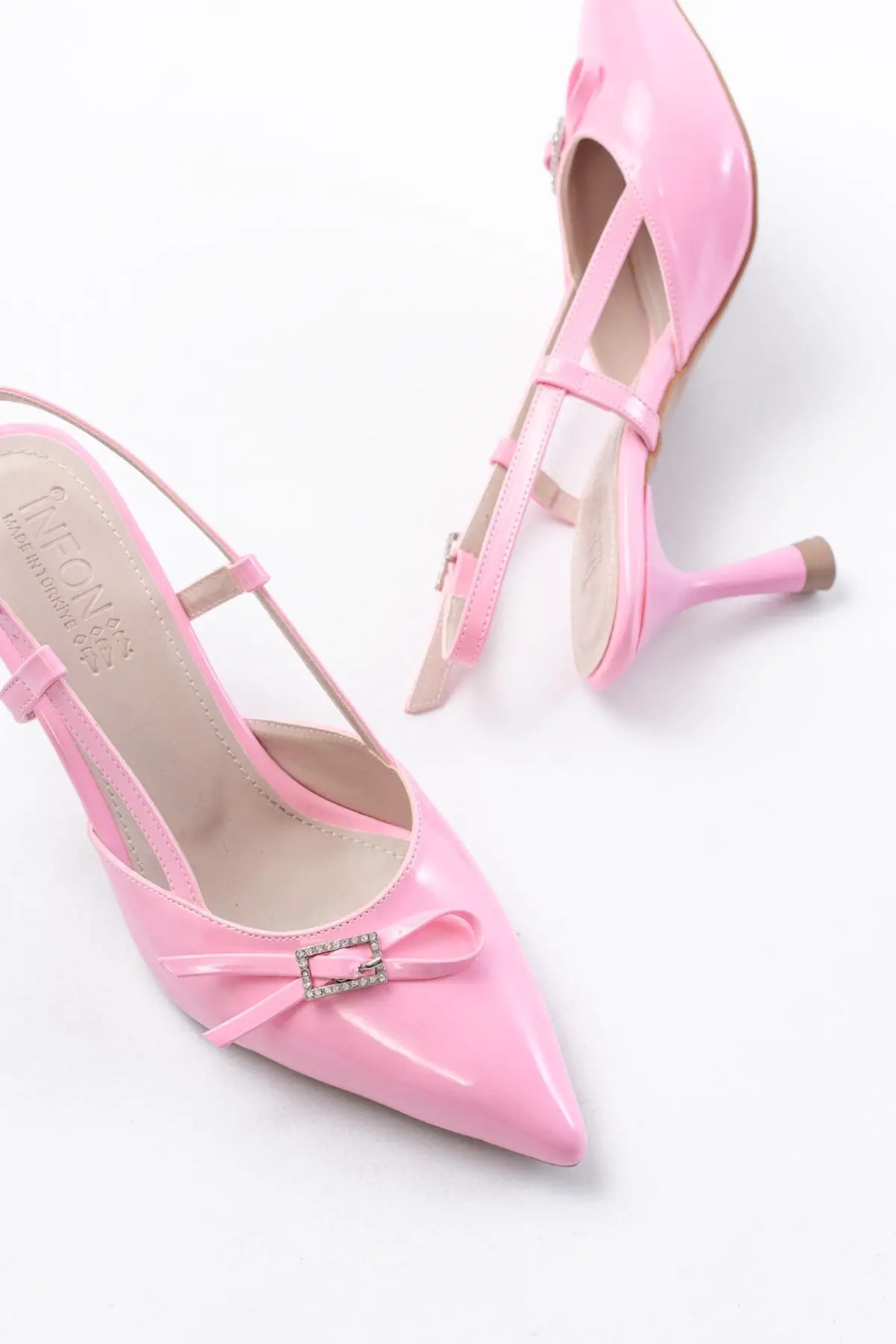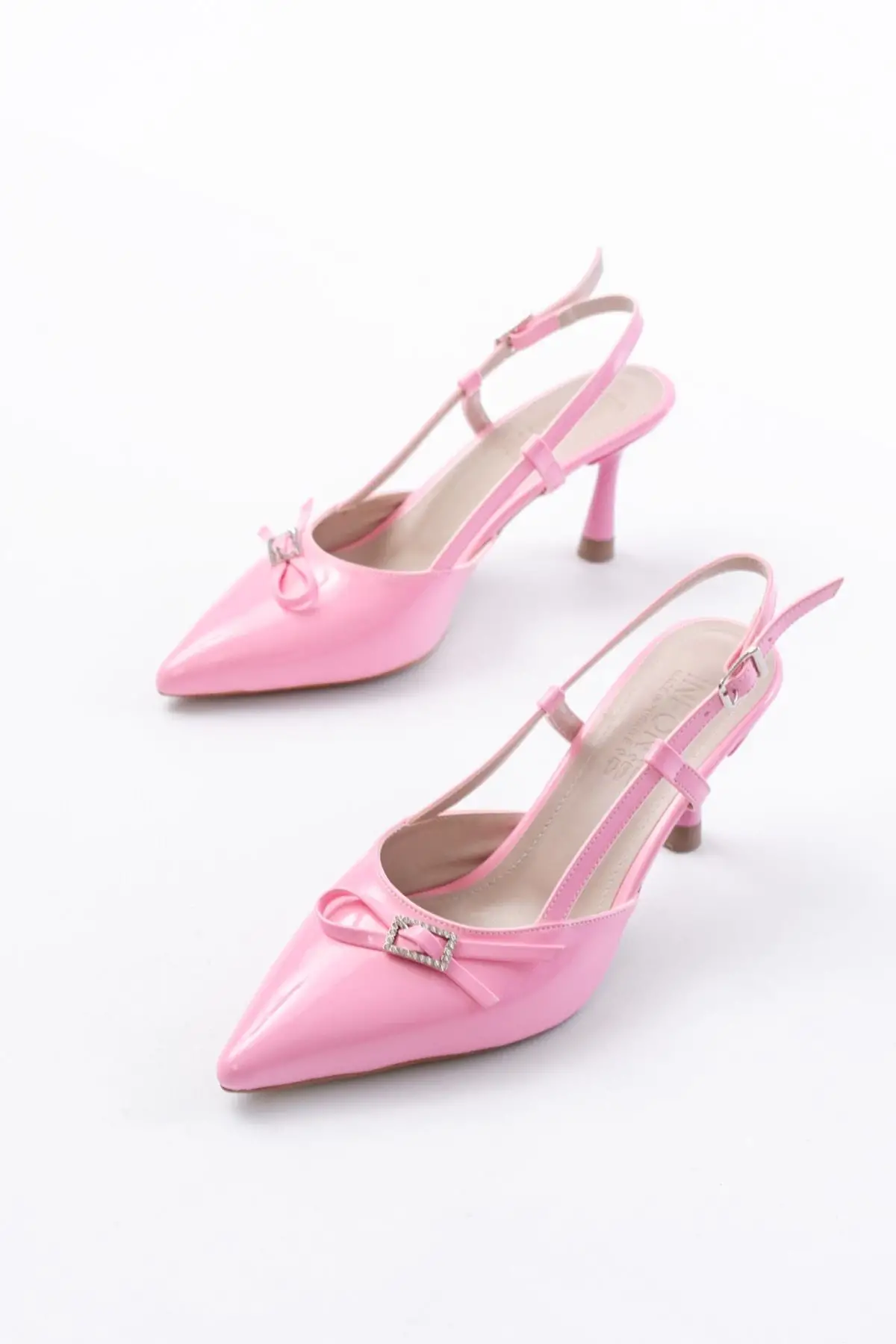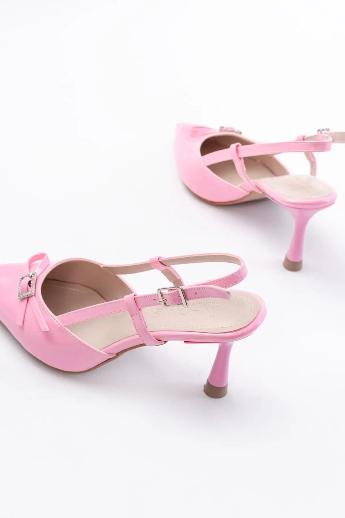 Pembe Rugan Günlük Arkası Açık Fiyonklu Topuklu Bayan Ayakkabı