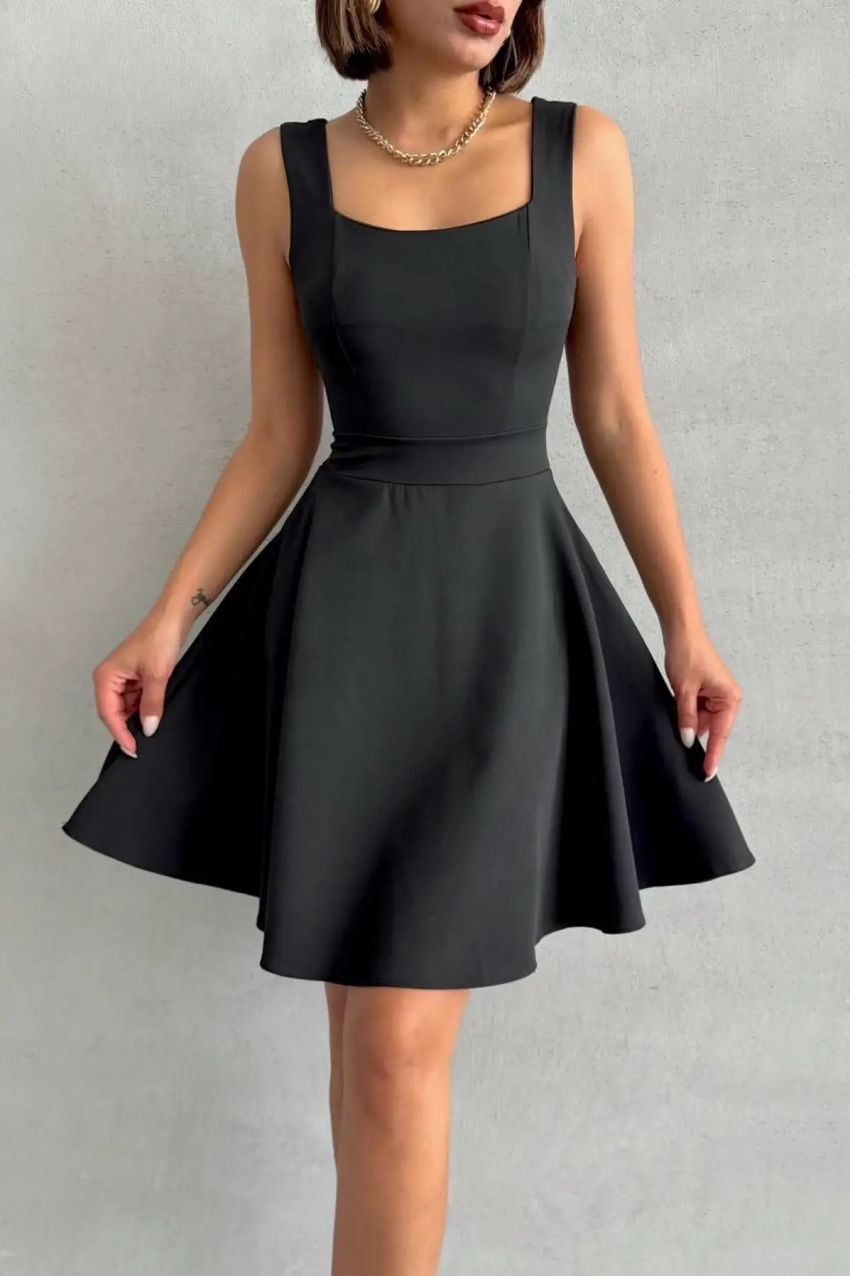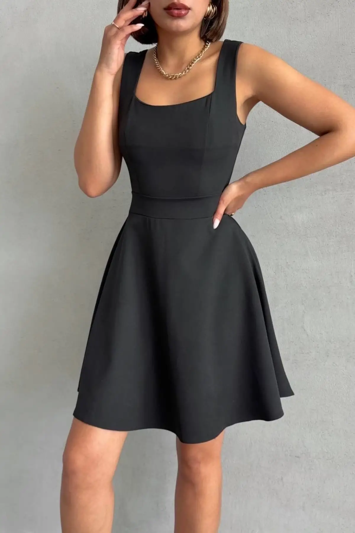 Kadın Kare Yaka Kısa Elbise