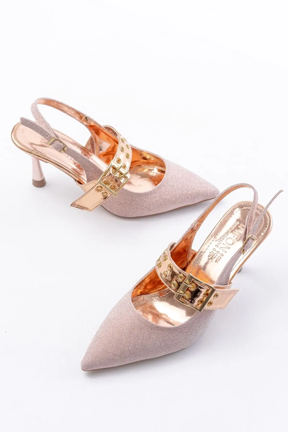 Rose Simli Günlük Arkası Açık Baret Tokalı Topuklu Bayan Ayakkabı
