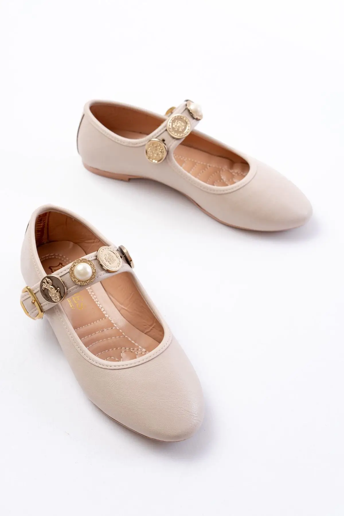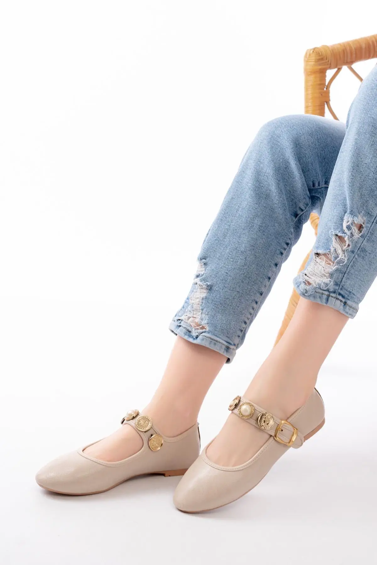 Bej Baret Tokalı Günlük Bayan Ayakkabı