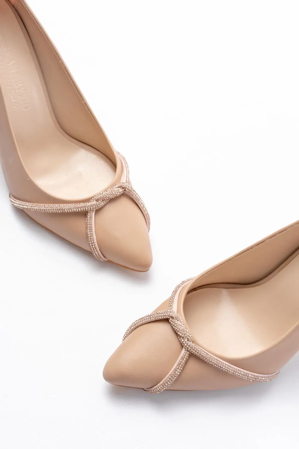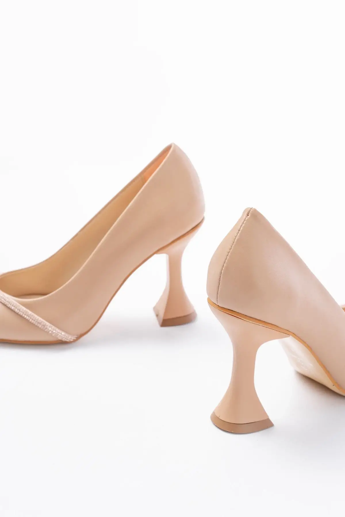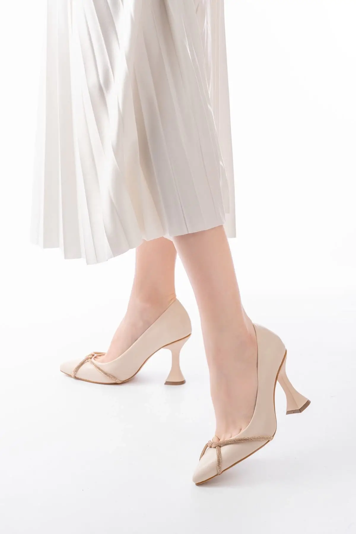 Bej Günlük Sarmal Taşlı Topuklu Kadın Ayakkabı