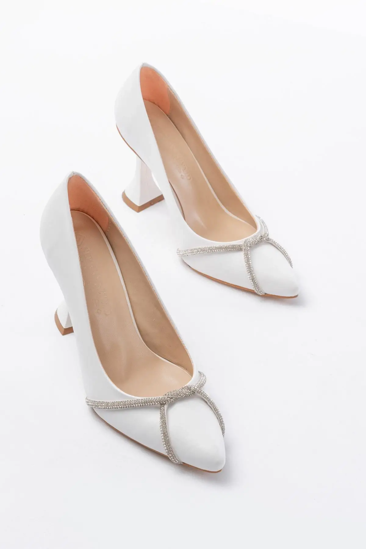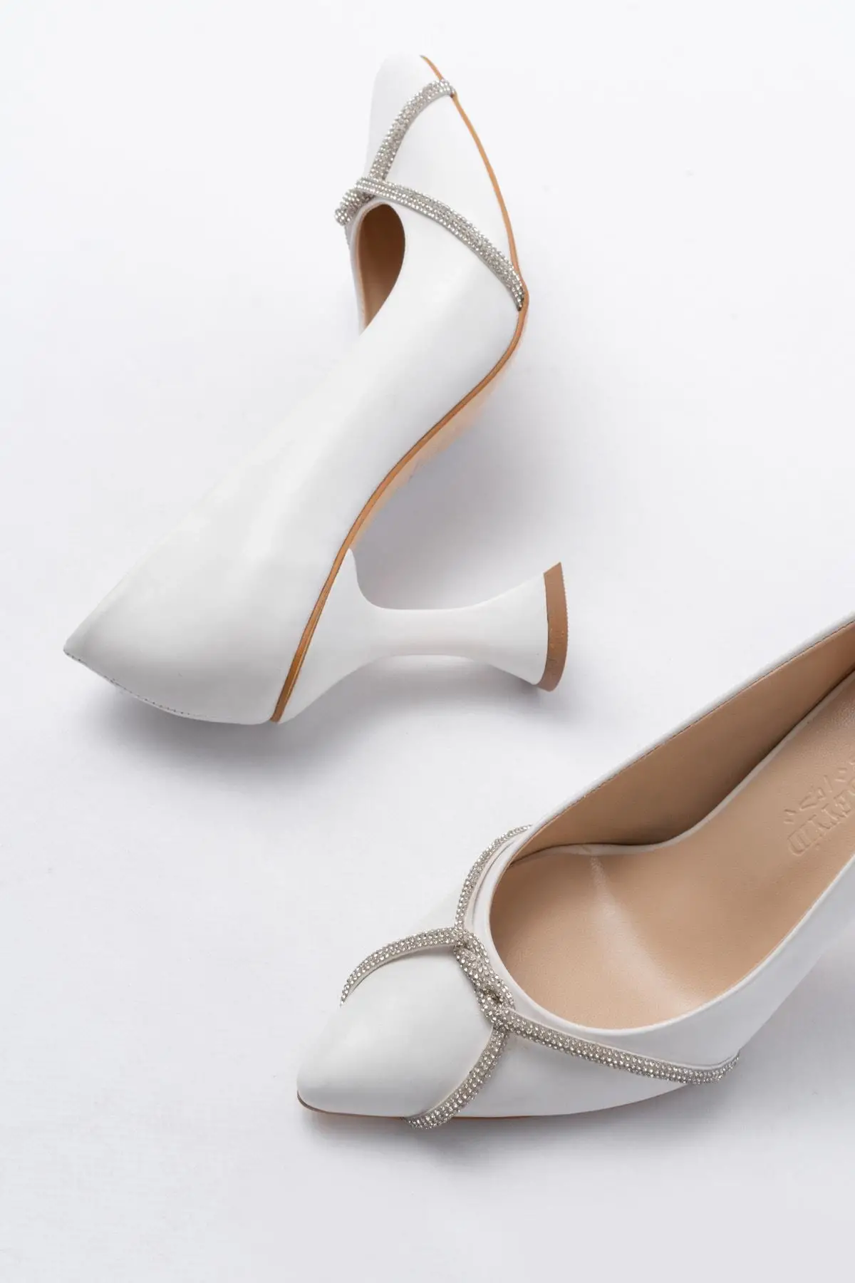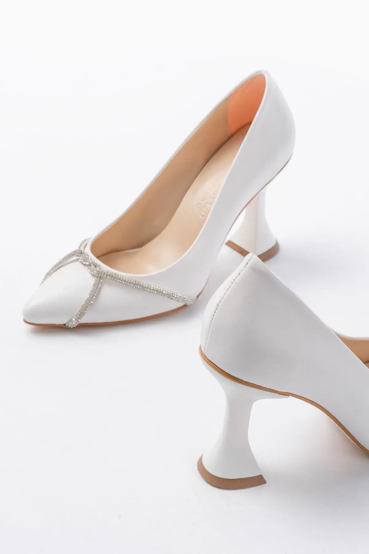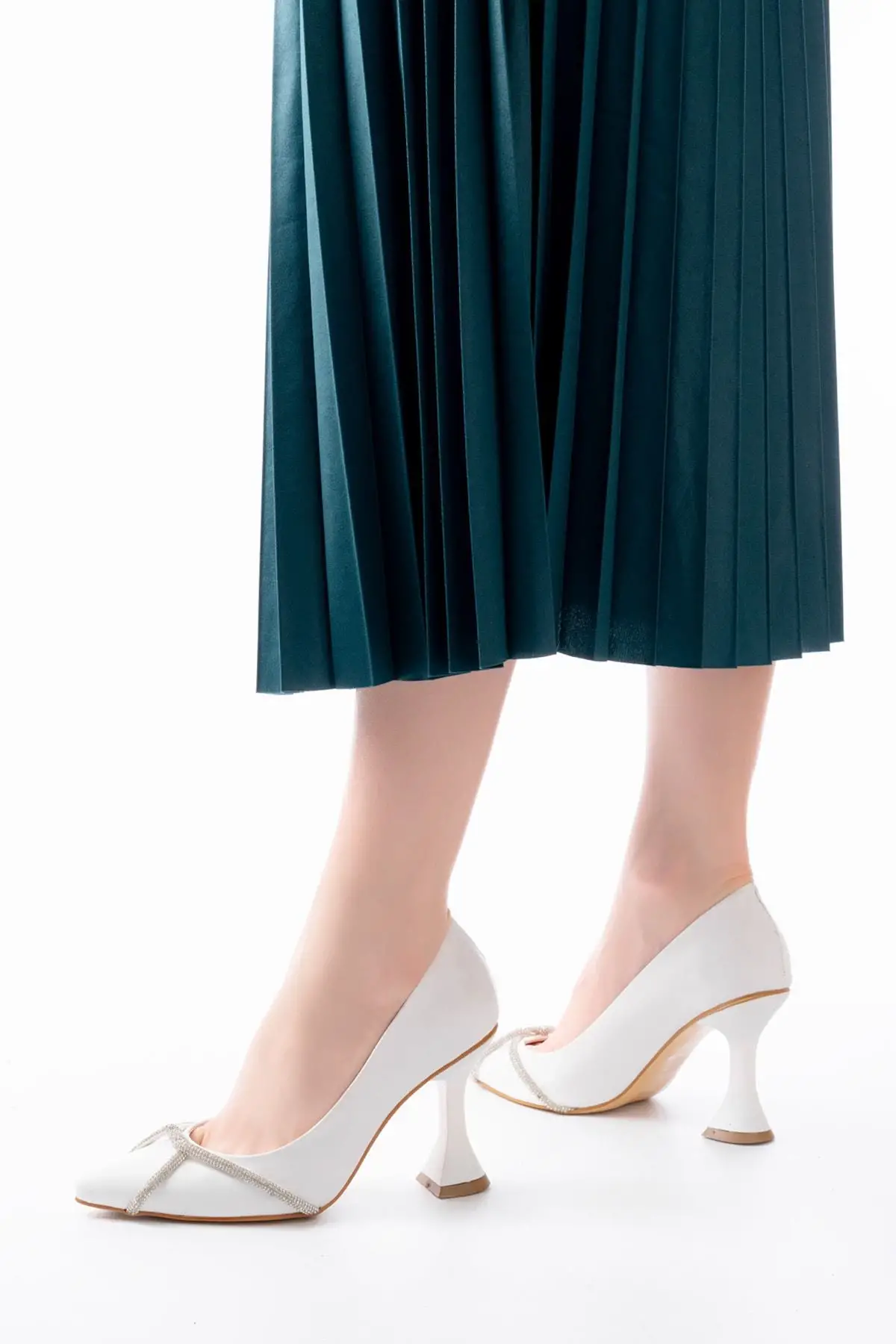 Beyaz Günlük Sarmal Taşlı Topuklu Kadın Ayakkabı