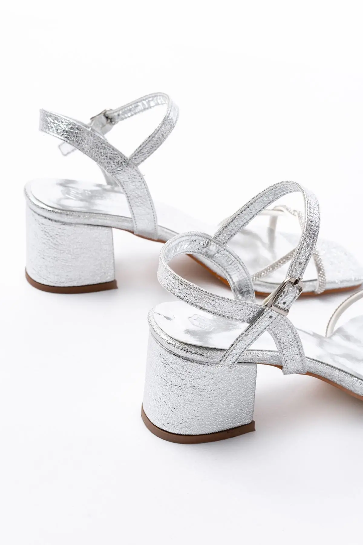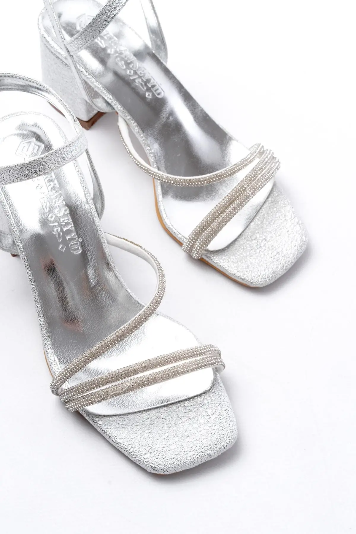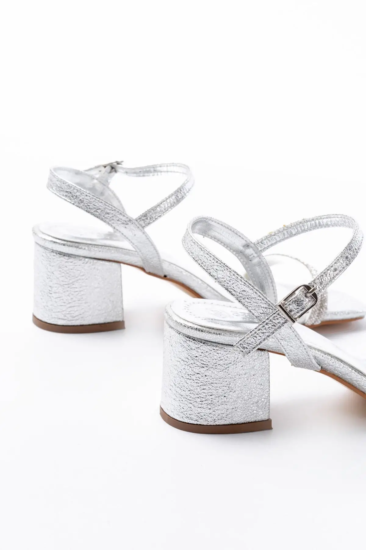 Gümüş 3 Bantlı Topuklu Kadın Ayakkabı