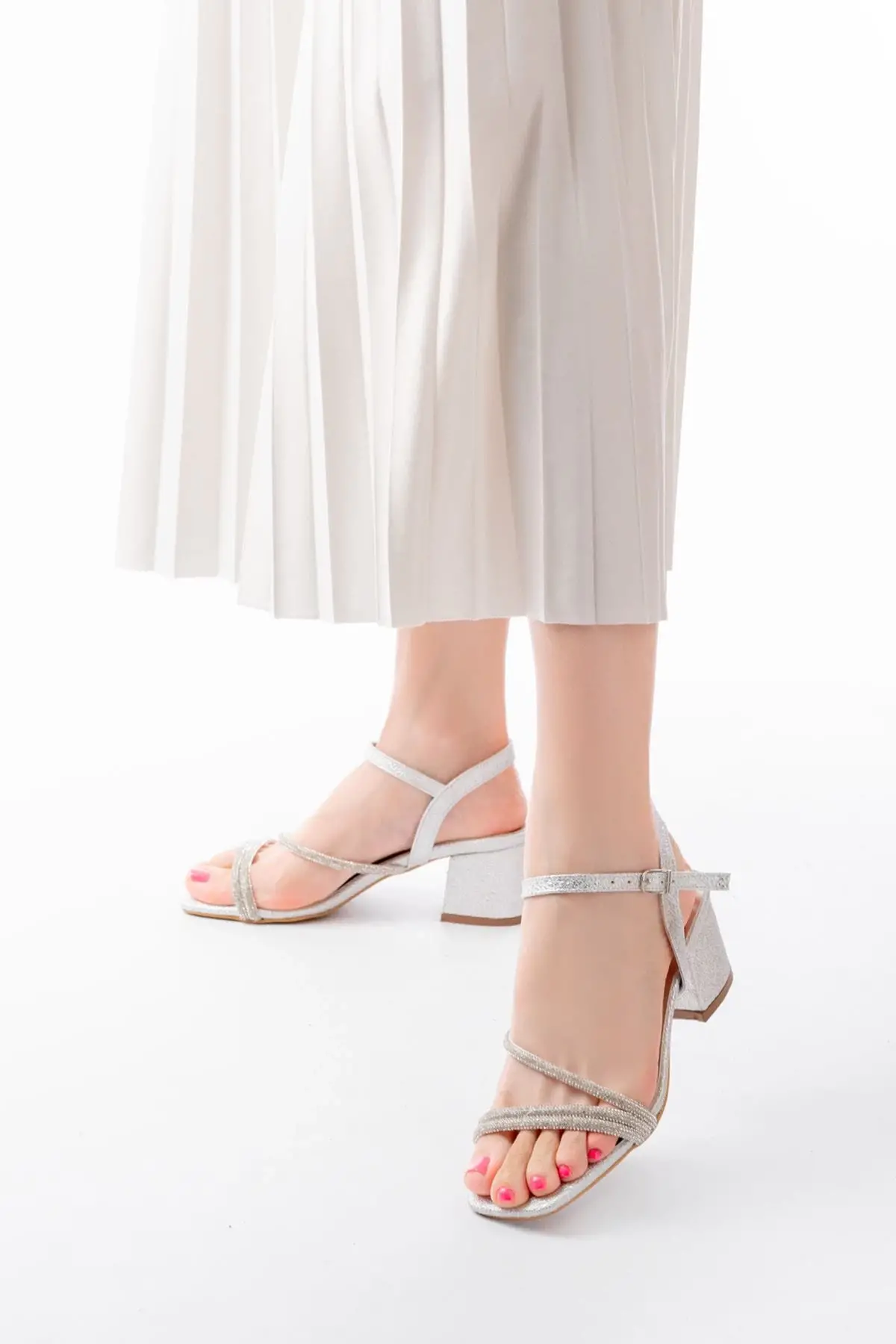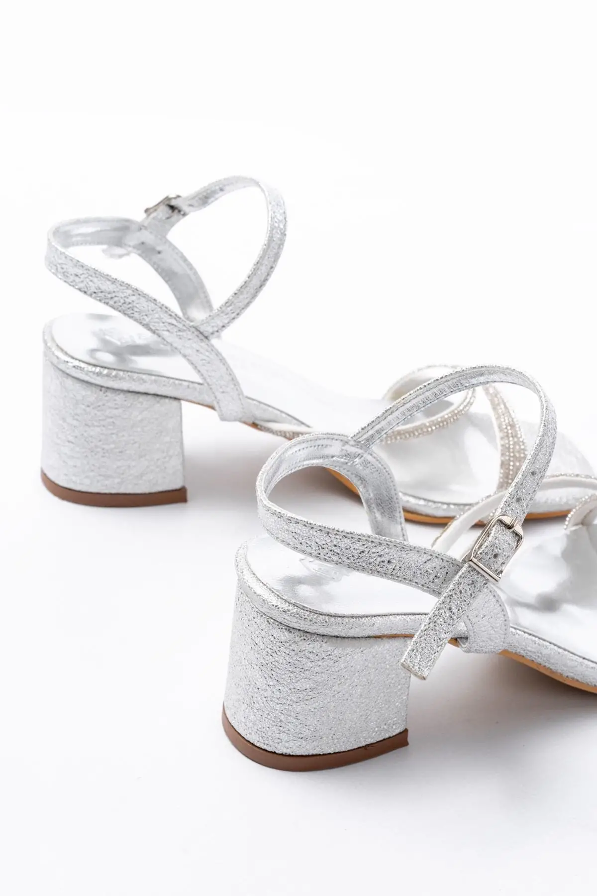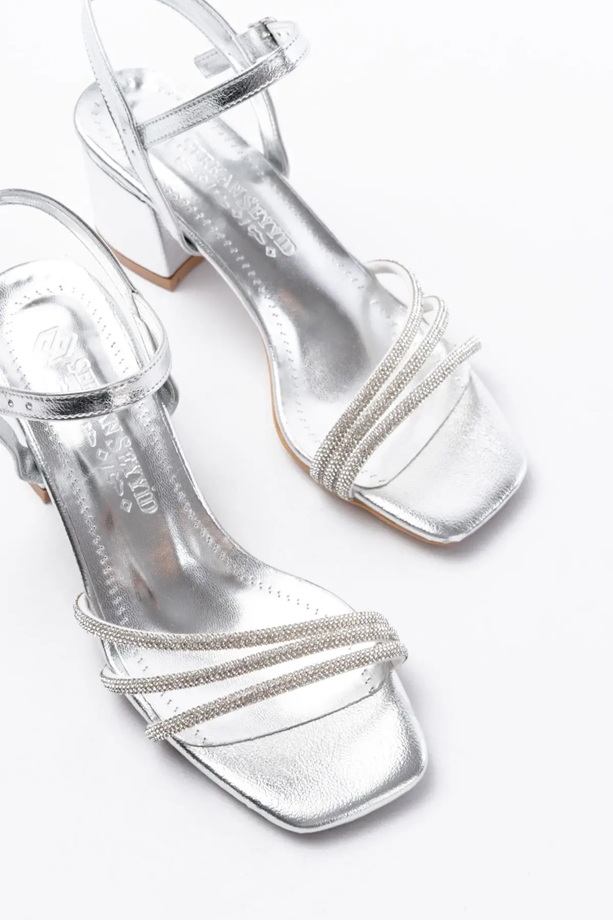 Gümüş 3 Bantlı Topuklu Kadın Ayakkabı