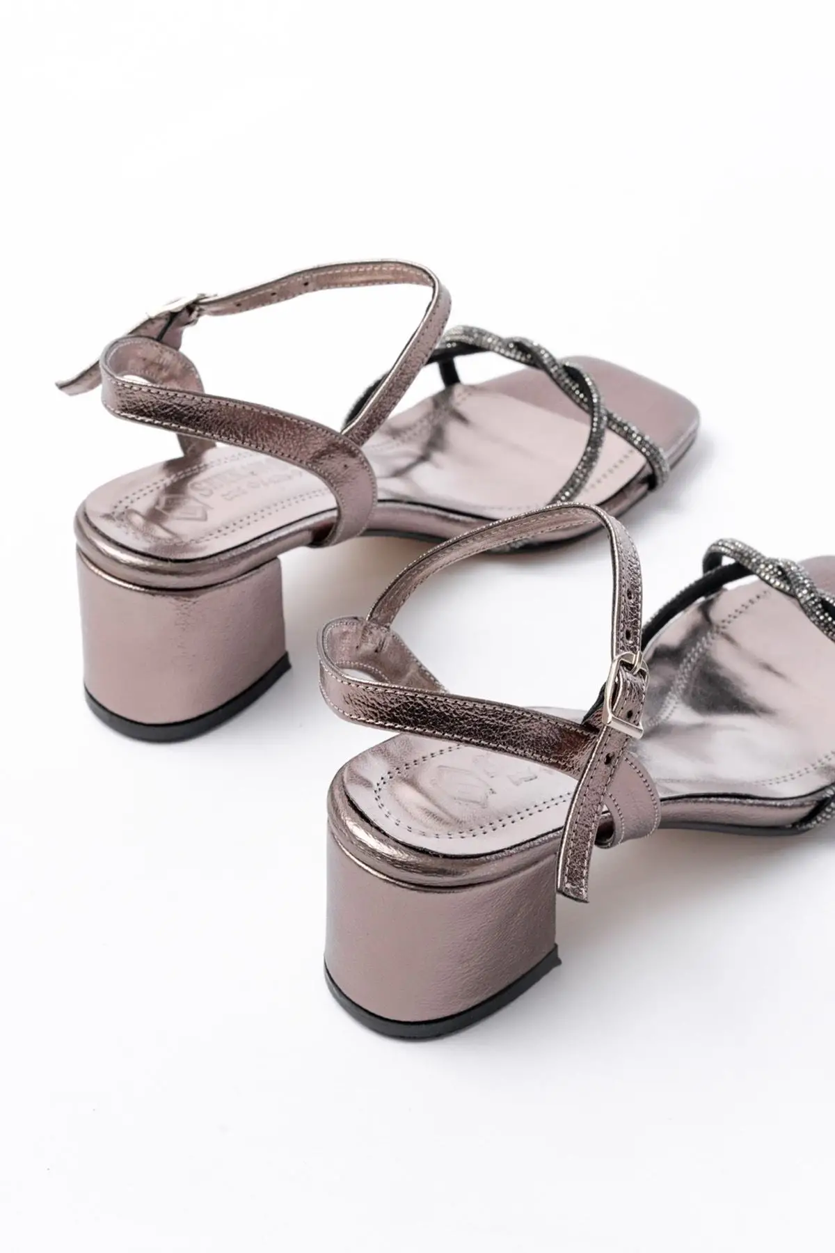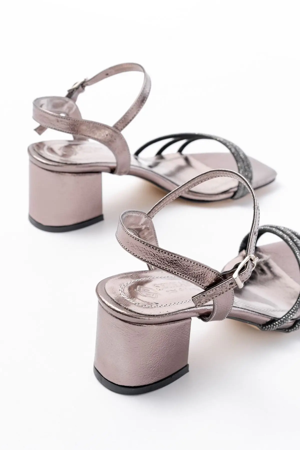 Platin 3 Bantlı Topuklu Kadın Ayakkabı