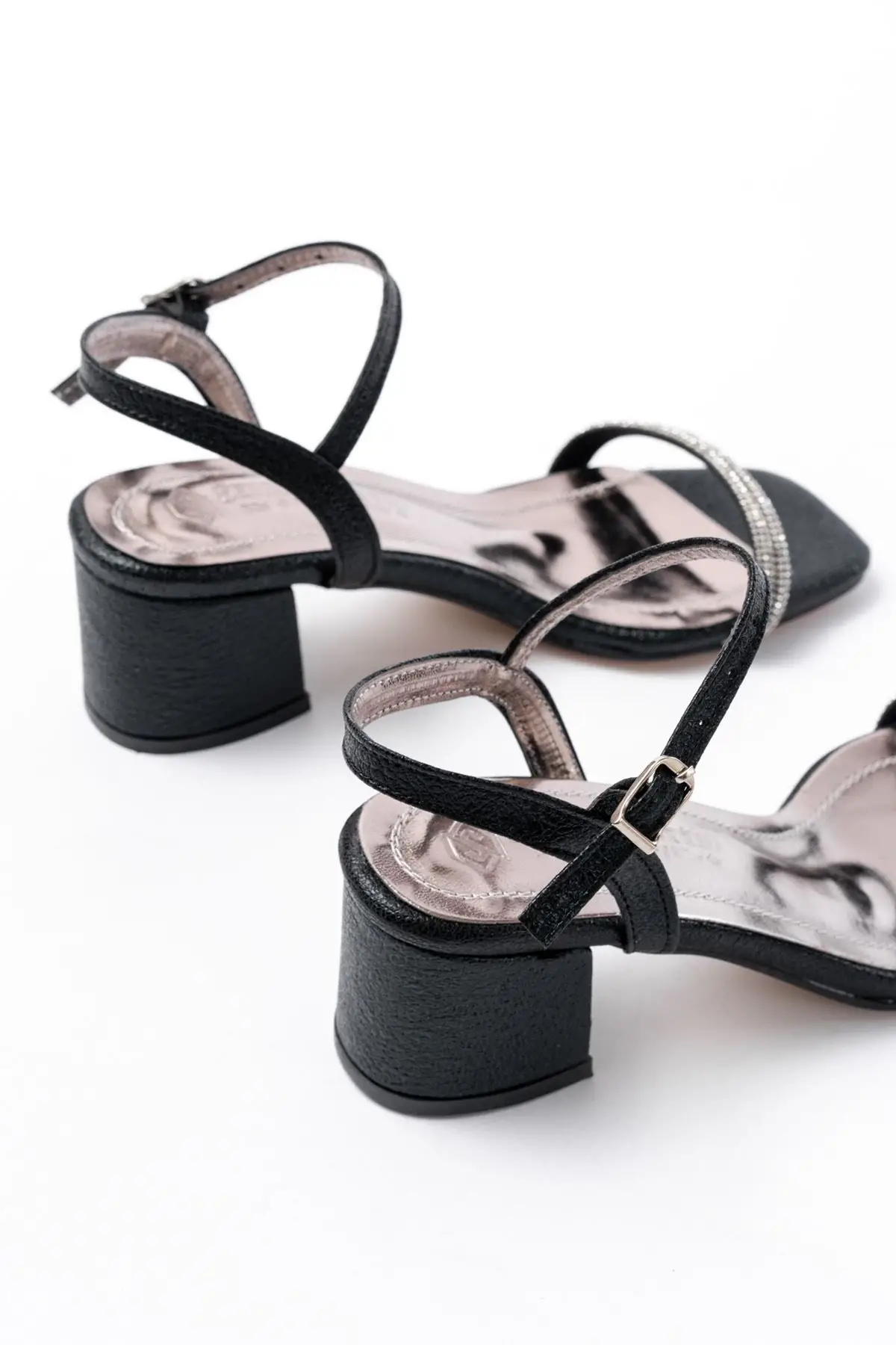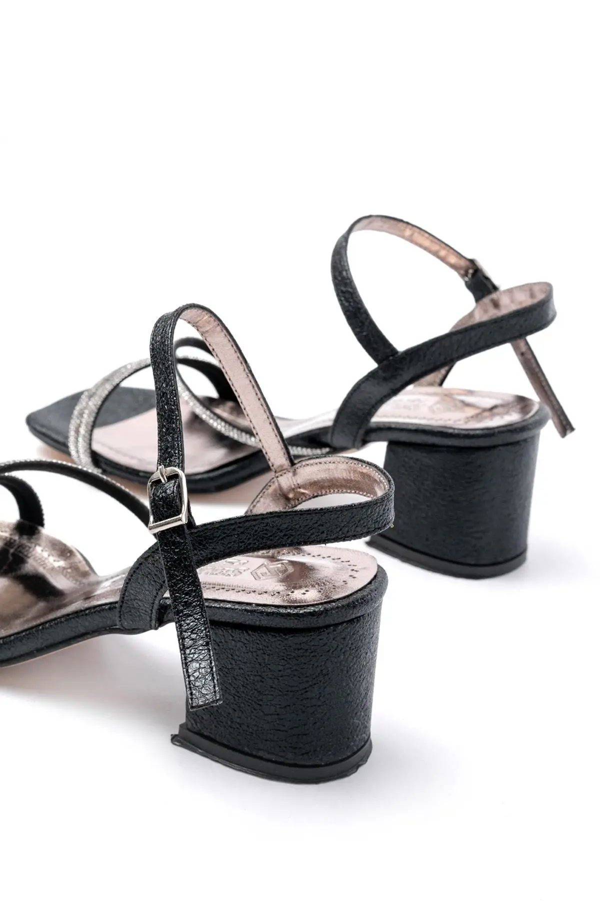 Siyah 3 Bantlı Topuklu Kadın Ayakkabı