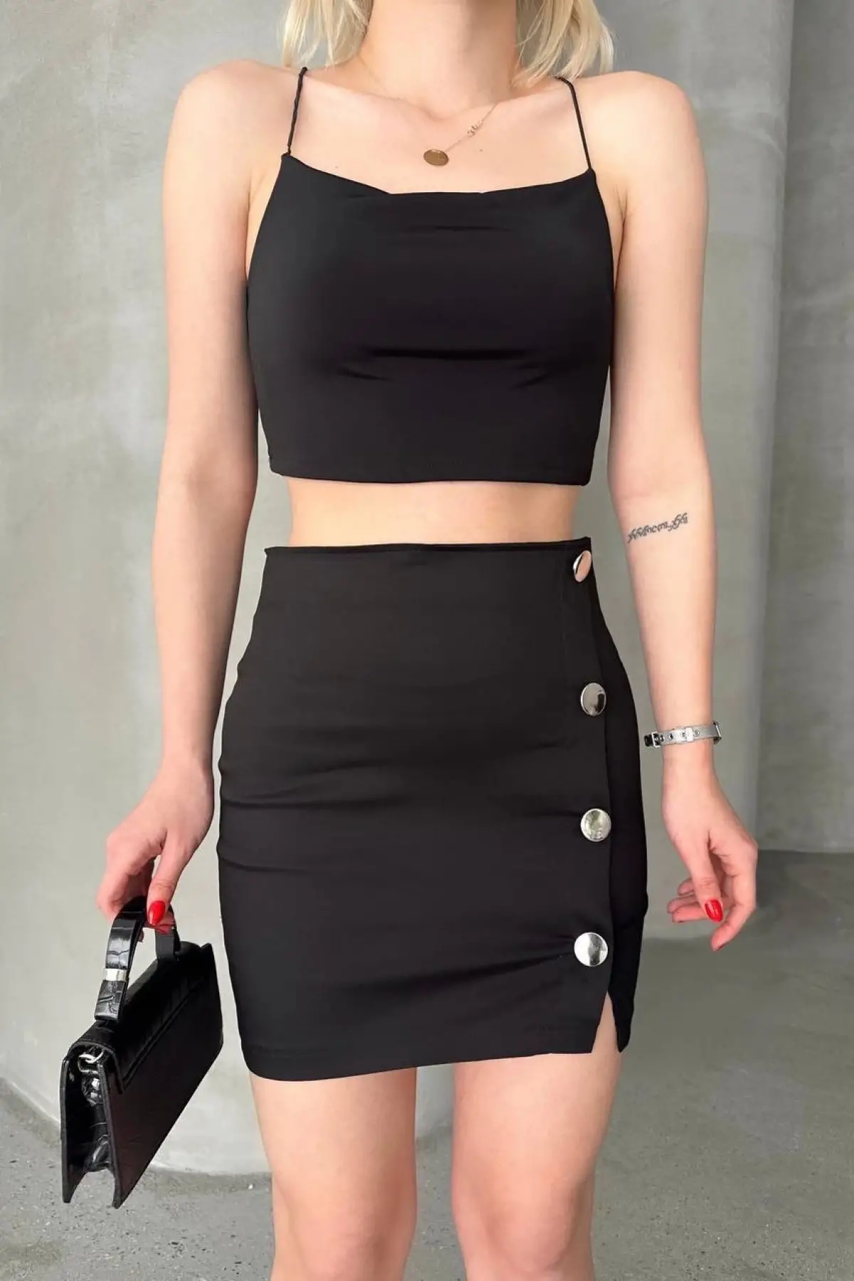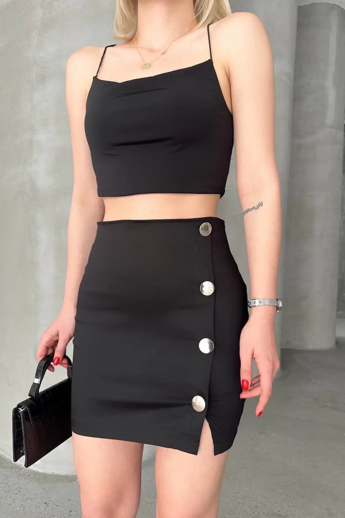 Likralı Gabardin Dört Düğmeli Etek