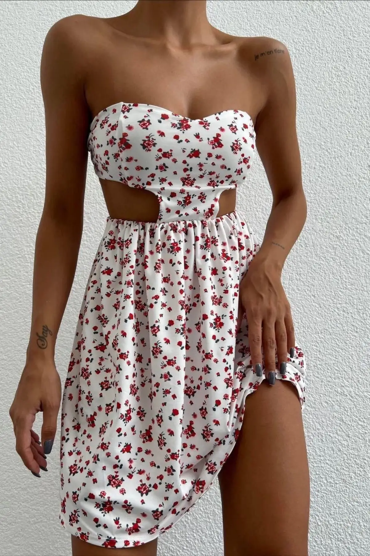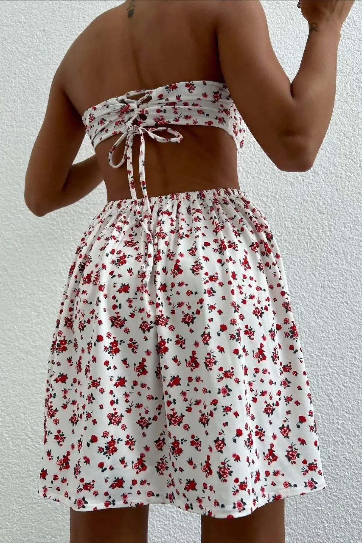 Straplez Elbise Baskılı