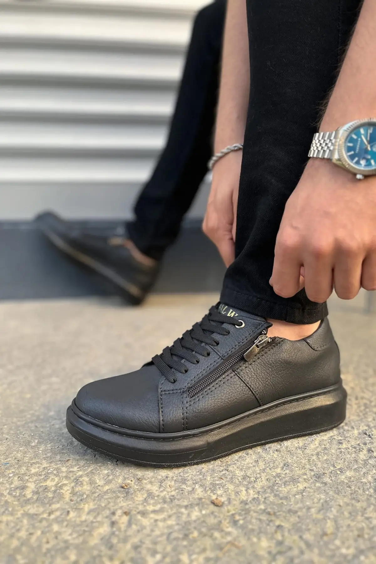 Tb155 Warrior Bağcıklı Ve Fermuarlı Cilt Erkek Günlük Sneaker Ayakkabı Cbt - Siyah
