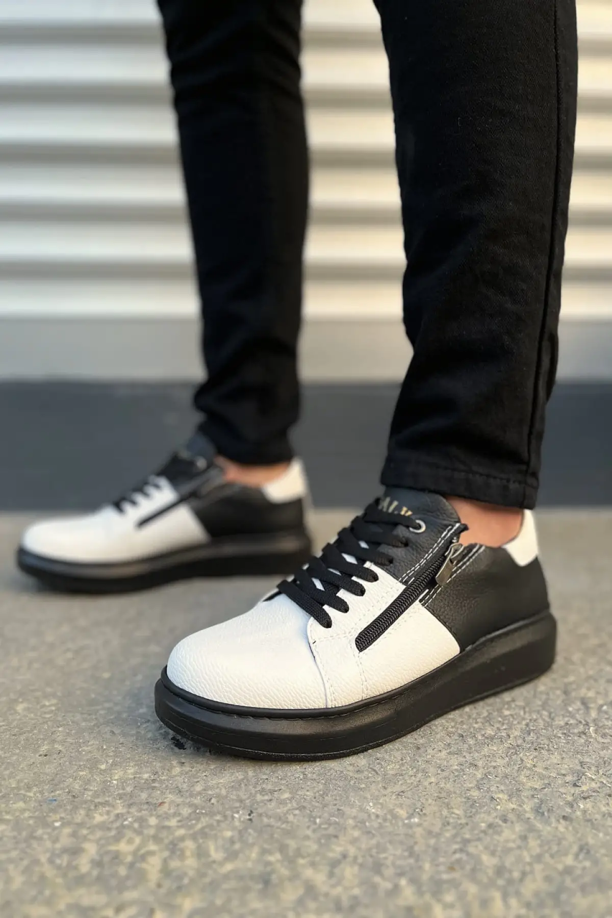 Tb155 Warrior Bağcıklı Ve Fermuarlı Cilt Erkek Günlük Sneaker Ayakkabı Cst - Siyah/beyaz