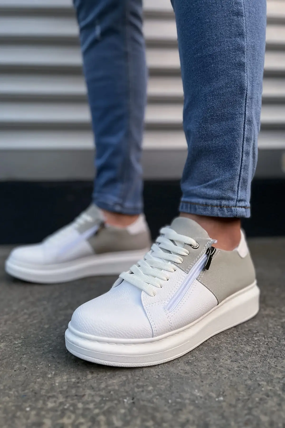 Tb155 Warrior Bağcıklı Ve Fermuarlı Cilt Süet Erkek Günlük Sneaker Ayakkabı Csbt - Beyaz/gri