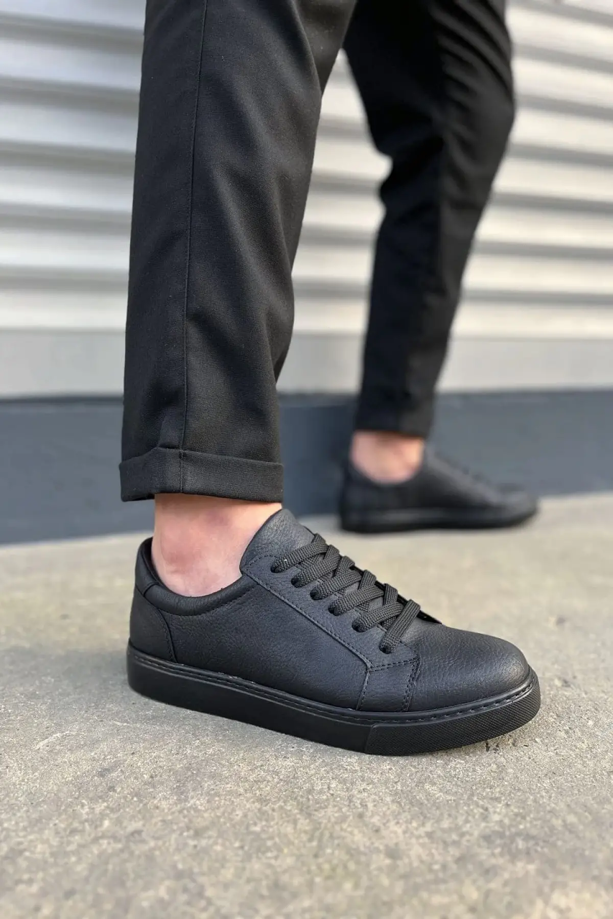Tb165 Elite Bağcıklı Cilt Erkek Günlük Sneaker Ayakkabı Cbt - Siyah
