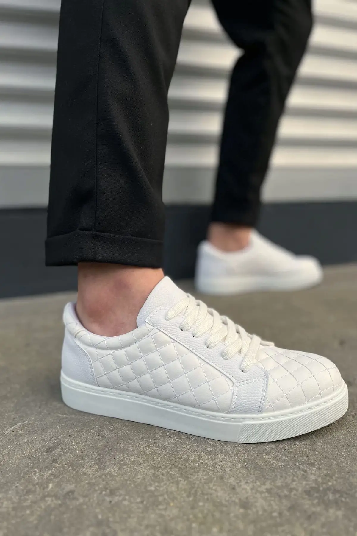 Tb166 Prestige Bağcıklı Cilt Kapitone Desenli Erkek Günlük Sneaker Ayakkabı Cbt - Beyaz