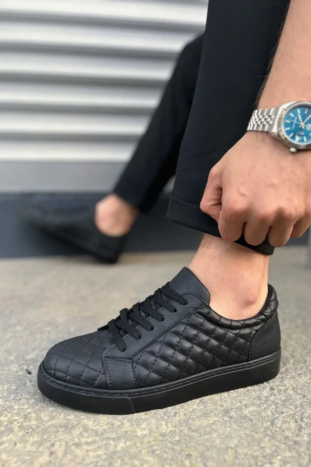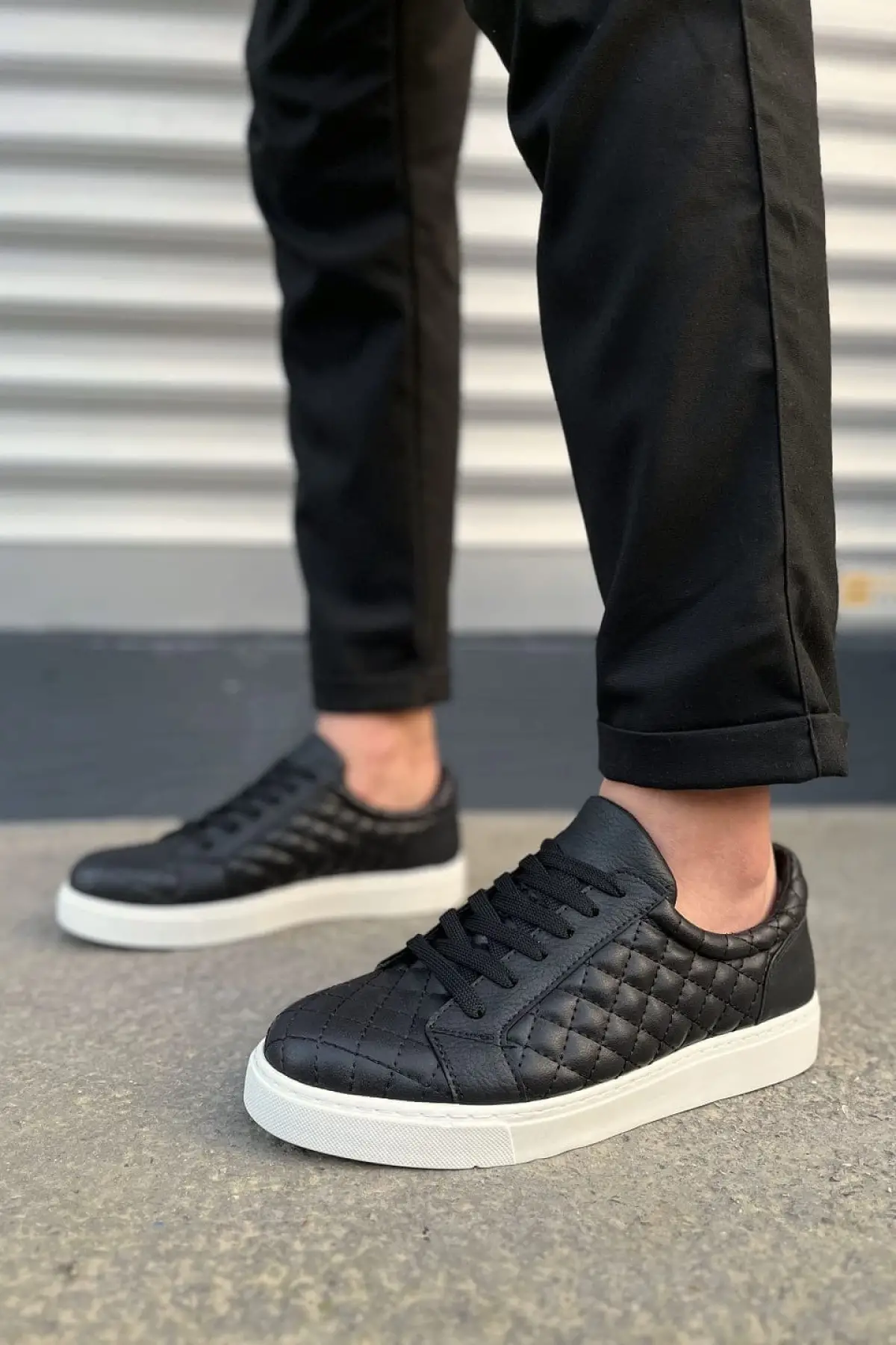 Tb166 Prestige Bağcıklı Cilt Kapitone Desenli Erkek Günlük Sneaker Ayakkabı Cst - Siyah