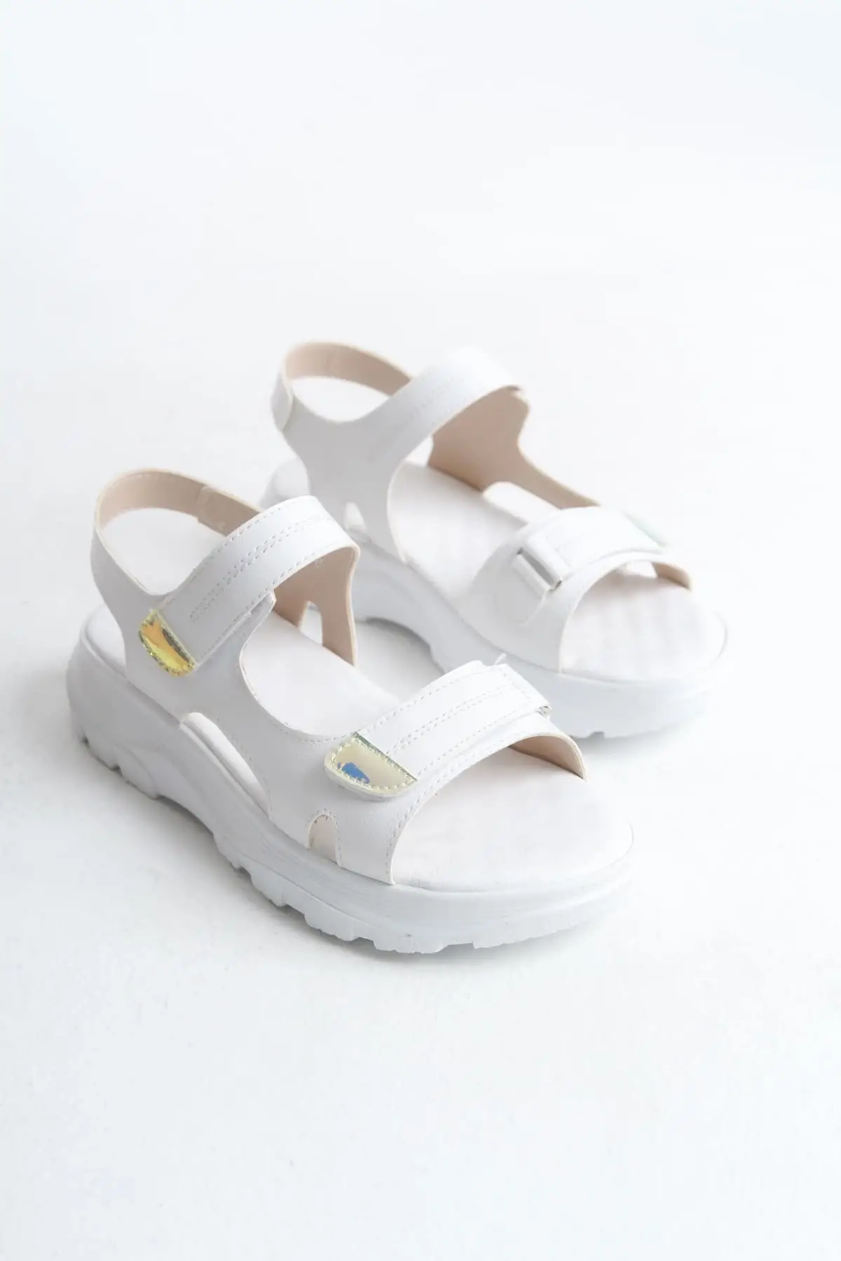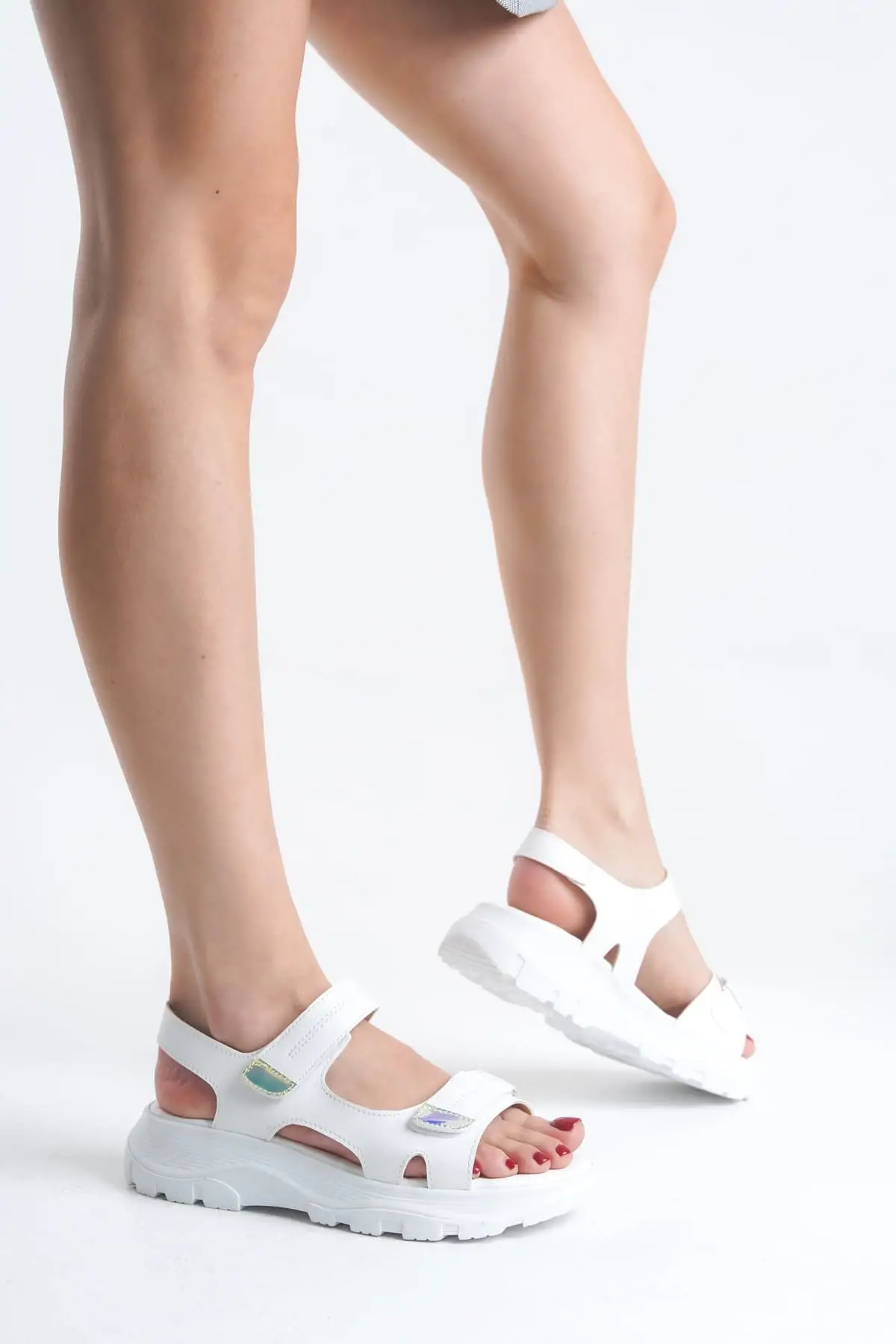 Lamıa Cırt Cırtlı Ortopedik Taban Kadın Sandalet Cbt - Beyaz