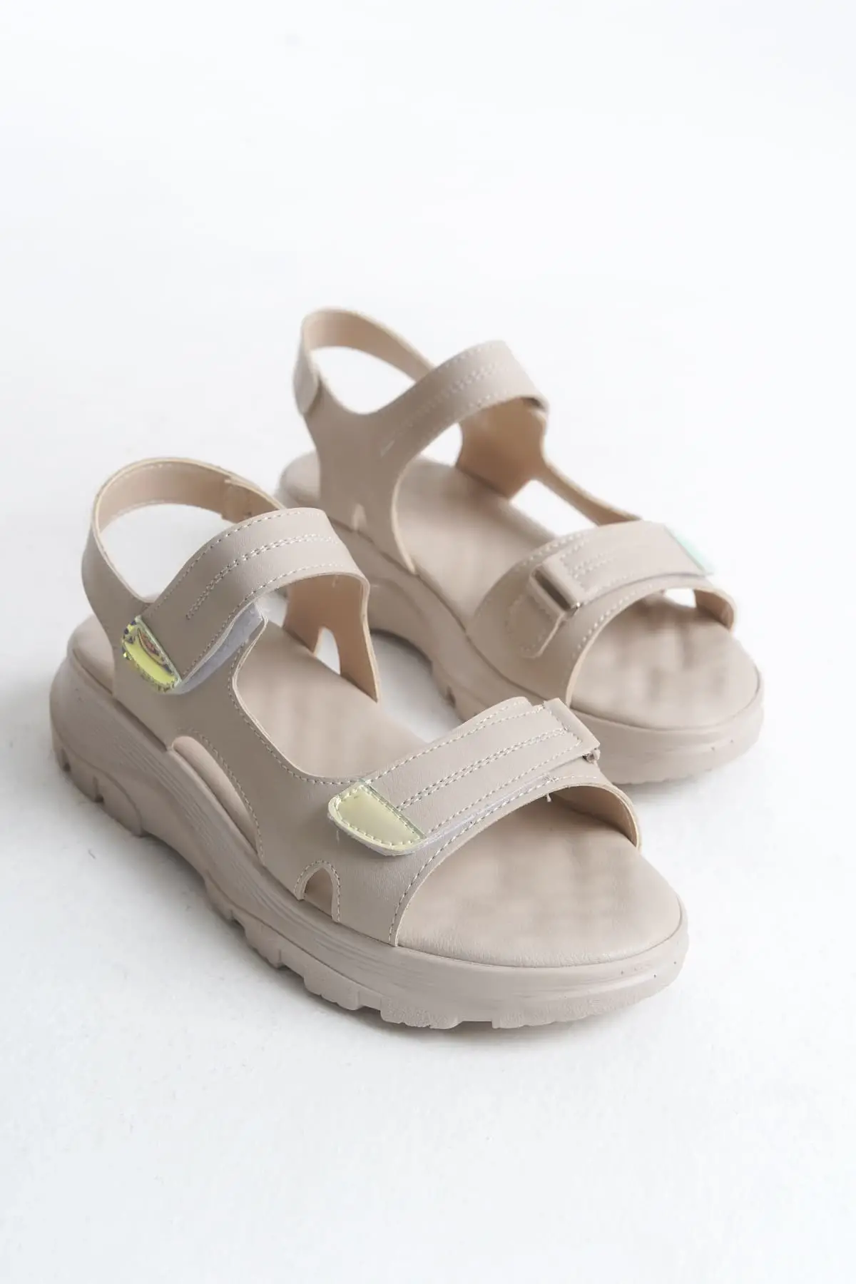 Lamıa Cırt Cırtlı Ortopedik Taban Kadın Sandalet Ckt - Krem