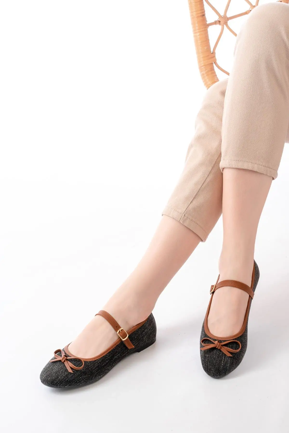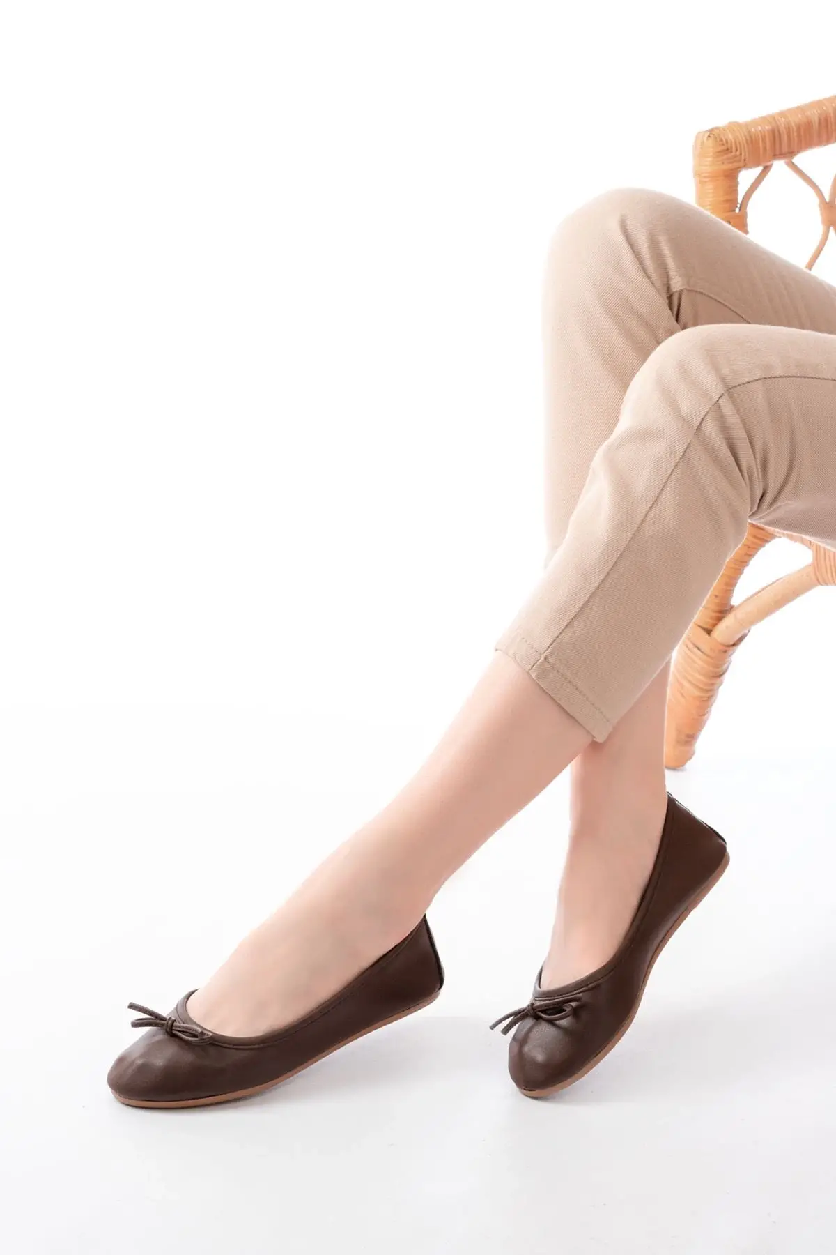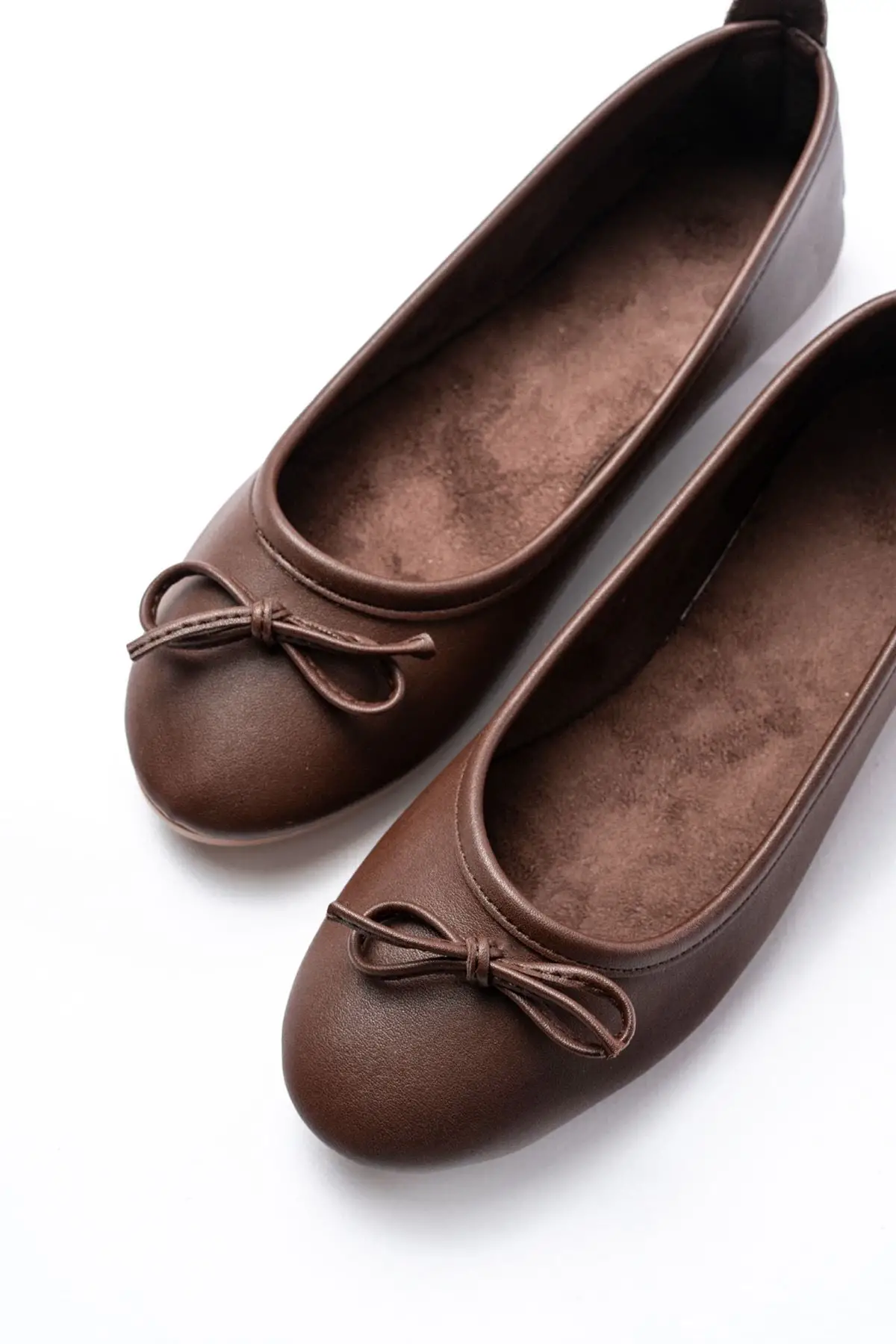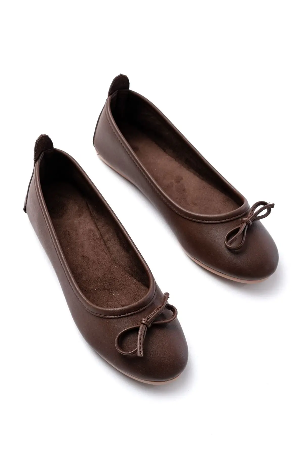 6101 Kahve Günlük Fiyonklu Kadın Babet