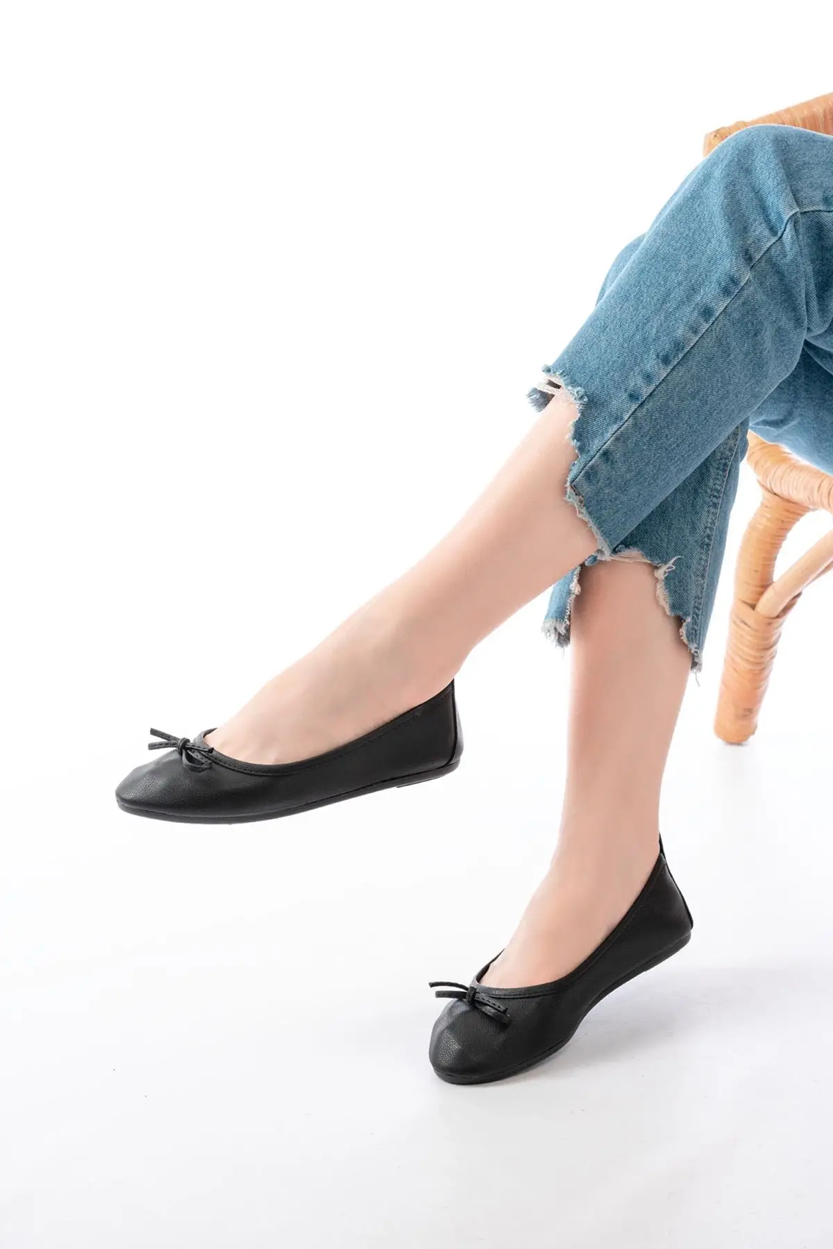 6101 Siyah Günlük Fiyonklu Kadın Babet