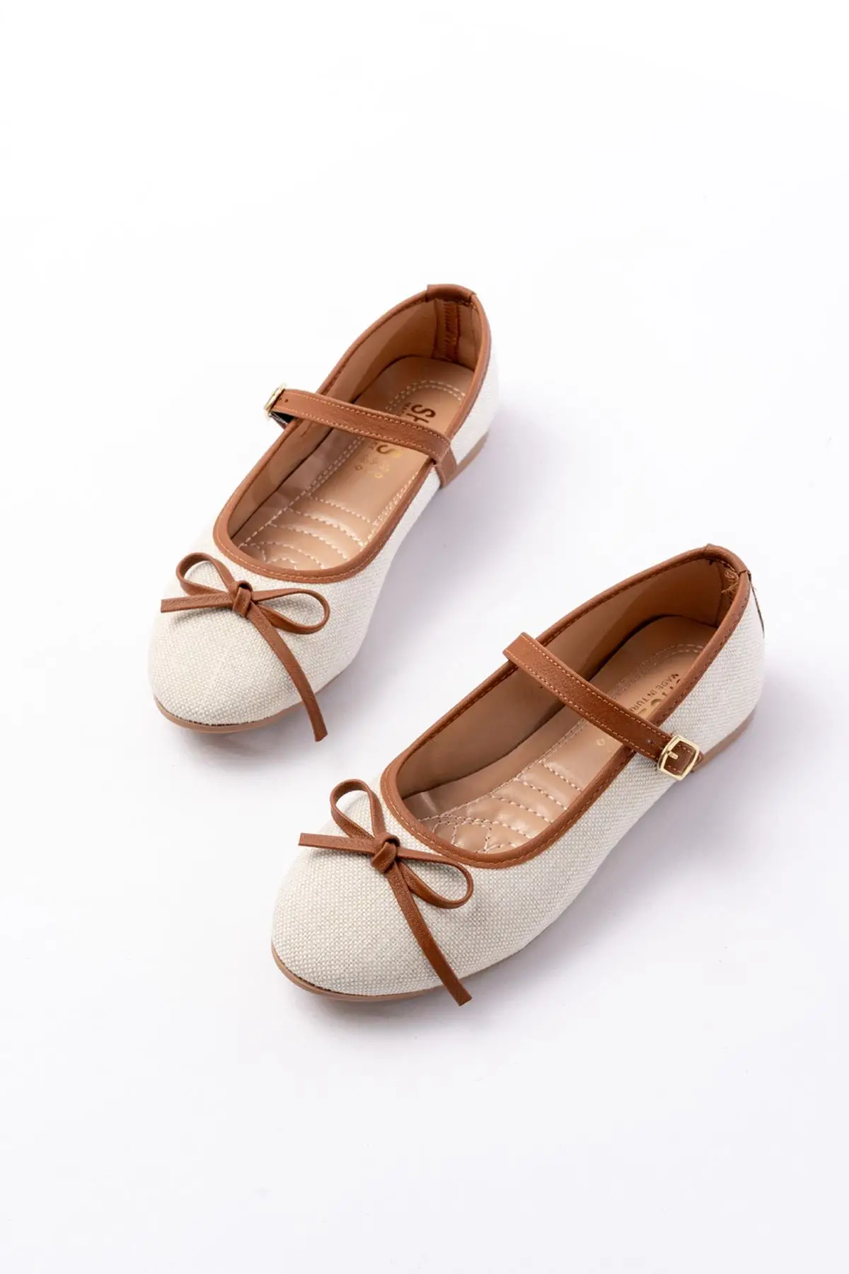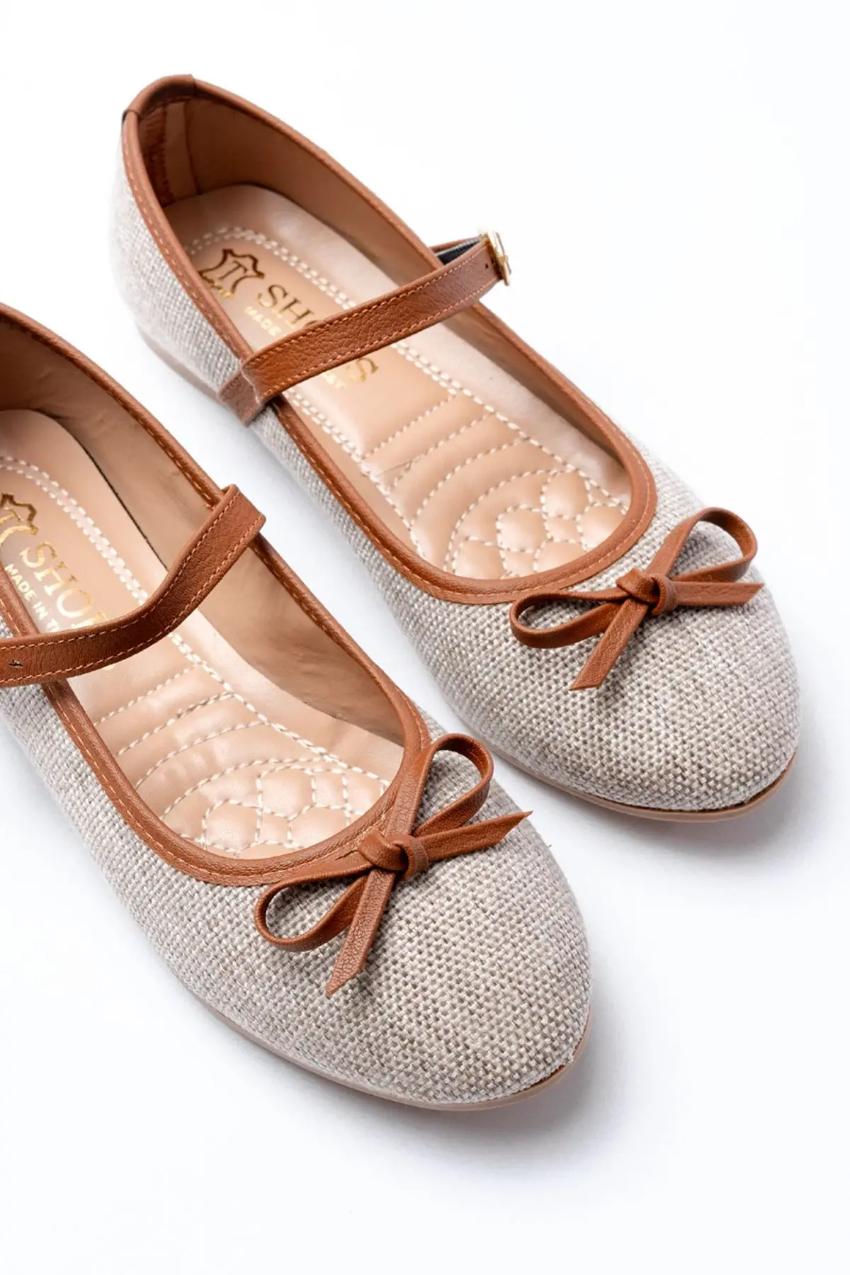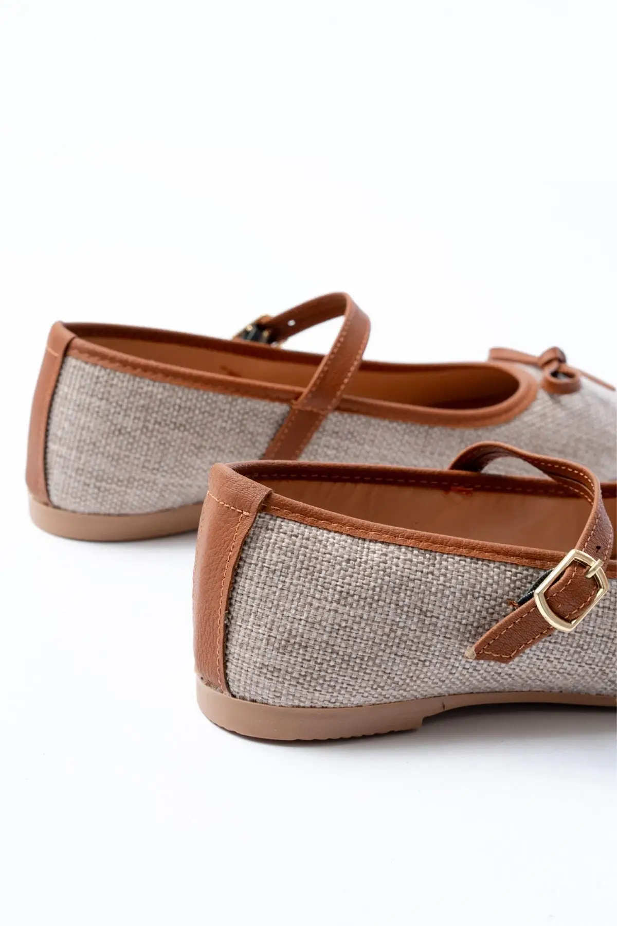6321 Bej Keten Günlük Baret Tokalı Bayan Babet