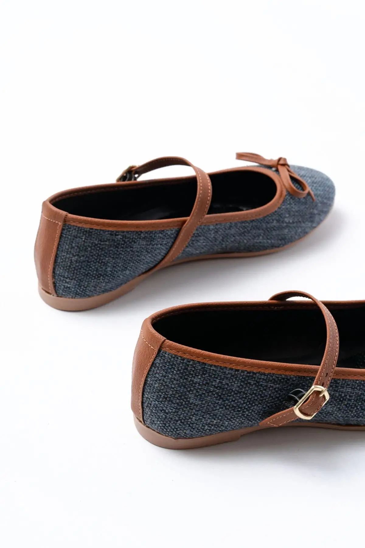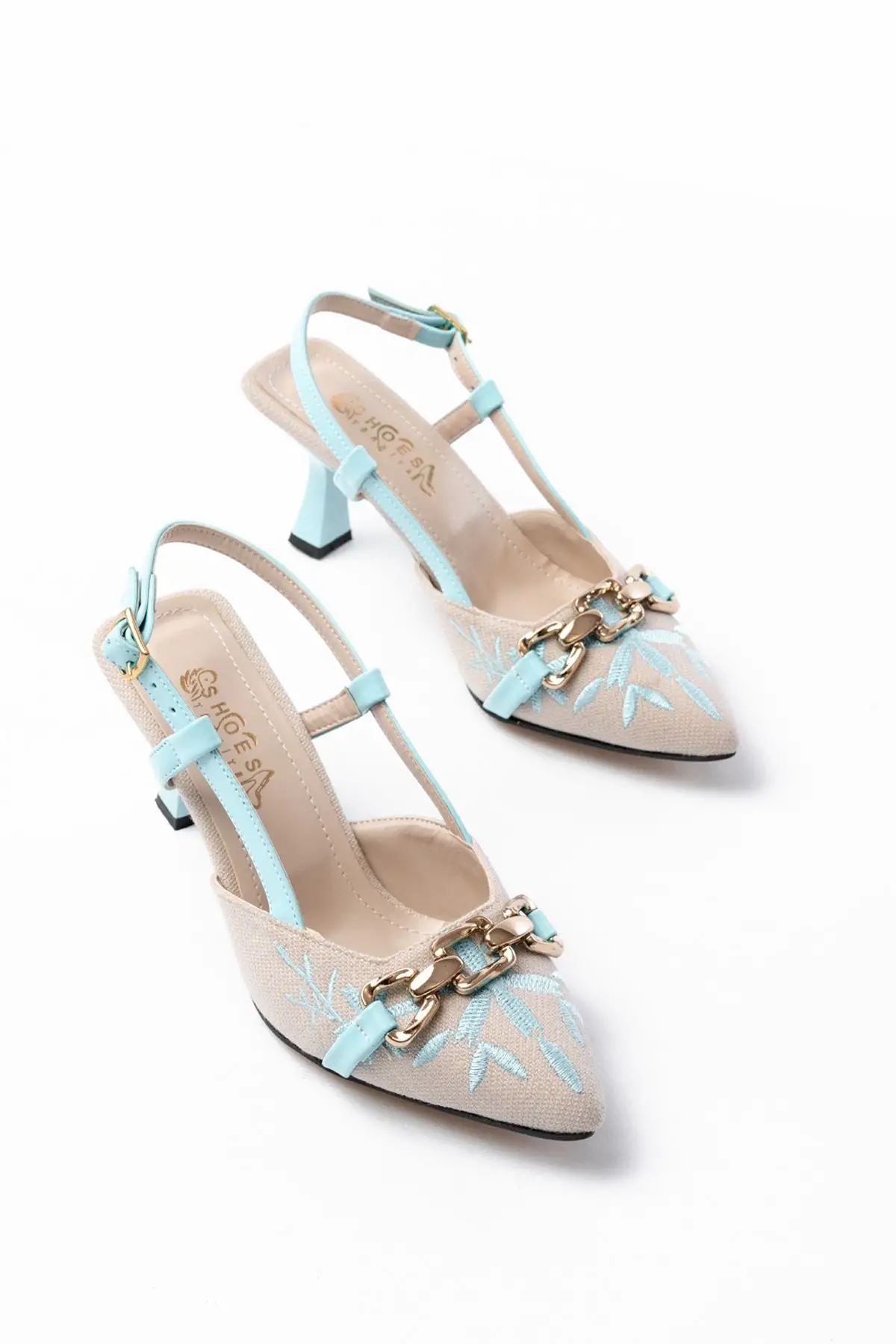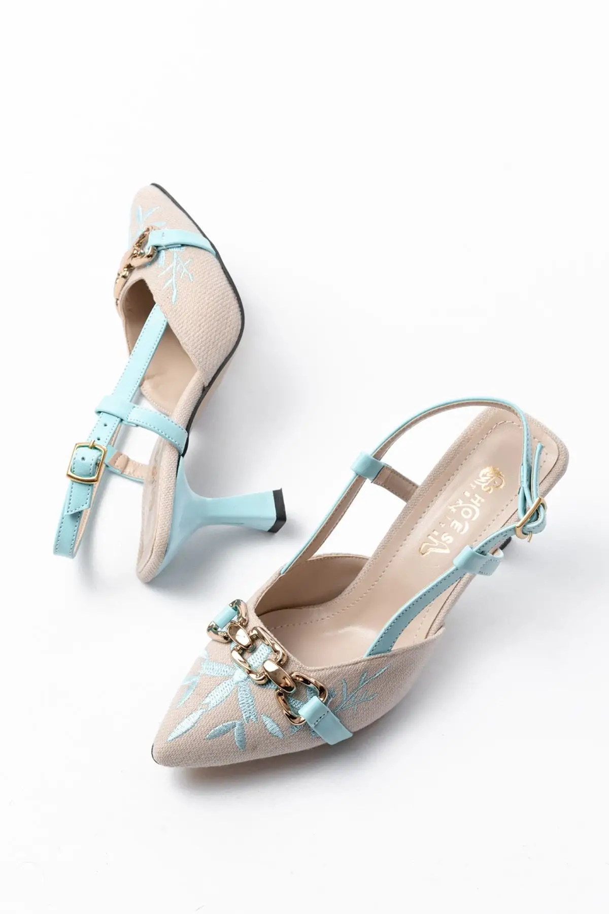 K-250 Mavi Keten Günlük Arkası Açık Tokalı Topuklu Kadın Ayakkabı