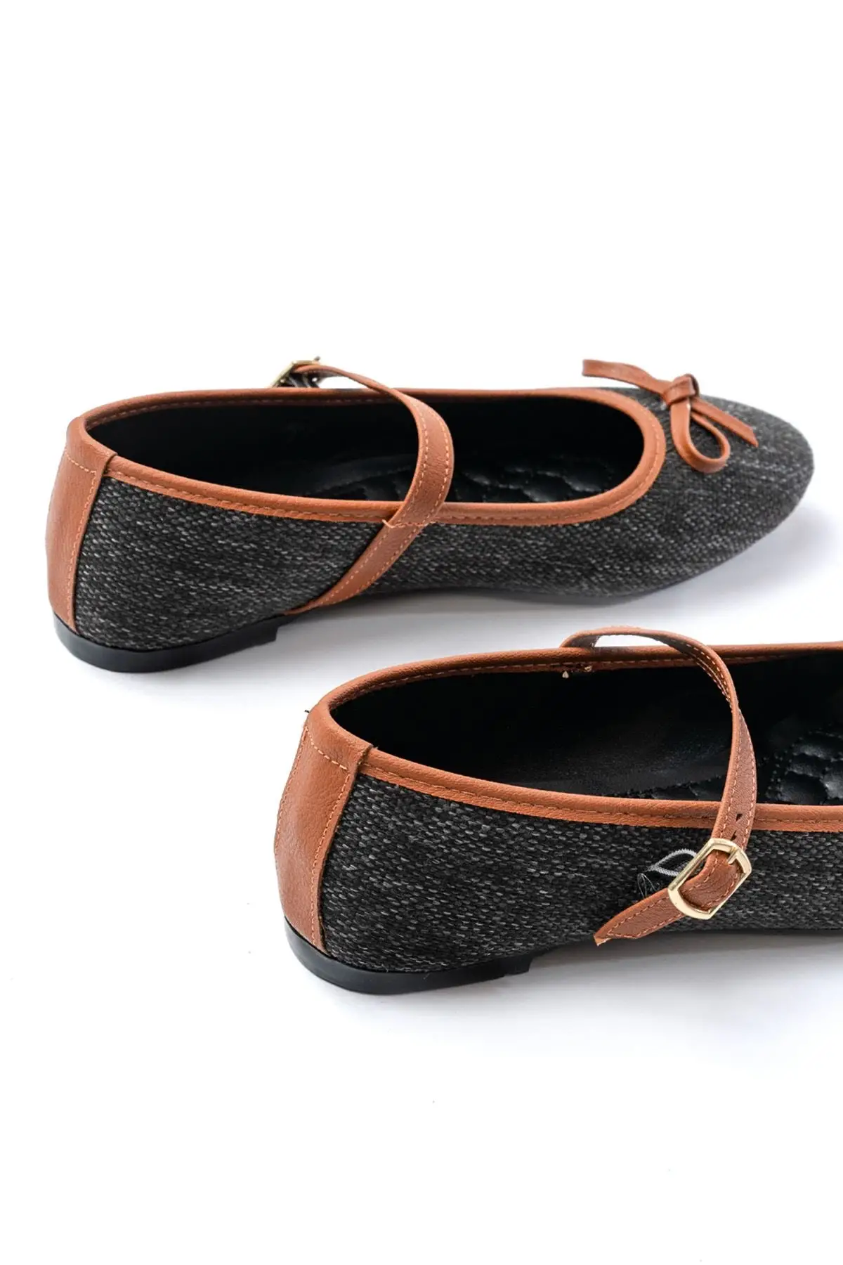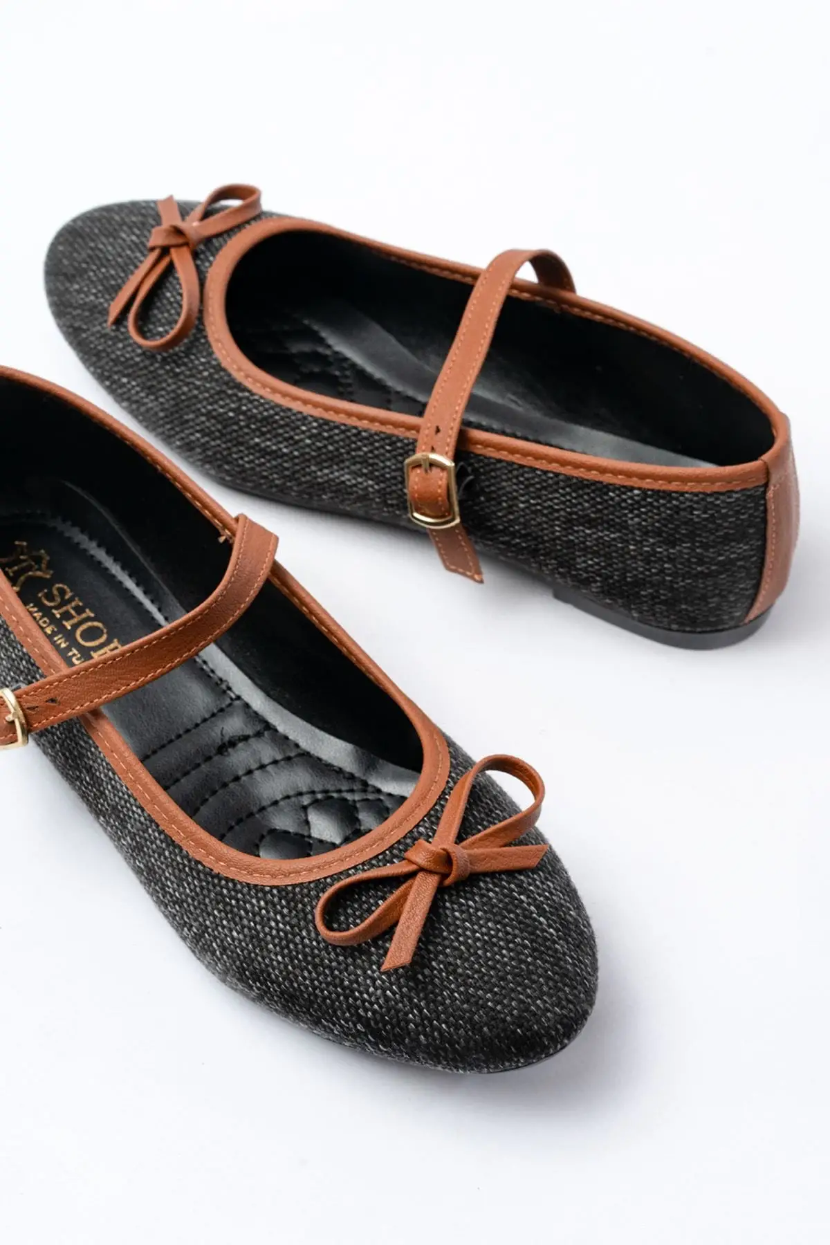 6321 Siyah Keten Günlük Baret Tokalı Bayan Babet