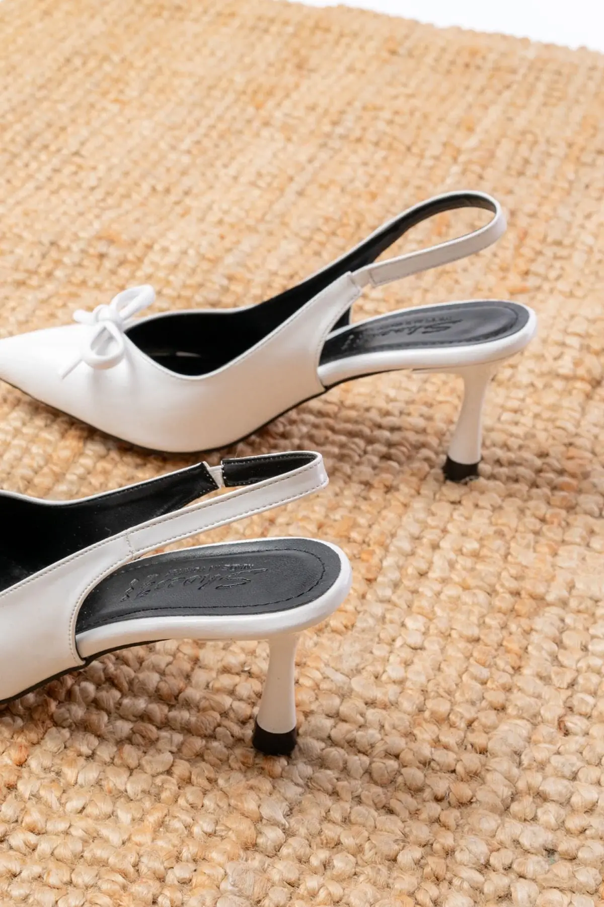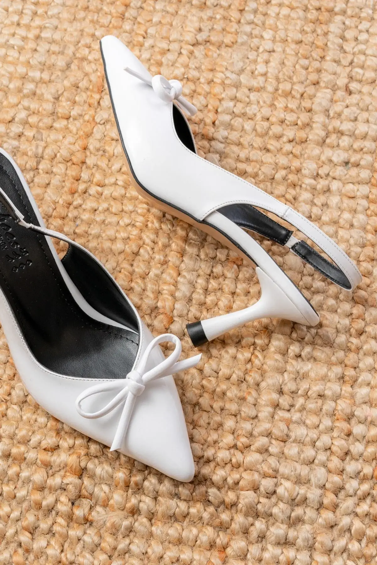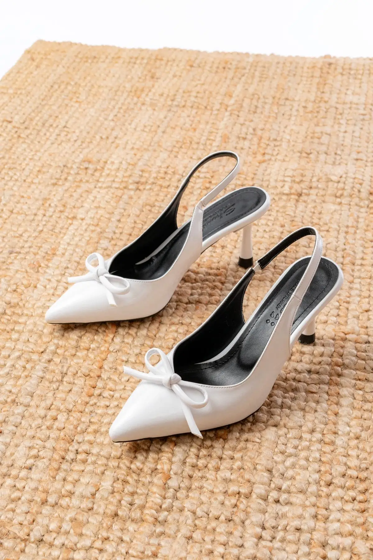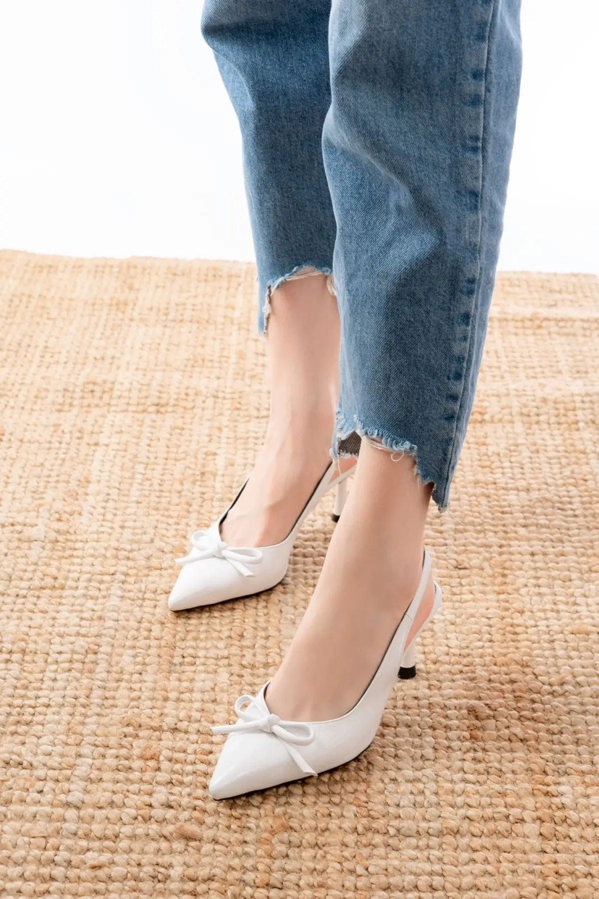 İNF-4500 Beyaz Rugan Günlük Arkası Açık Fiyonklu Topuklu Bayan Ayakkabı
