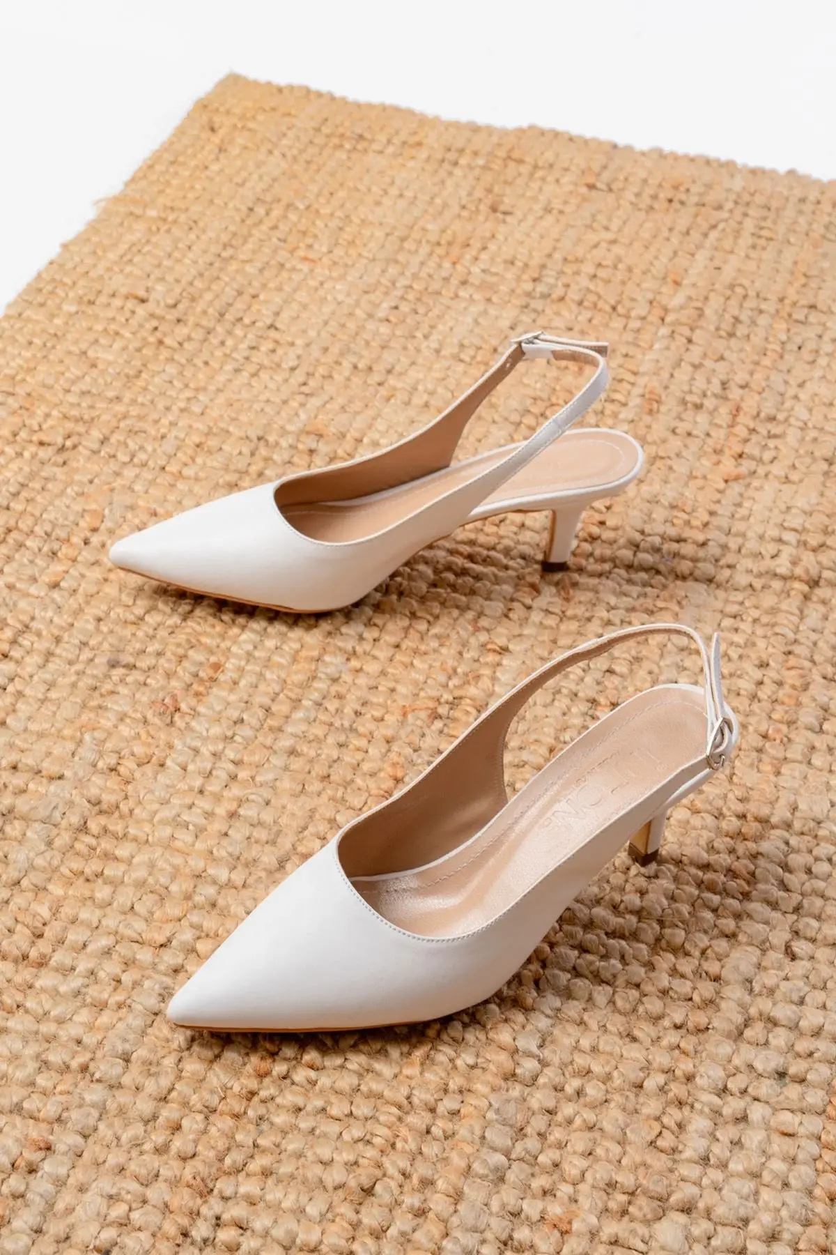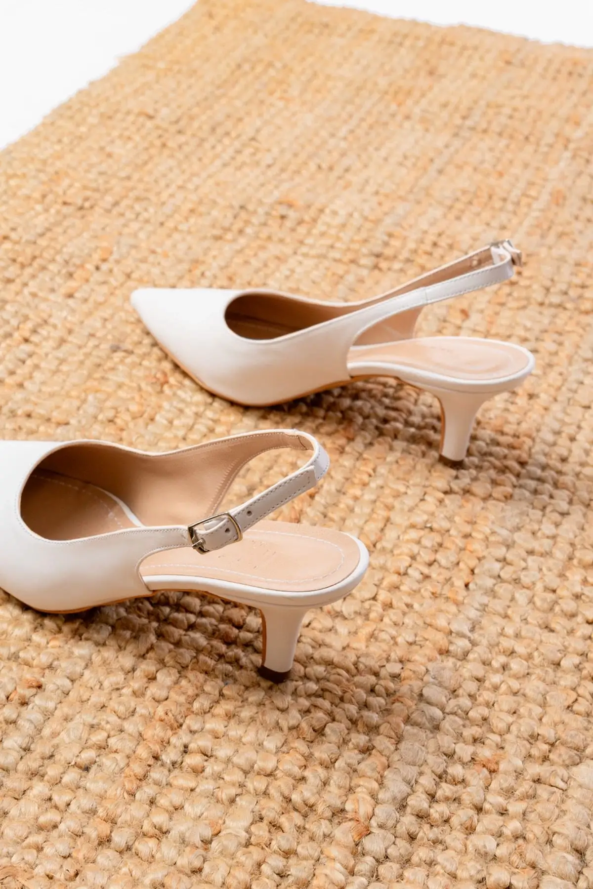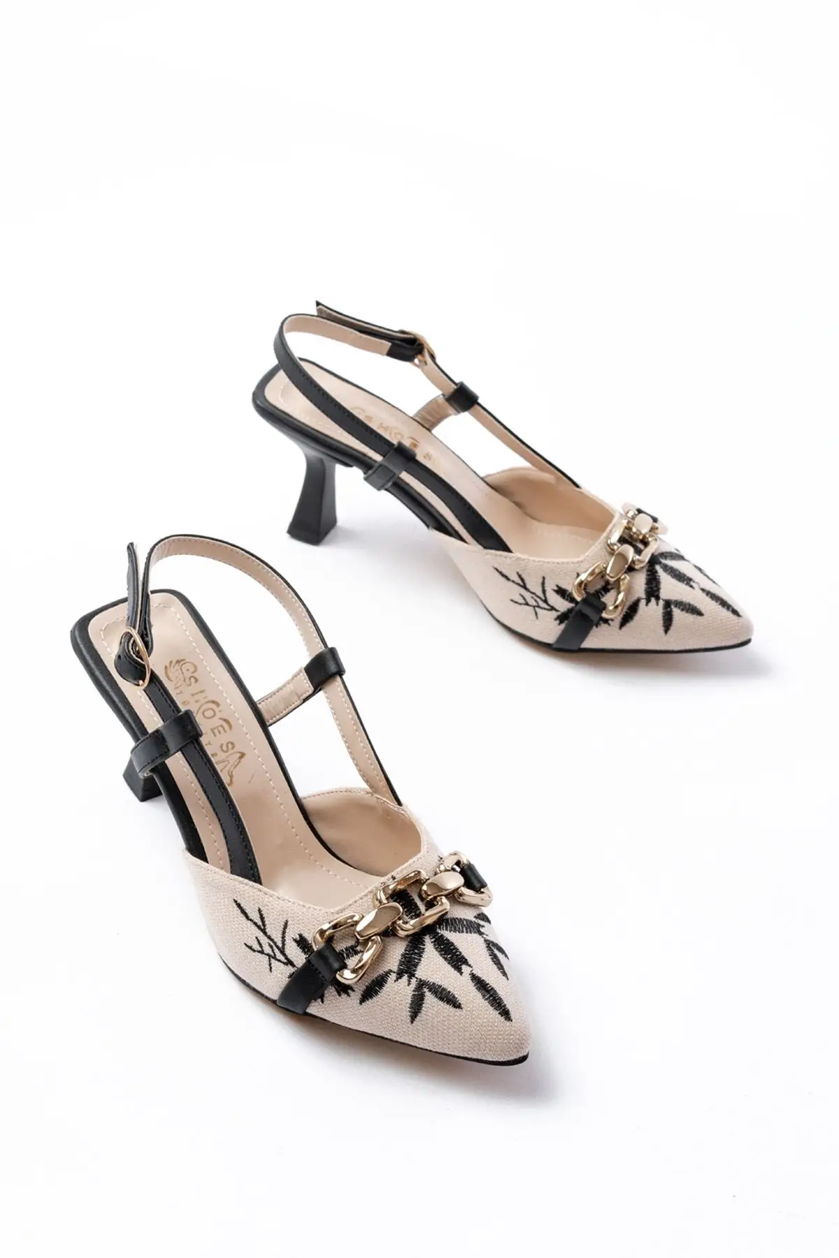 K-250 Pudra Keten Günlük Arkası Açık Tokalı Topuklu Kadın Ayakkabı