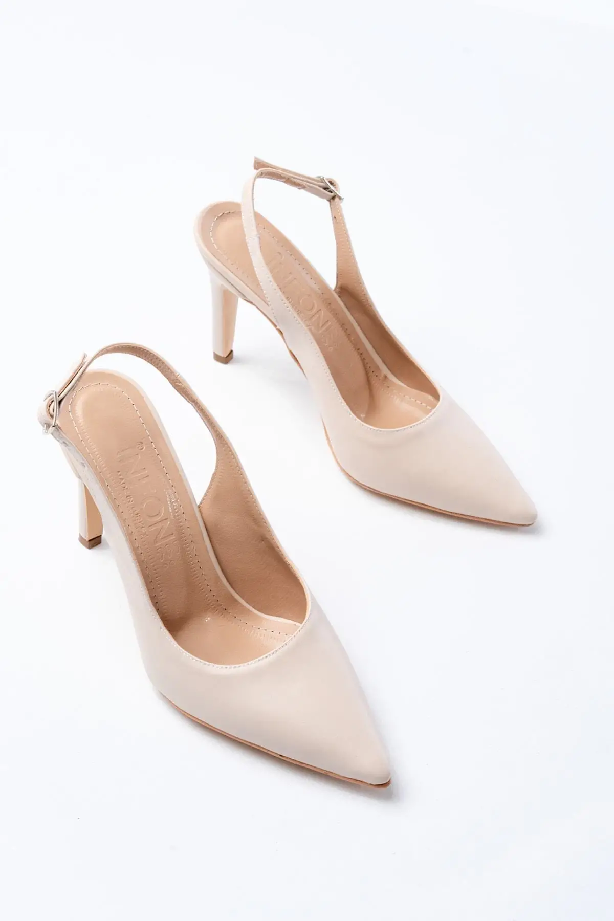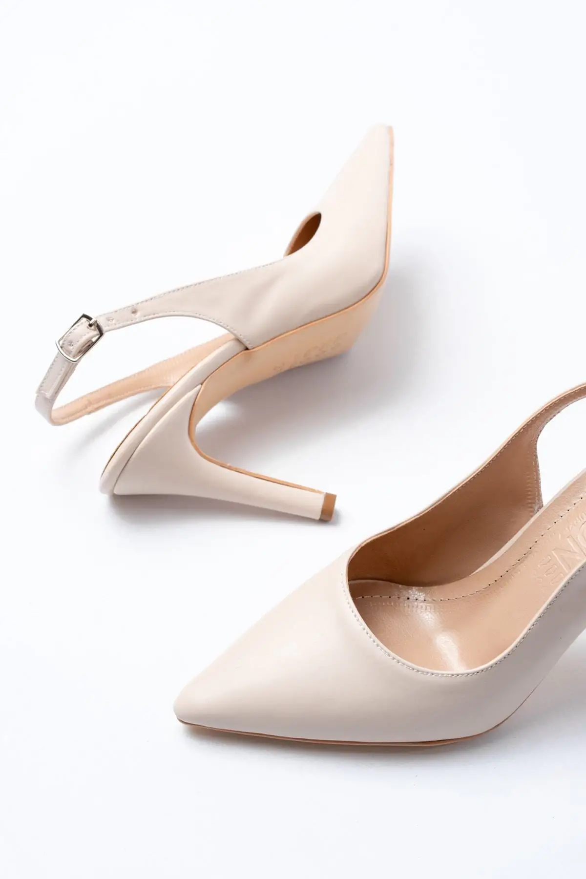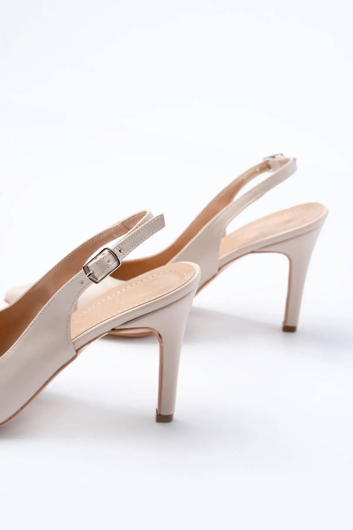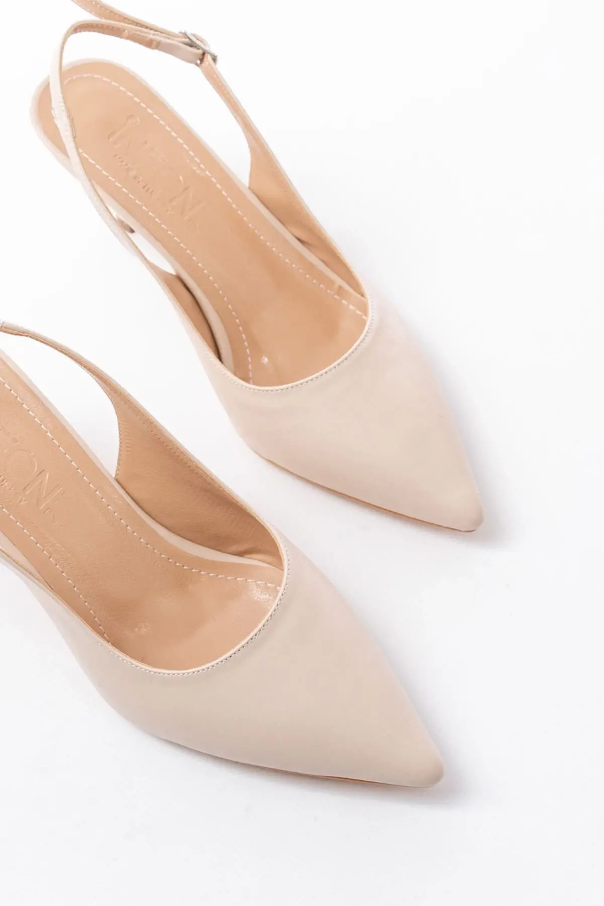 ST-1153 Bej Günlük Arkası Açık 9 cm Topuklu Kadın Ayakkabı