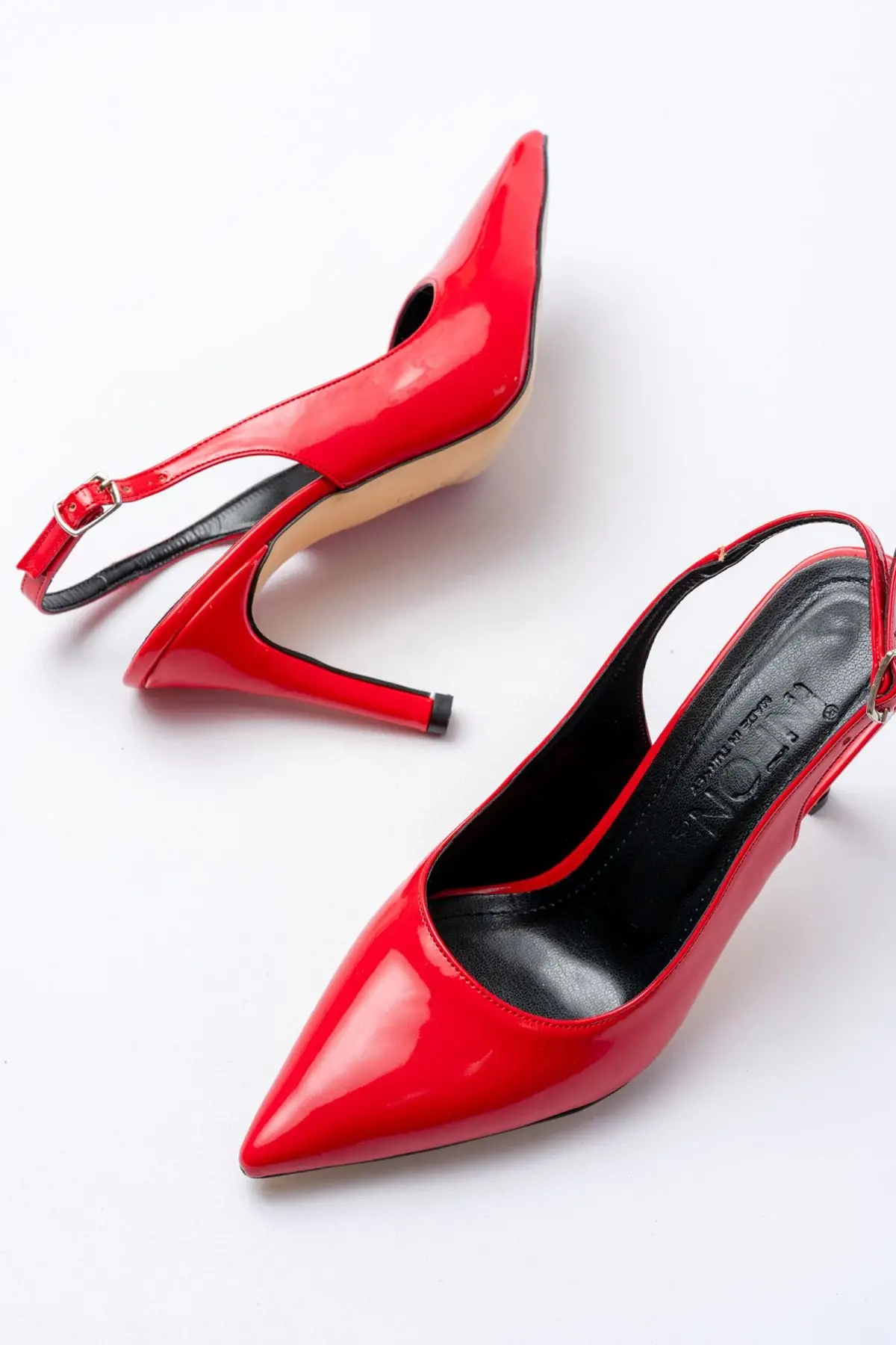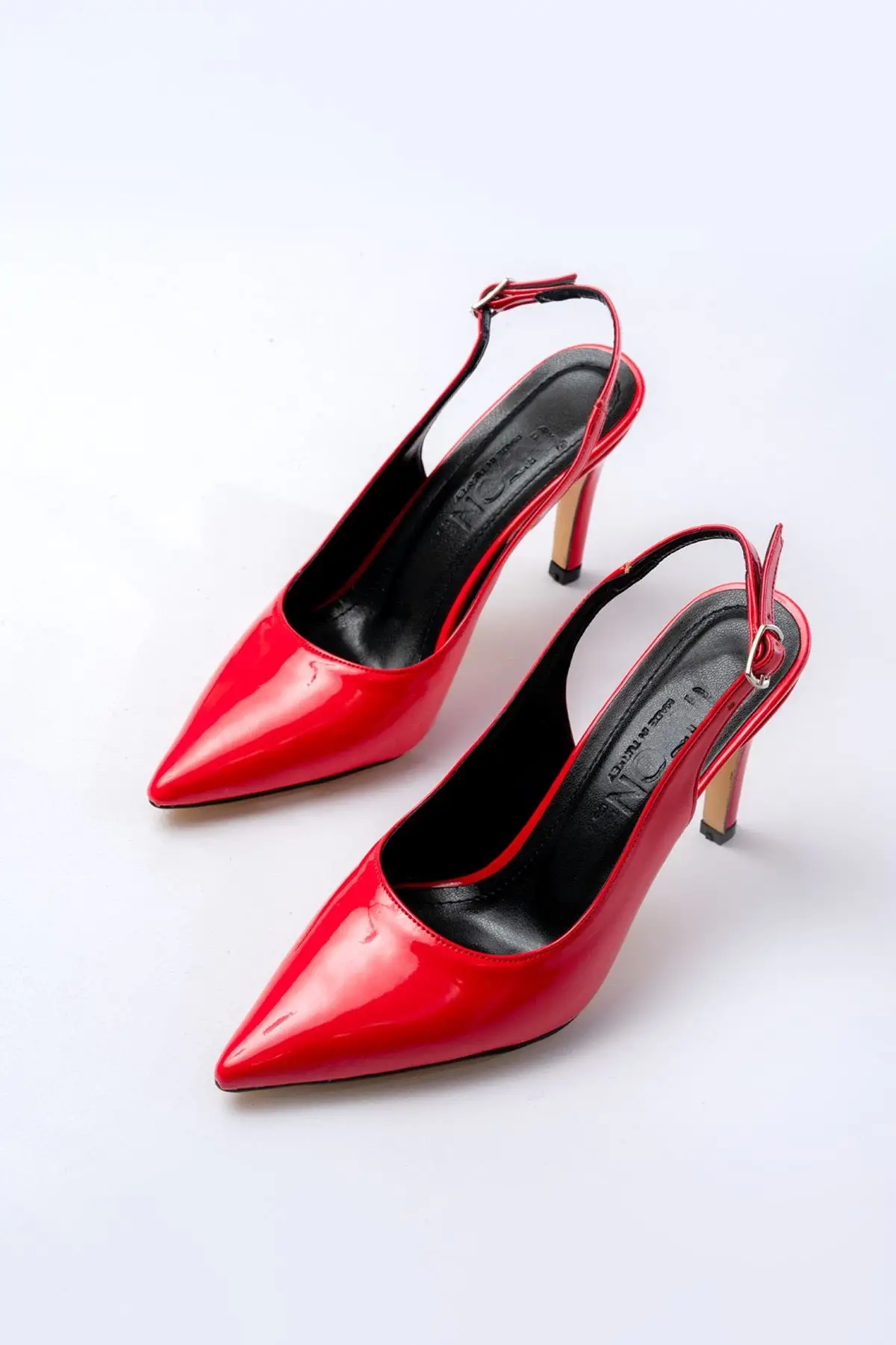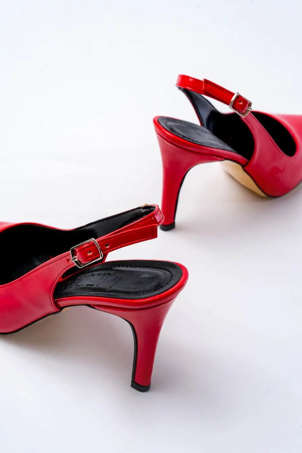 ST-1153 Kırmızı Rugan Günlük Arkası Açık 9 cm Topuklu Kadın Ayakkabı