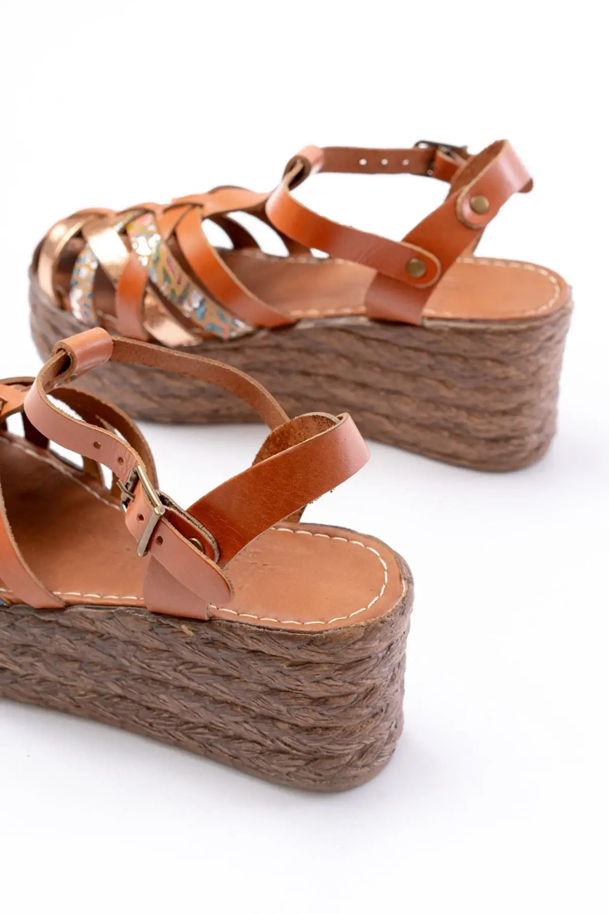 684-02 Taba Garni Ortopedik Hakiki Deri Dolgu Kadın Sandalet