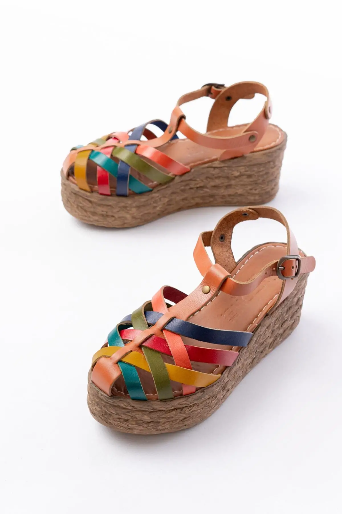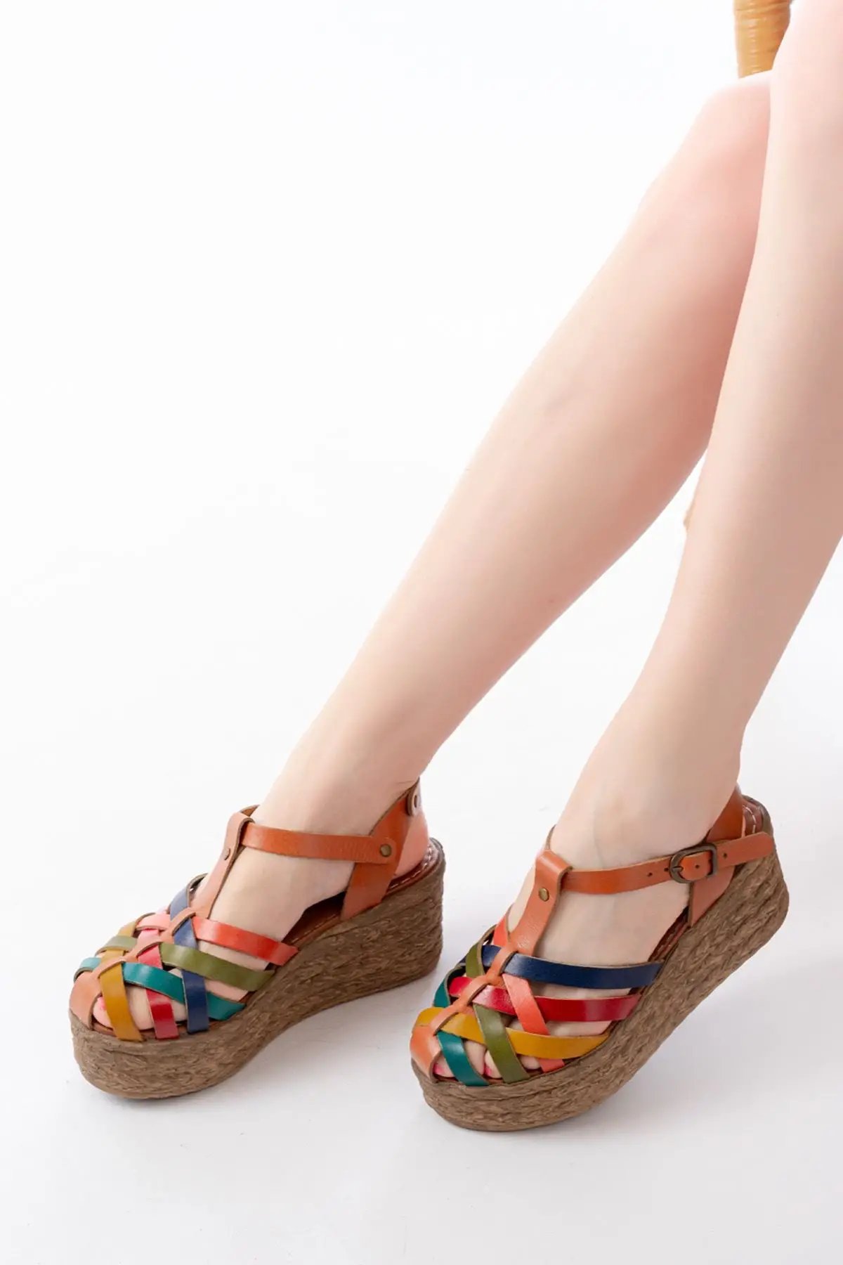 684-02 Taba Multi Ortopedik Hakiki Deri Dolgu Kadın Sandalet