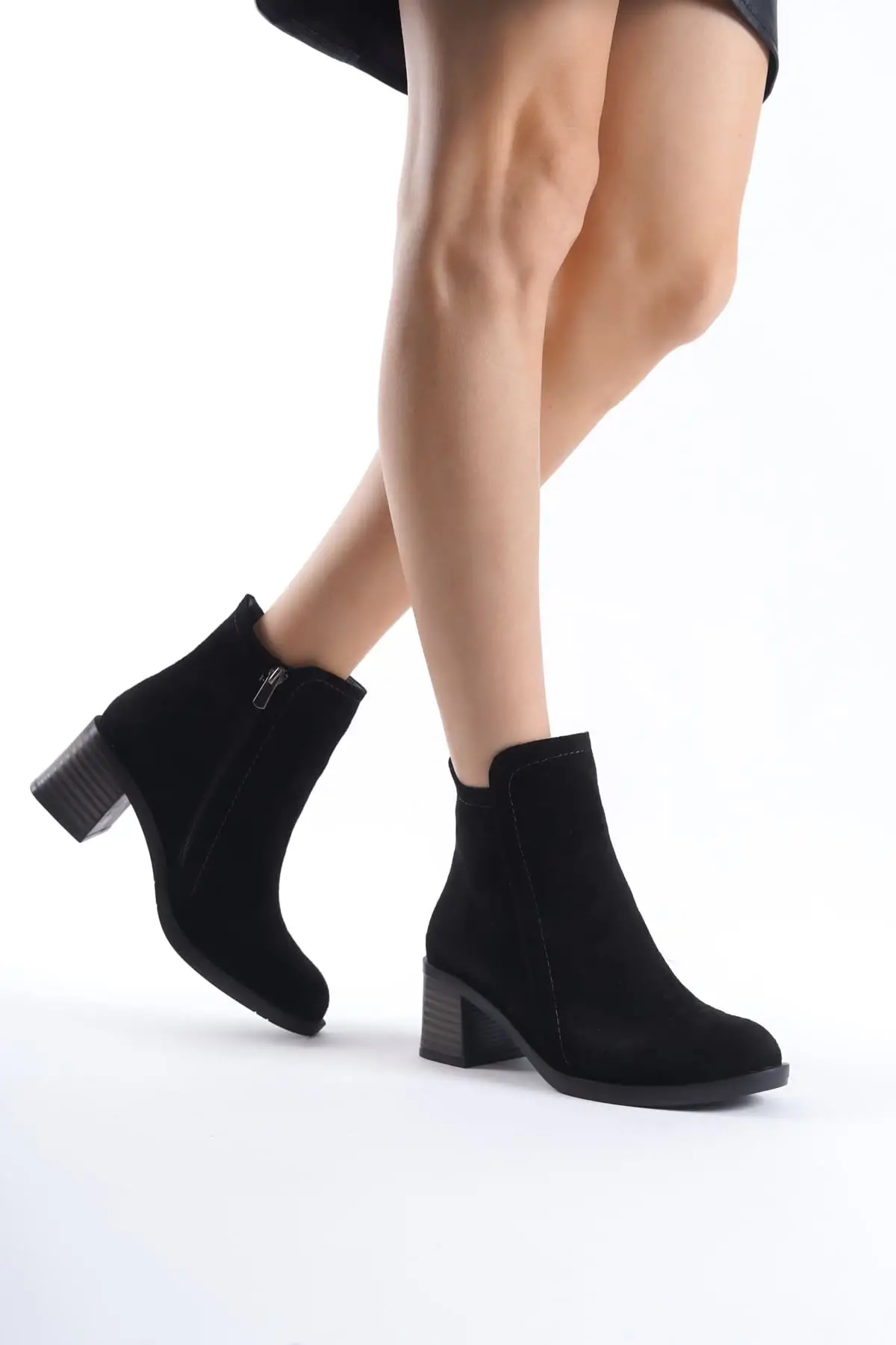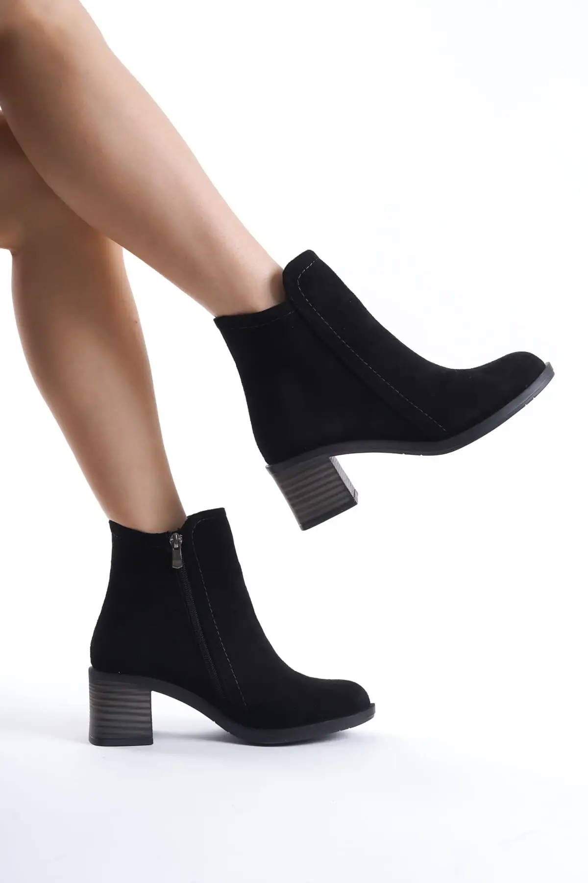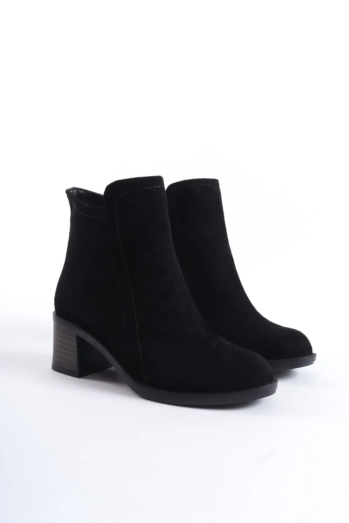 Larıssa Fermuarlı Ortopedik Taban Topuklu Süet Kadın Bot St - Siyah
